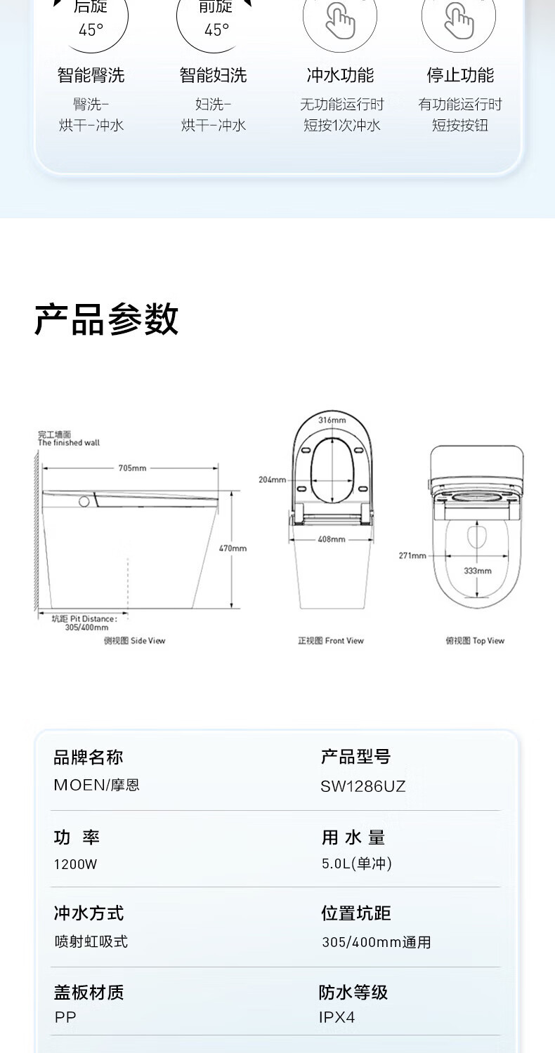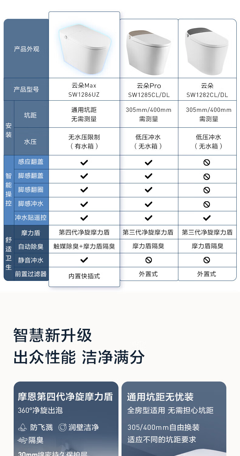 摩恩(MOEN)智慧卫浴三件套云朵Max马桶星舰智能花洒莎曼新品浴室柜 摩恩智慧卫浴三件套 通用坑距 305/300mm