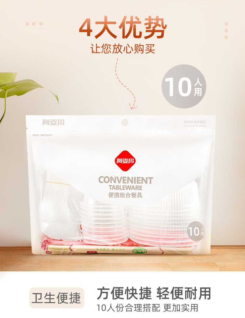 阿姿玛一次性碗筷餐具套装家用结婚酒席杯子勺碟组合餐具加厚塑料圆形碗 10人份 七件套