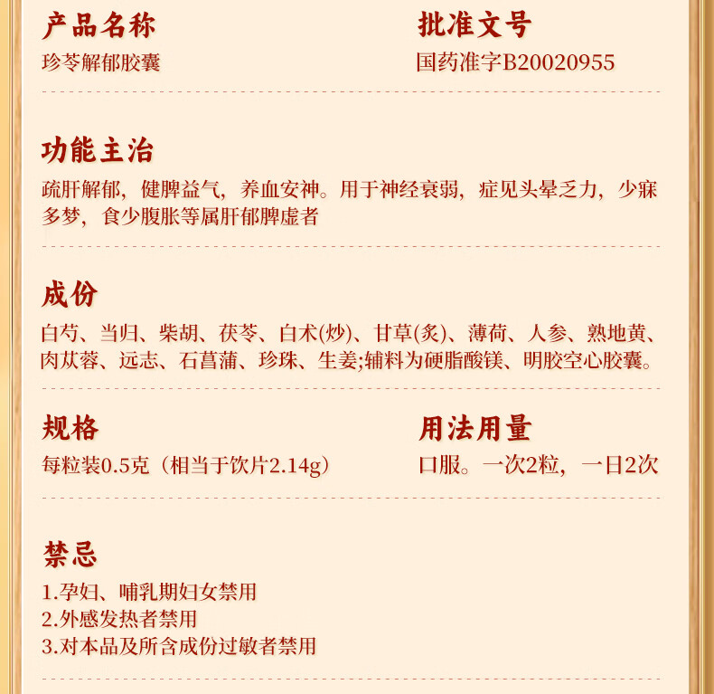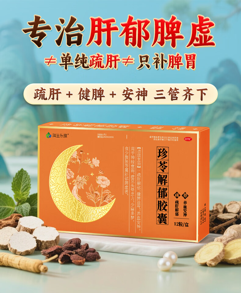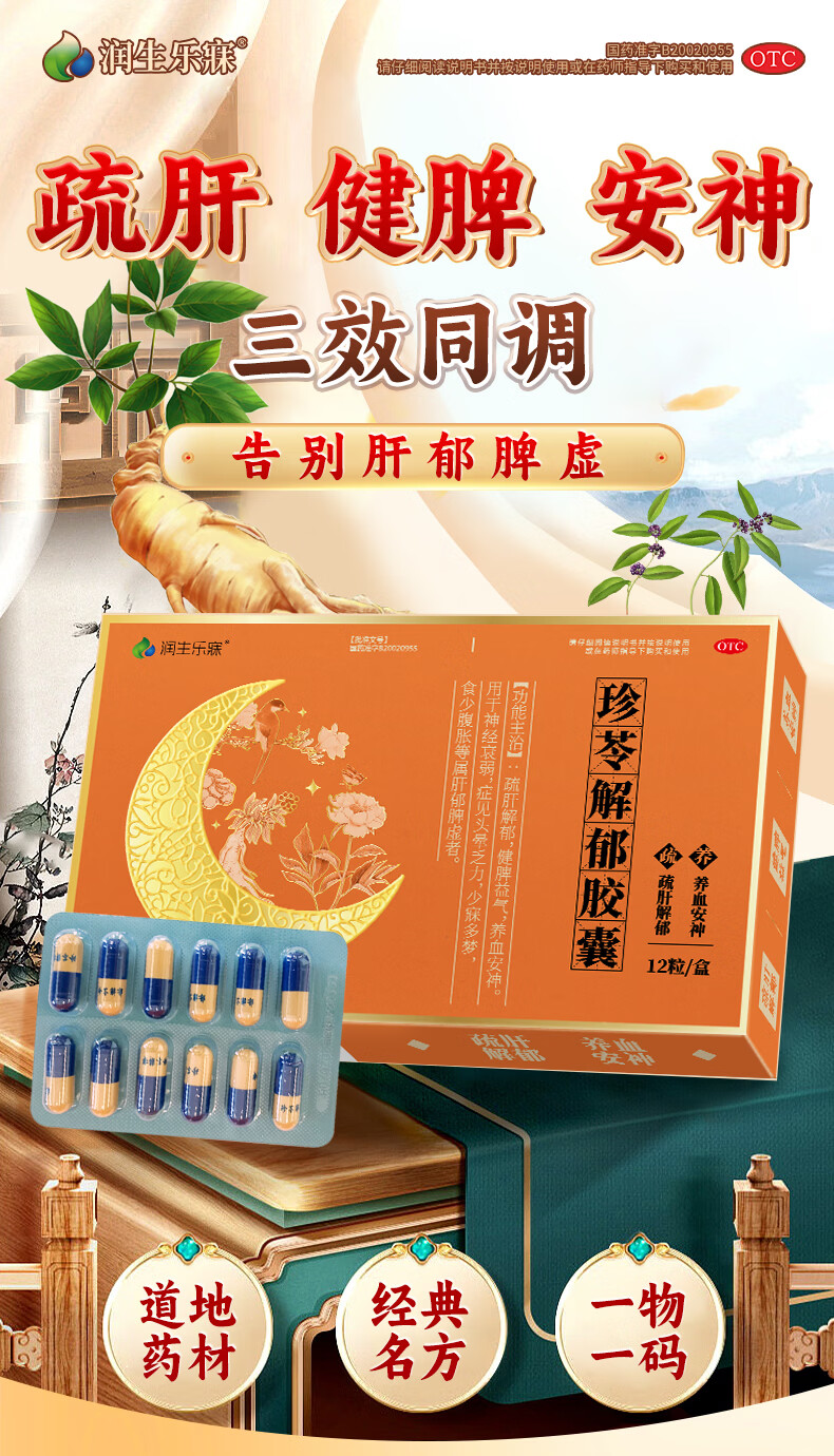 [润生乐寐]珍苓解郁胶囊 0.5g*12粒 2盒装 疏肝解郁健脾益气养血安神肝郁脾虚神经衰弱调理失眠多梦头晕乏力中成药otc 疏肝+健脾+养血安神