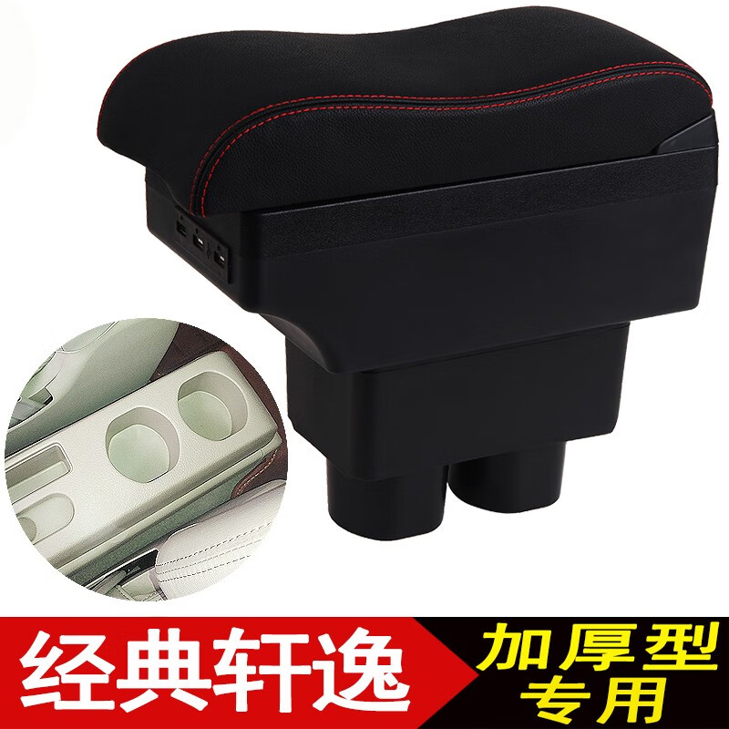 2019款日产经典轩逸扶手箱改装加长2016款2012款轩逸专用中央手扶箱原装装饰配件免打孔储物盒 大曲面宽15CM-7USB-伸缩-水杯架-黑色红线