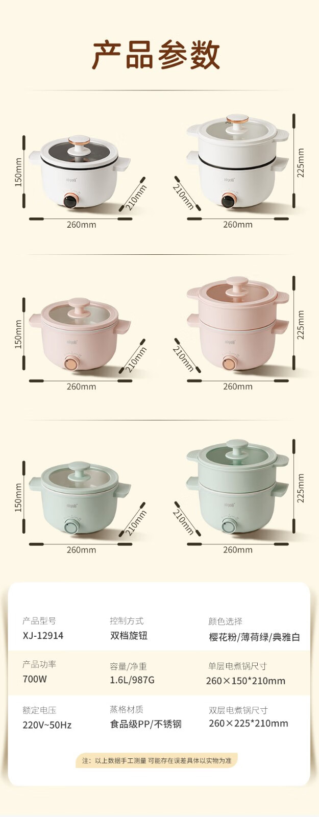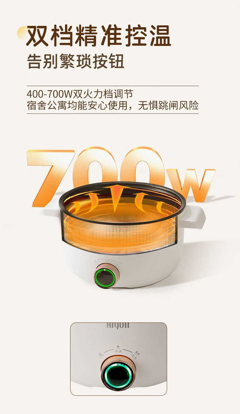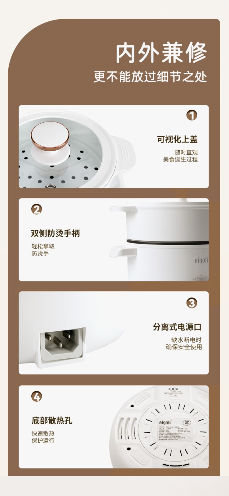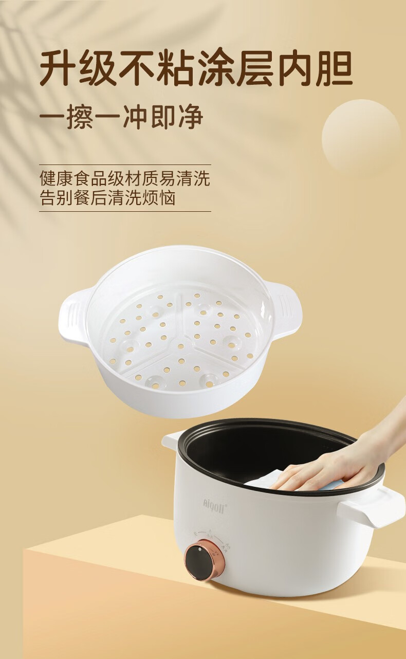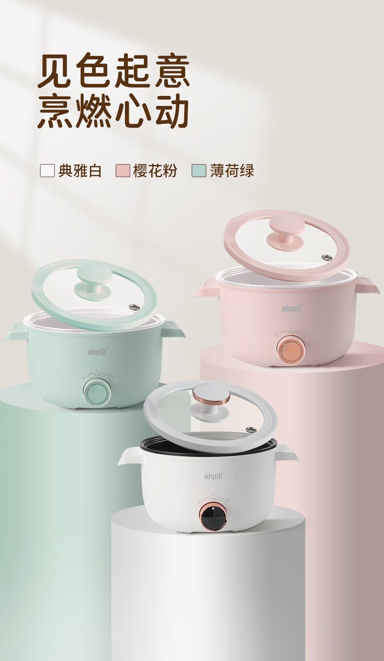 艾格丽(Aigoli)电煮锅宿舍学生宿舍便携多功能一体锅小电锅家用迷你双层蒸煮锅泡面锅火锅 双层薄荷绿-1.6L煮锅+1.8L蒸格