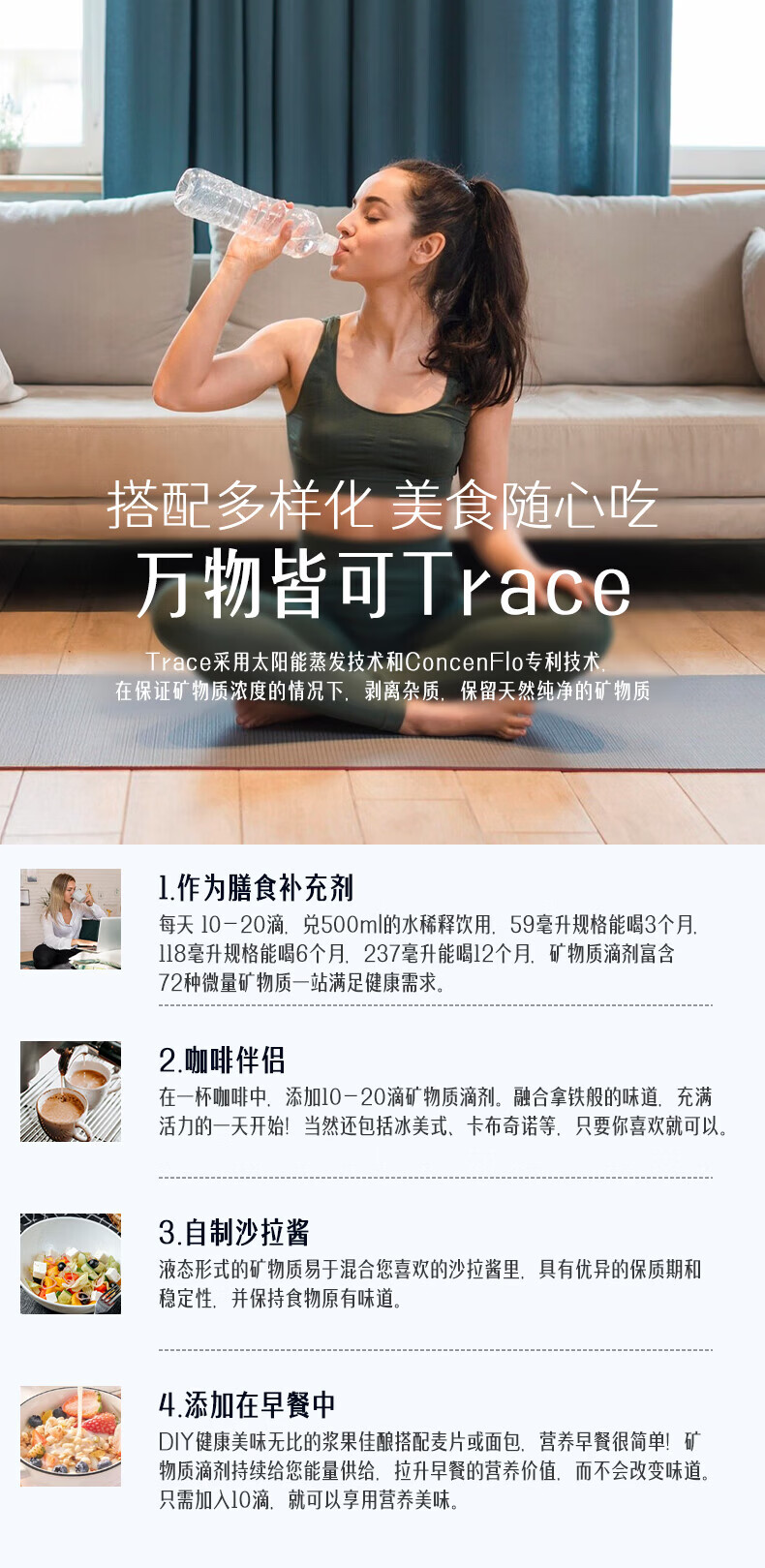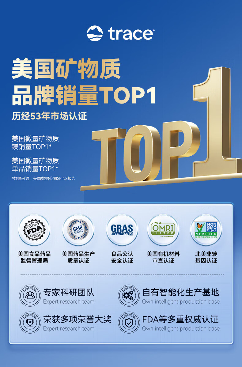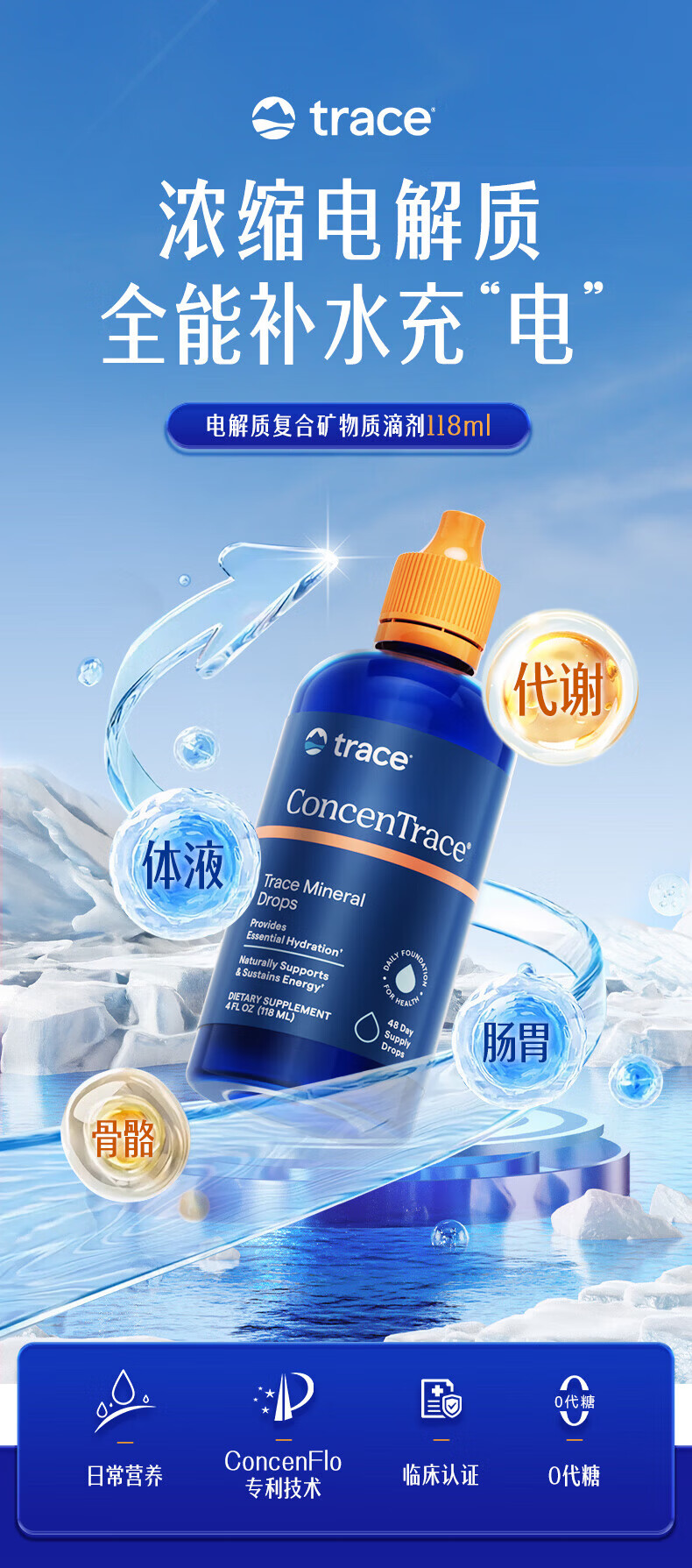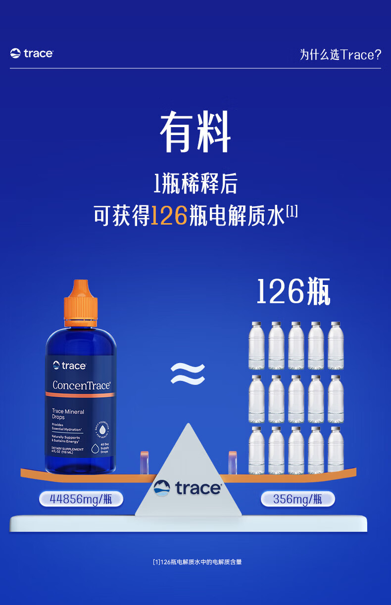 Trace电解质矿物质滴剂118ml成人镁钾钠运动补充剂0糖美国原装进口 【矿物质补充】 118ml*1瓶