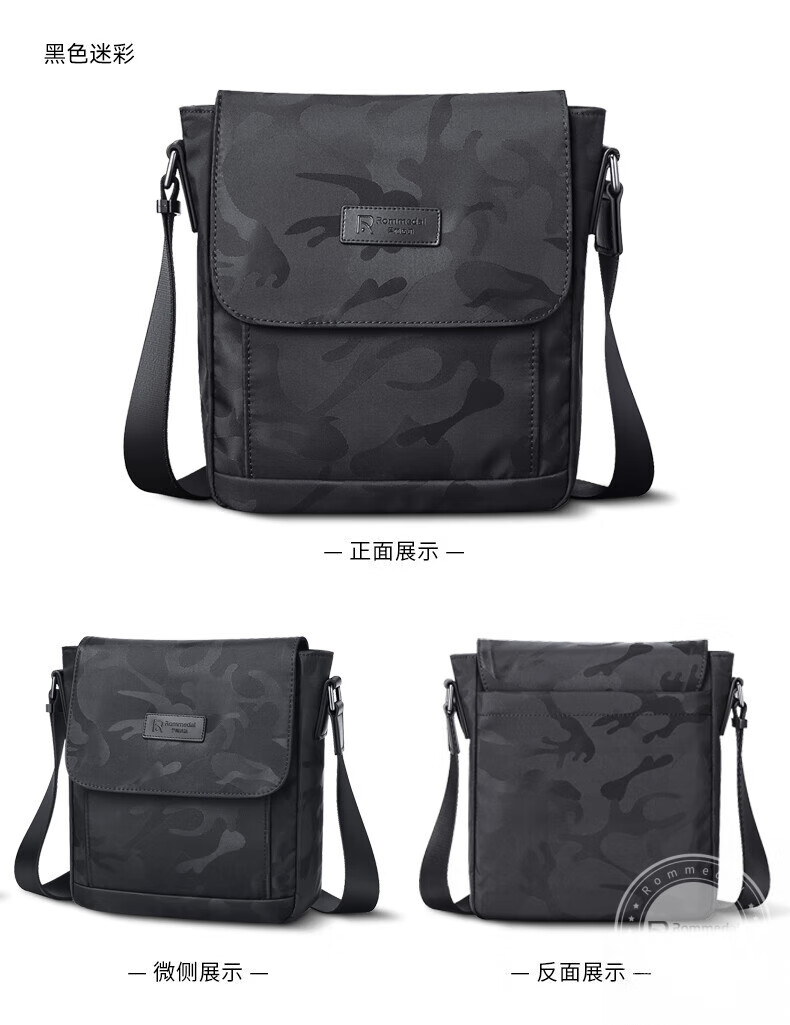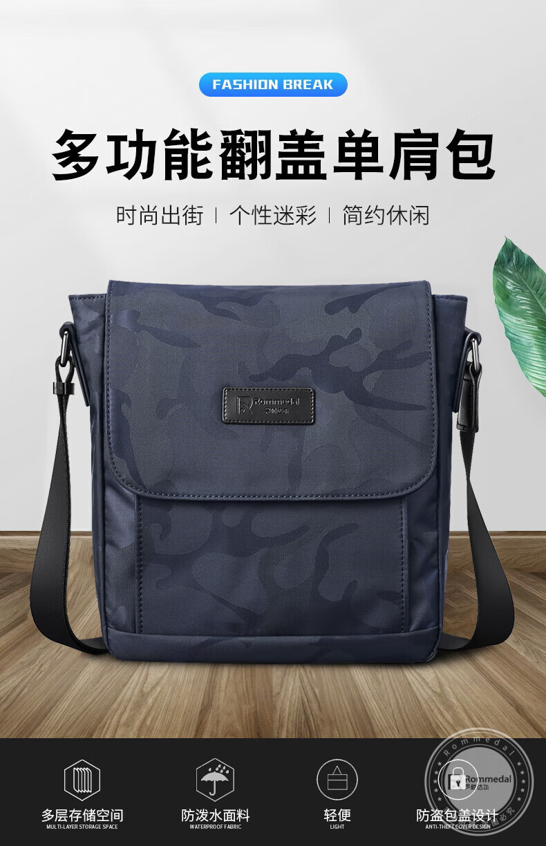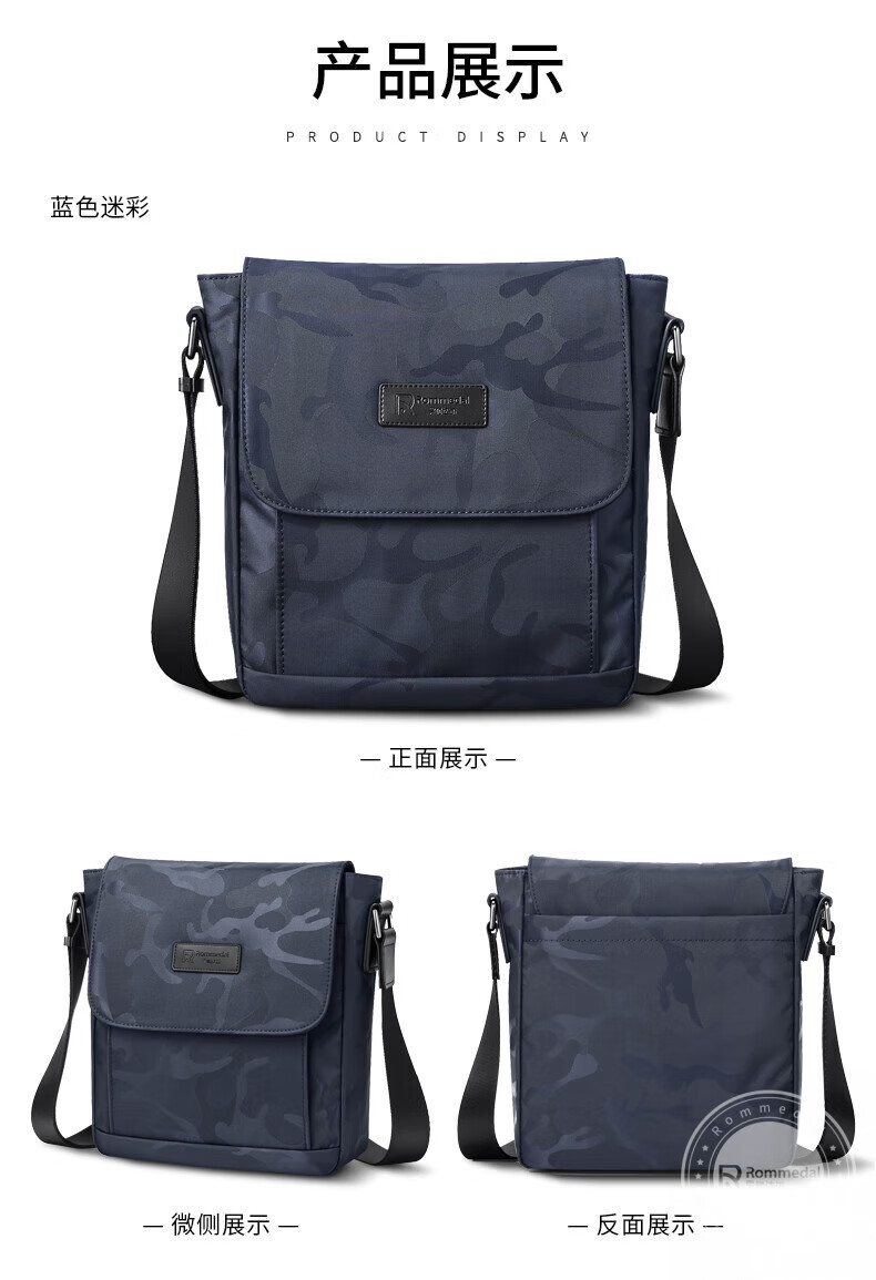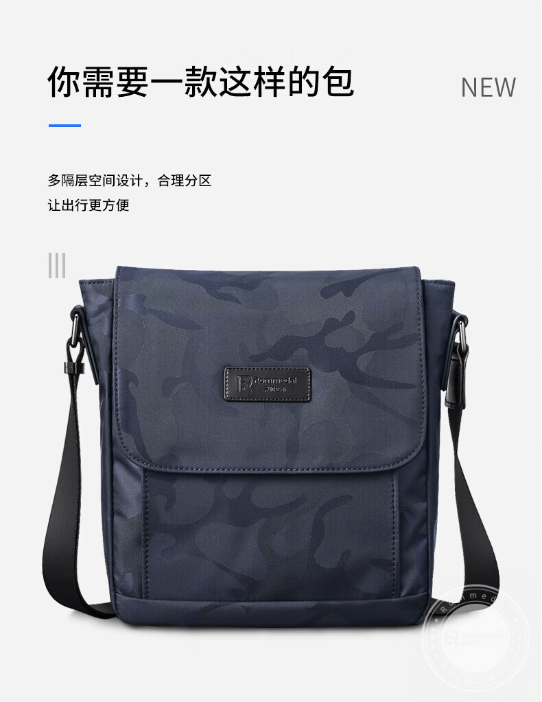 罗梅达尔(Rommedal) 新款轻便单肩包男士尼龙包斜跨背包休闲包邮差包通勤斜挎包男 蓝色迷彩 25*23*9