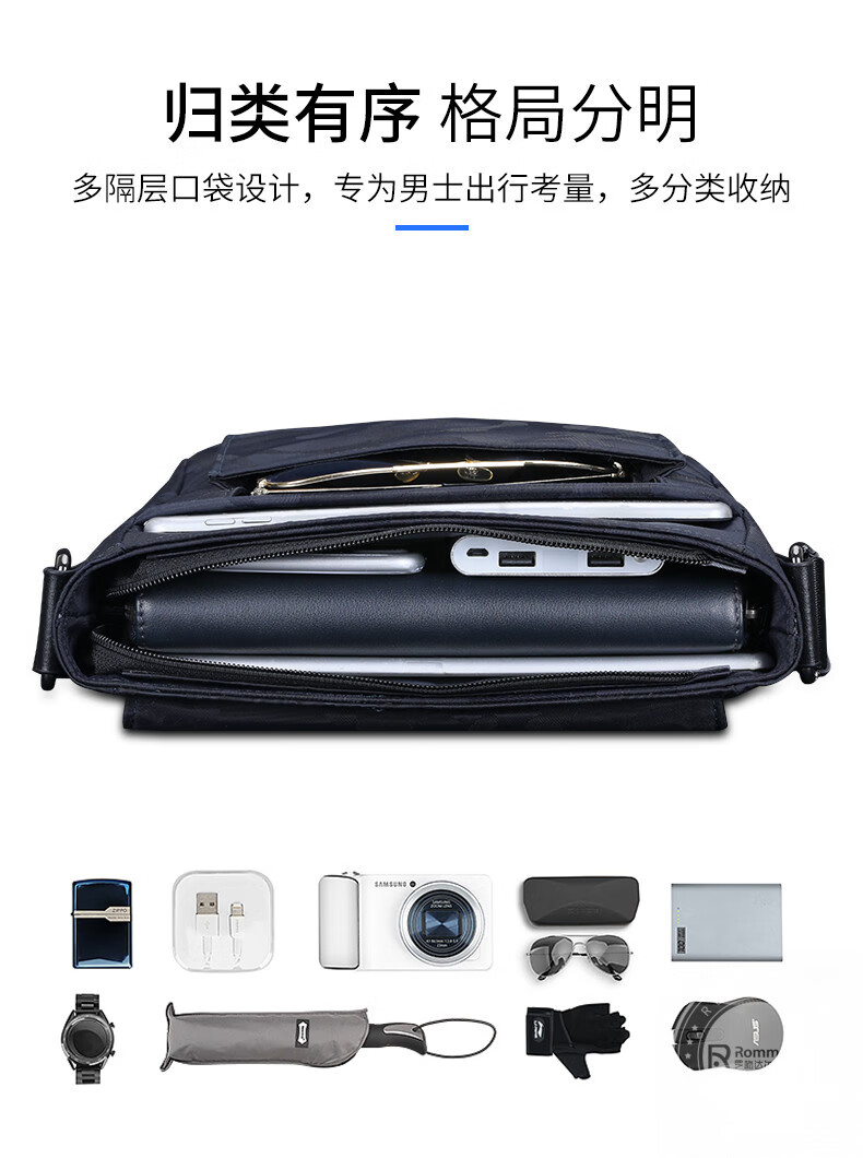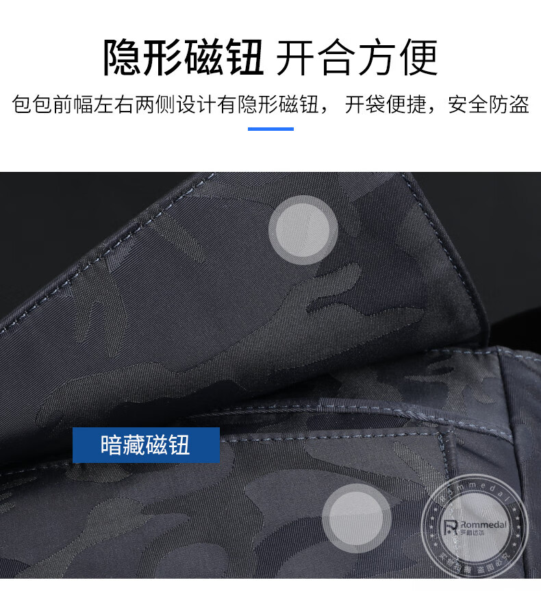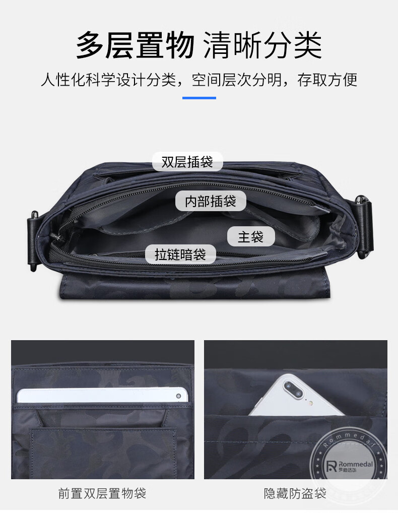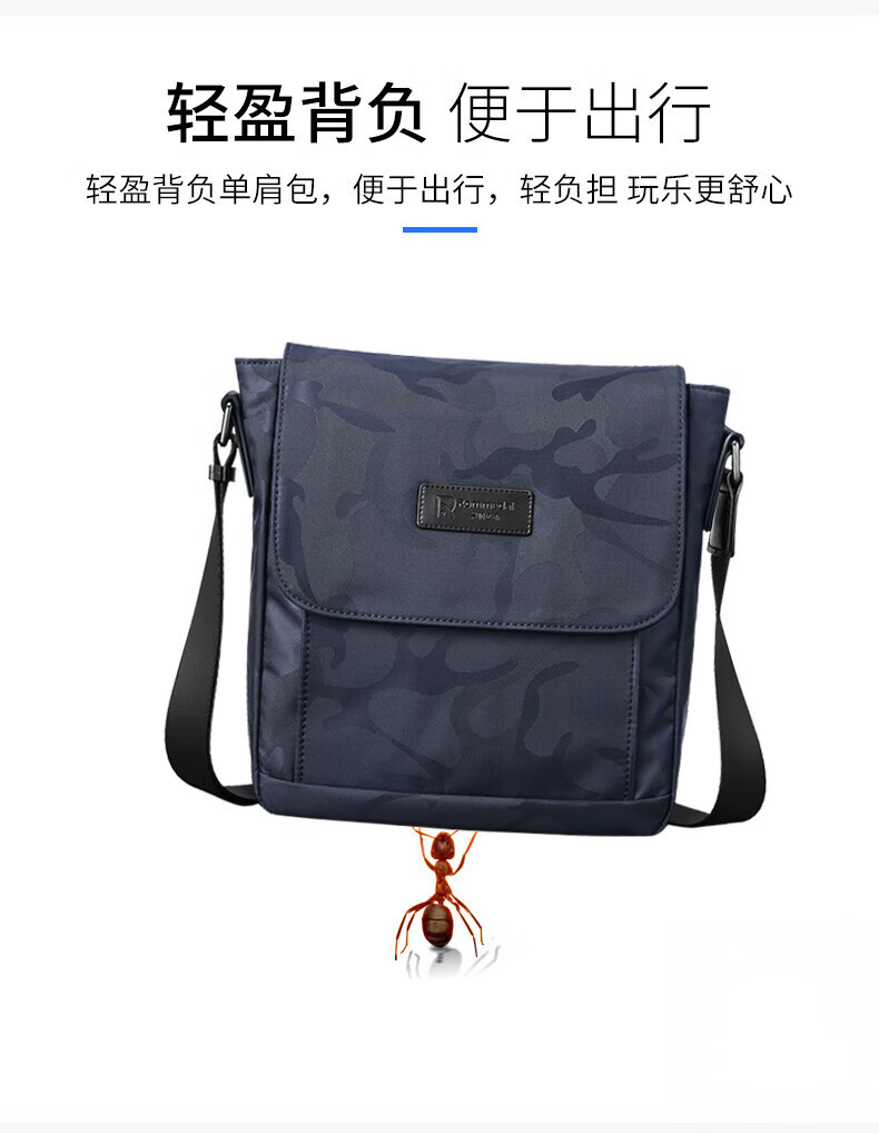 罗梅达尔(Rommedal) 新款轻便单肩包男士尼龙包斜跨背包休闲包邮差包通勤斜挎包男 蓝色迷彩 25*23*9