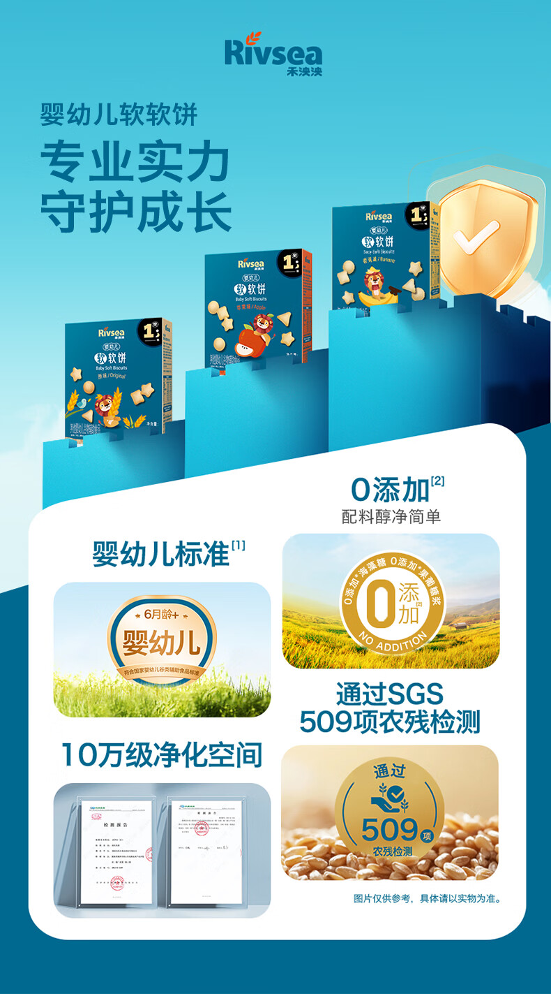 禾泱泱婴幼儿软软饼原味45g宝宝零食软饼干磨牙饼干含钙铁锌6月+