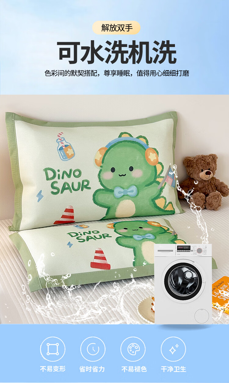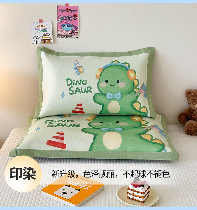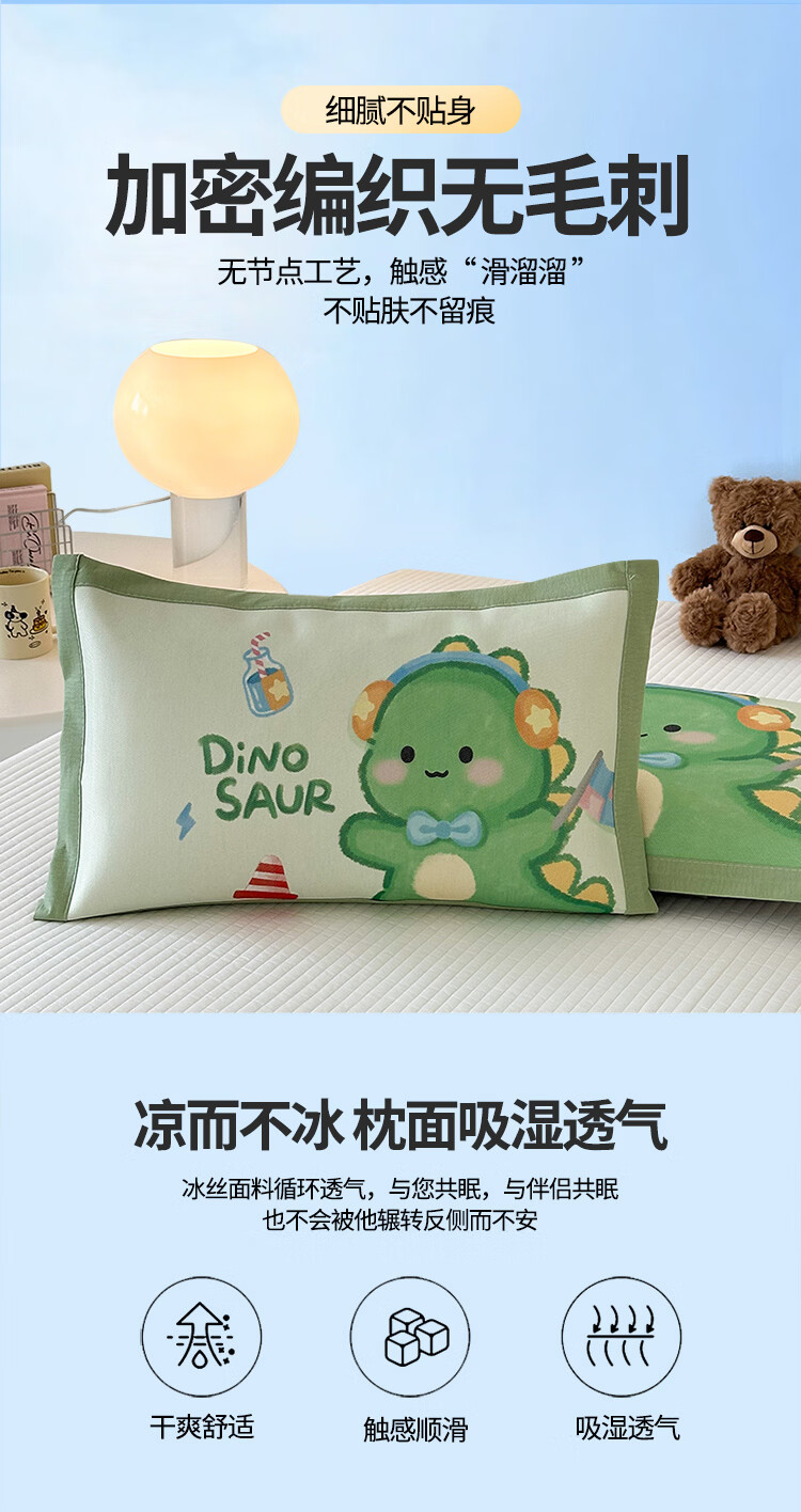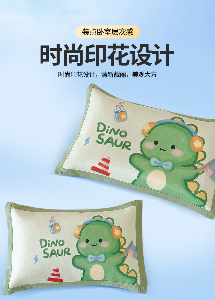 ROLAND LIVE儿童幼儿园枕头套可爱卡通印花宝宝冰丝枕套夏季午睡枕套可水洗 HSH儿童冰丝枕套-恐龙宝宝 单枕套30*50cm【一只装】