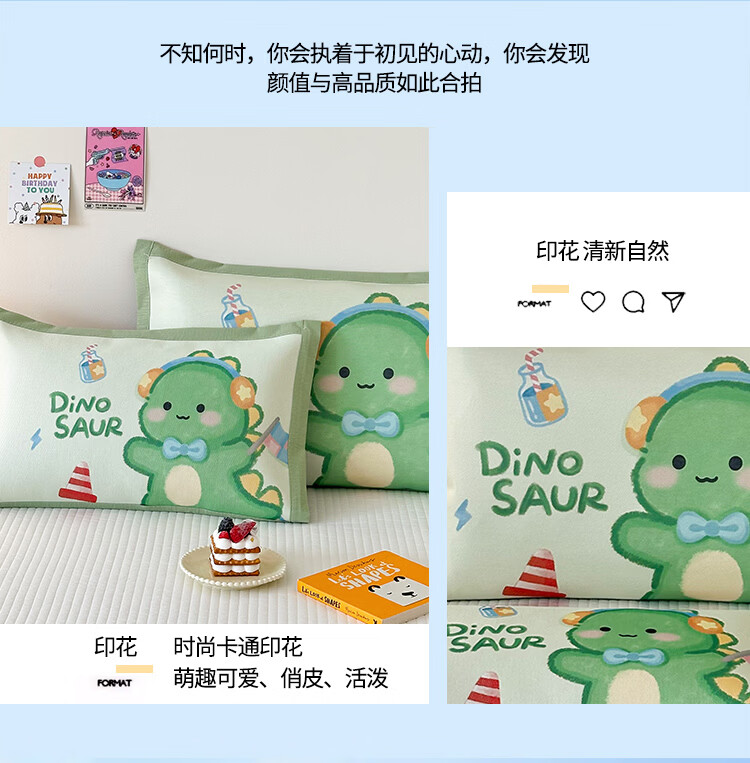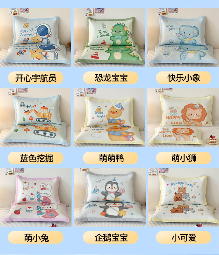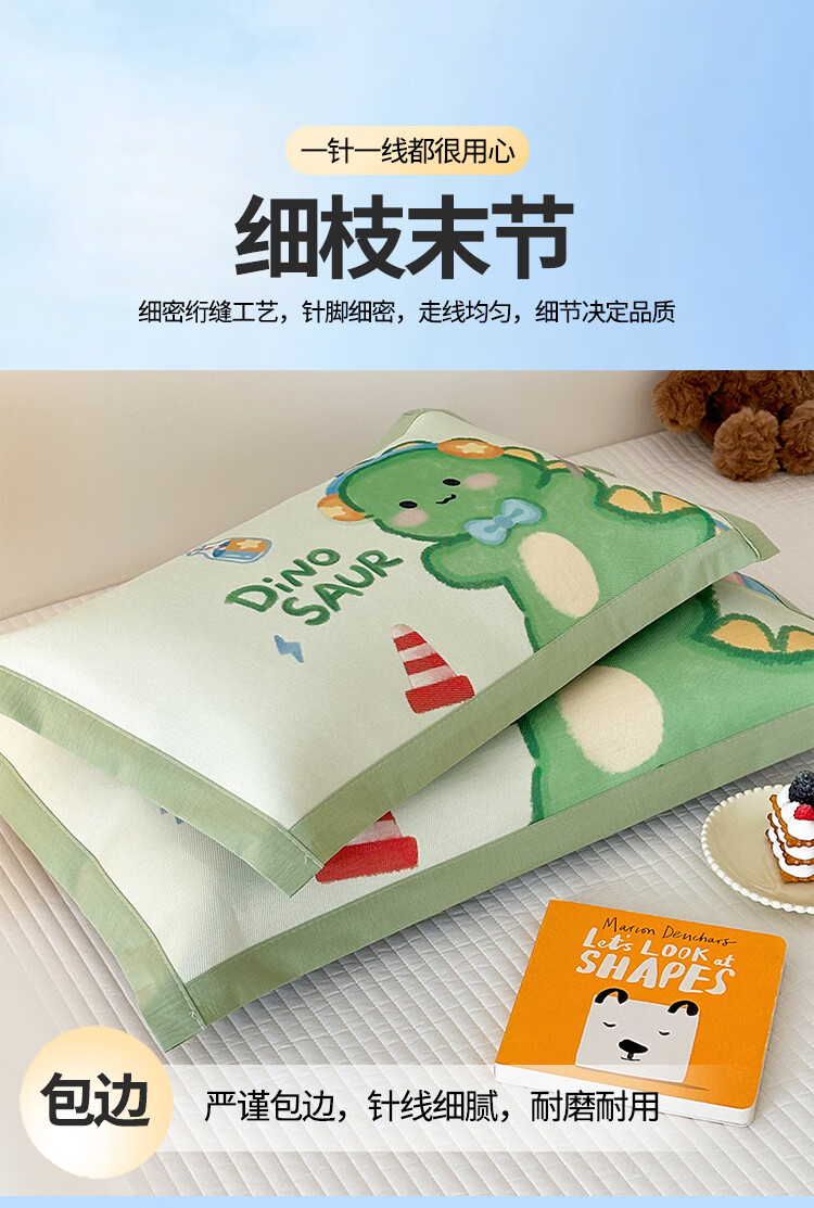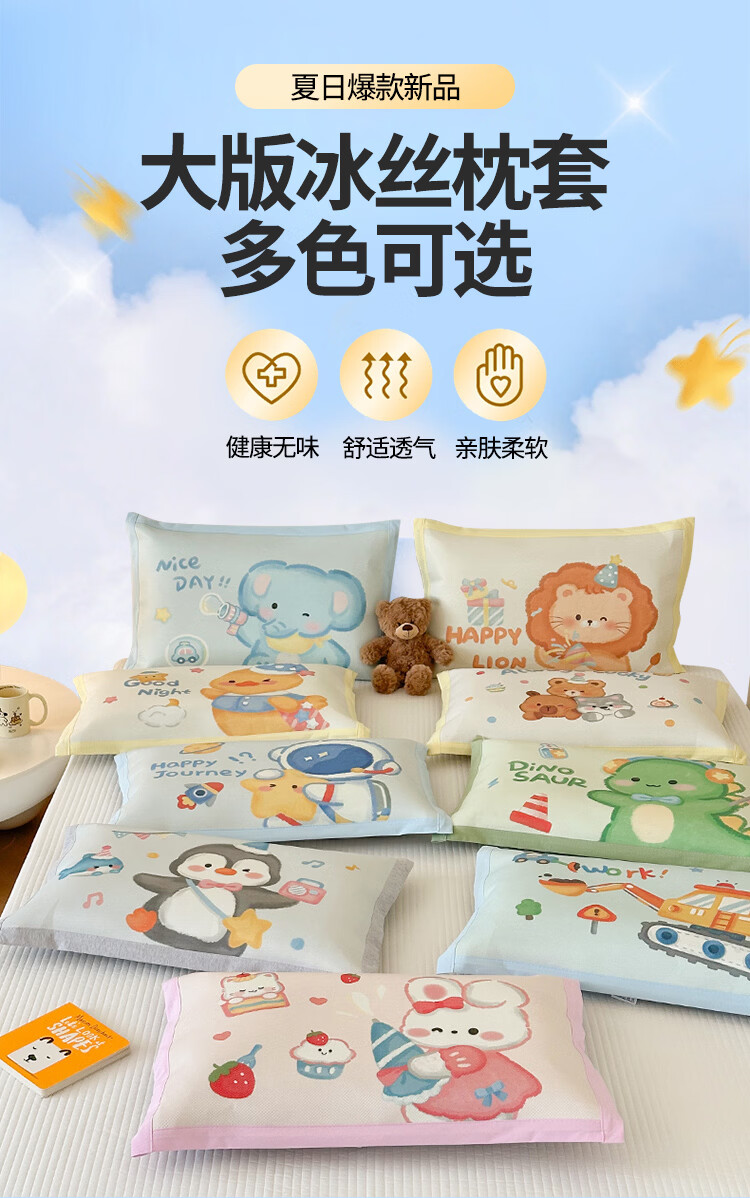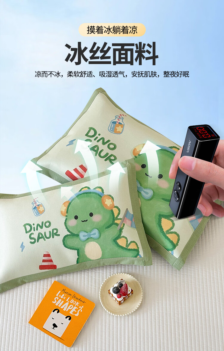 ROLAND LIVE儿童幼儿园枕头套可爱卡通印花宝宝冰丝枕套夏季午睡枕套可水洗 HSH儿童冰丝枕套-恐龙宝宝 单枕套30*50cm【一只装】