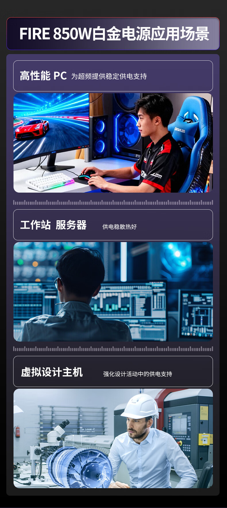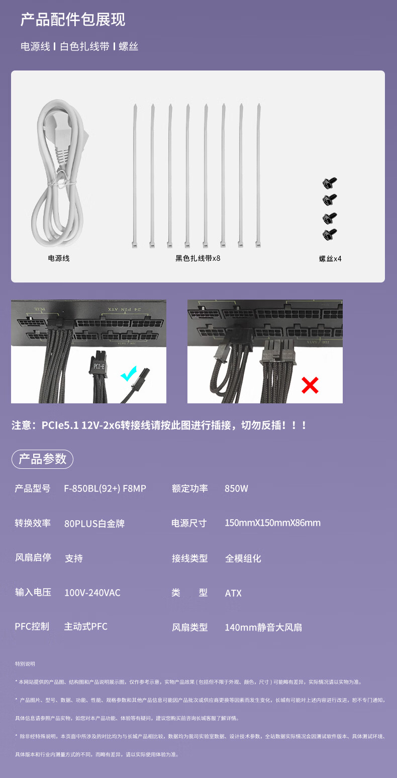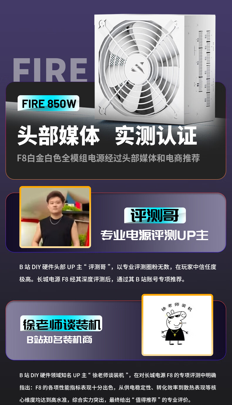 长城(Great Wall)额定850W F8白金牌全模组电脑电源(ATX3.1标准/原生PCIe5.1/自动启停/全电压/闪电加速)