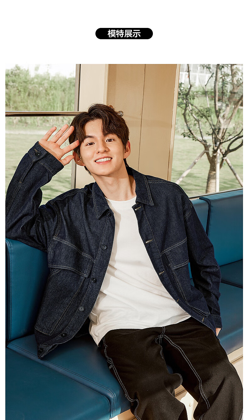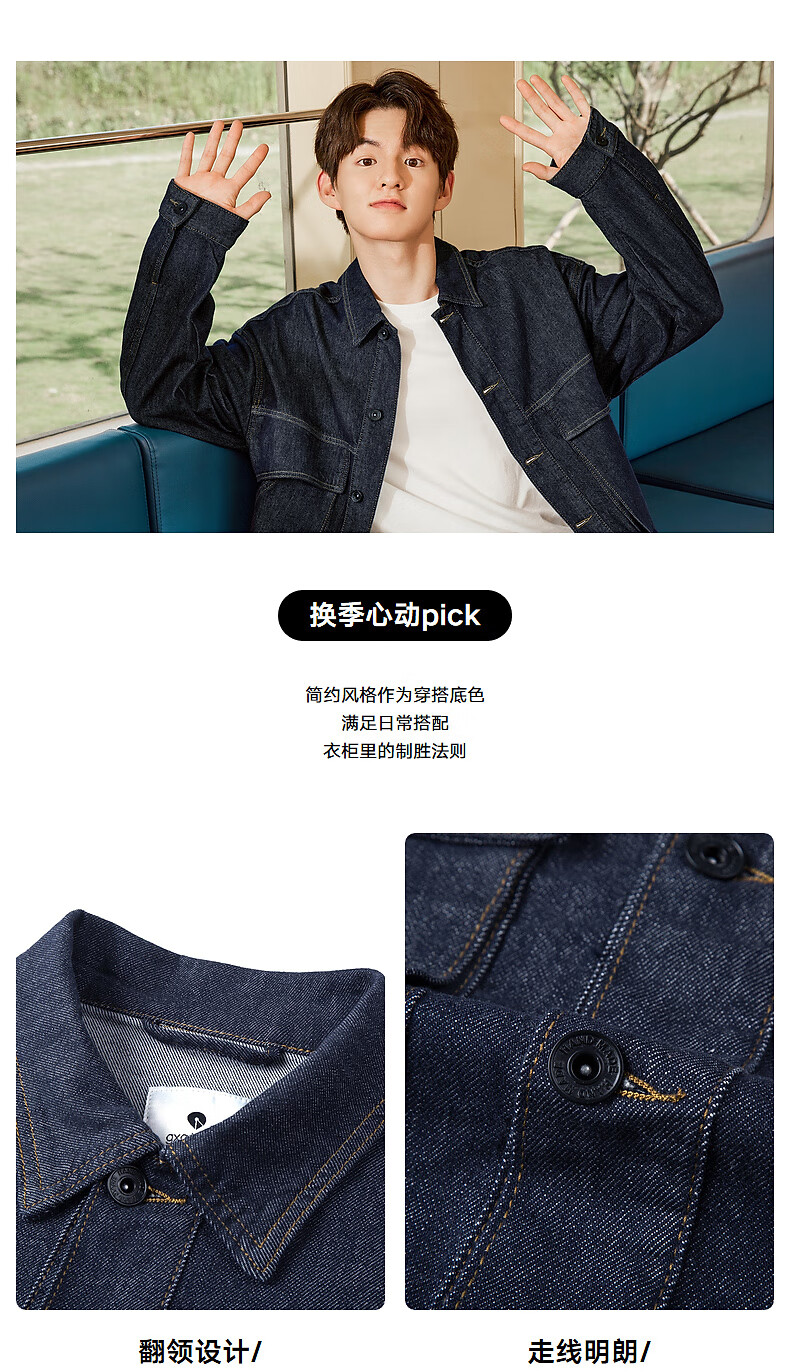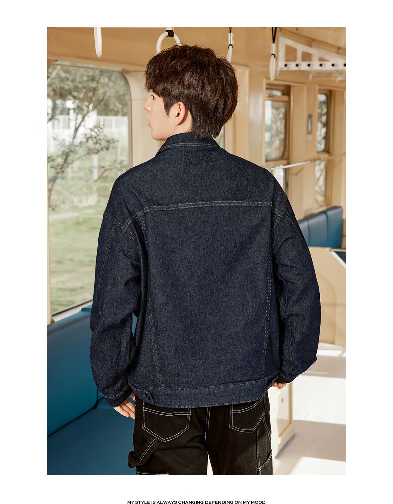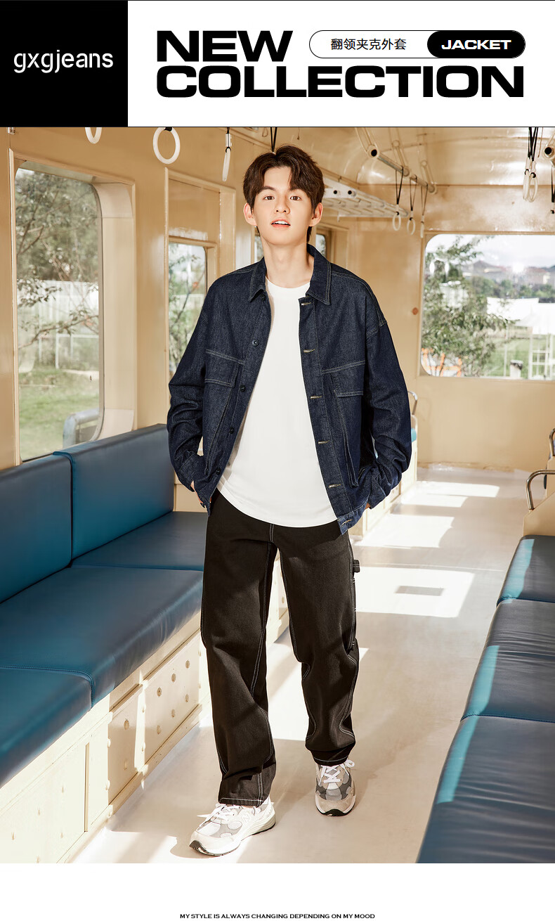 gxgjeans男装秋季新款牛仔夹克潮流翻领宽松休闲帅气外套 深蓝色 L (175)