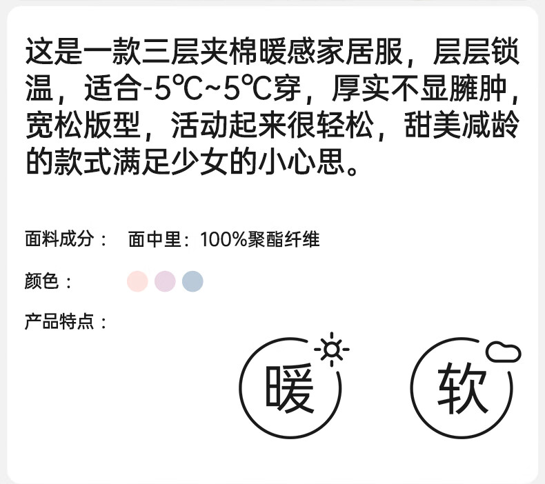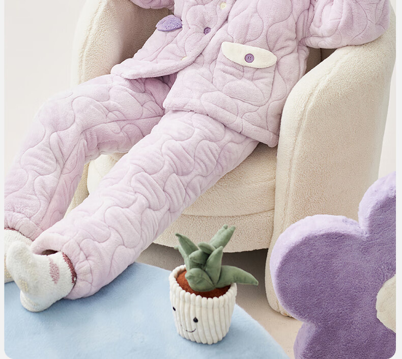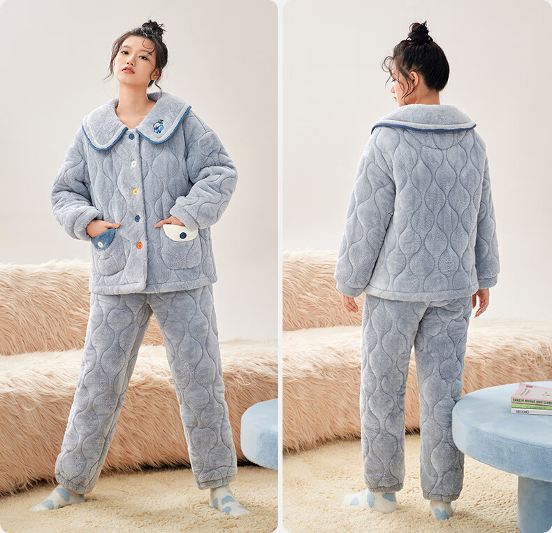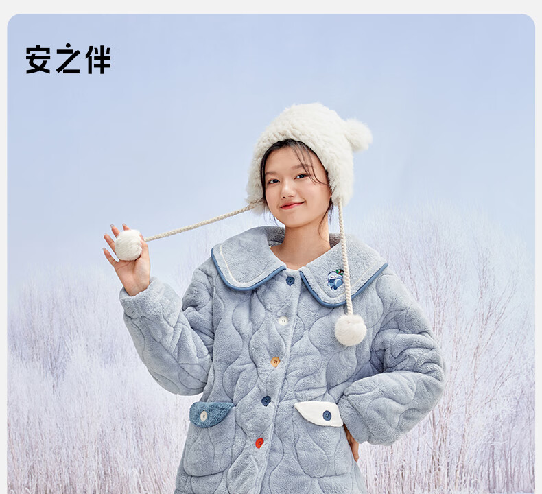 安之伴【安式热衣】睡衣女冬季三层加厚夹棉少女感暖感女士家居服可外穿
