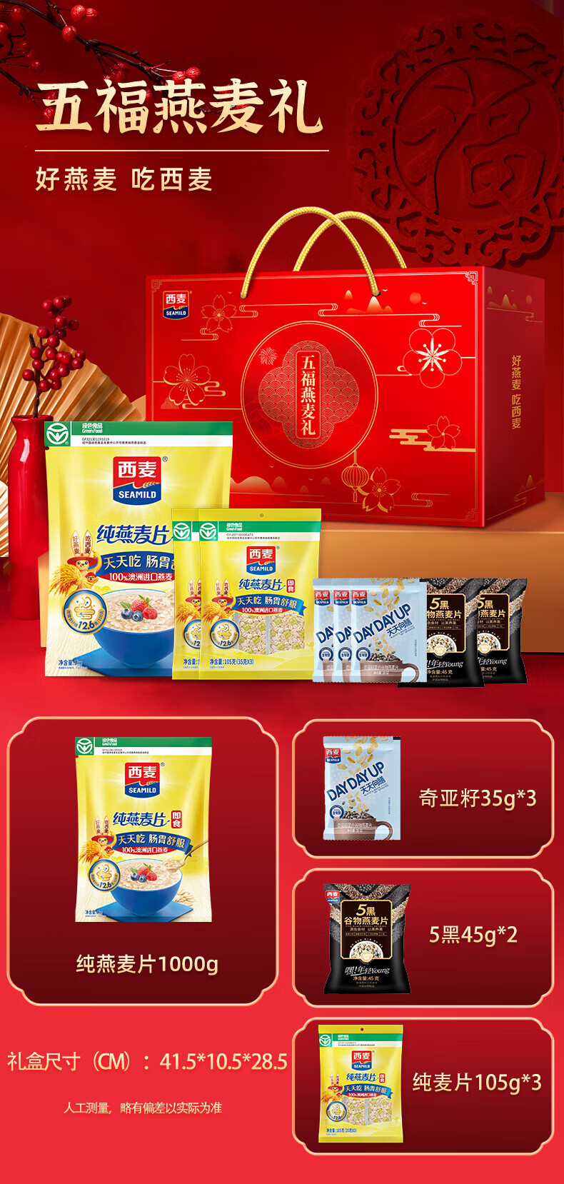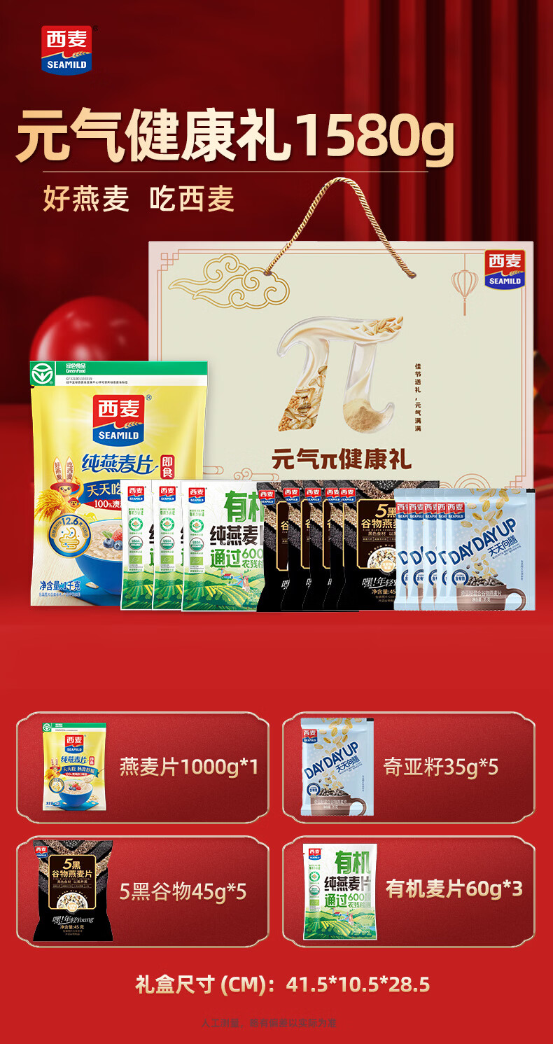西麦元气健康年货礼盒1710g含有机燕麦营养早餐谷物代餐送长辈团购 【元气+五福】共3090g
