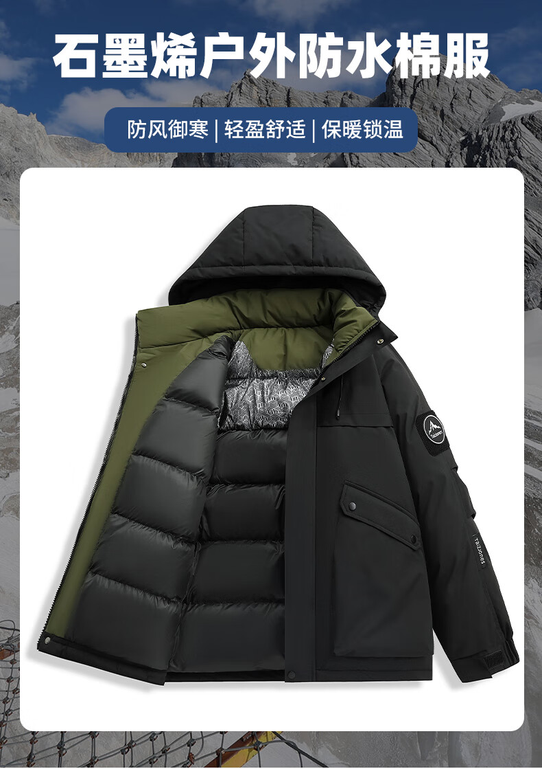 皮尔卡丹(pierre cardin)2025冬季加厚保暖棉衣男士休闲百搭防寒外套棉服袄子棉袄冬 黑色 XL