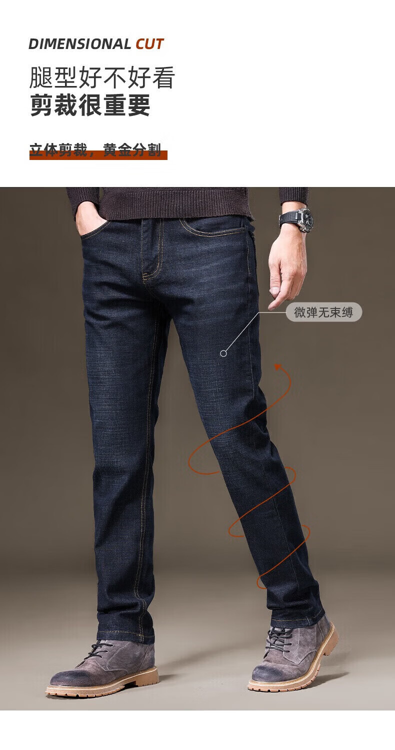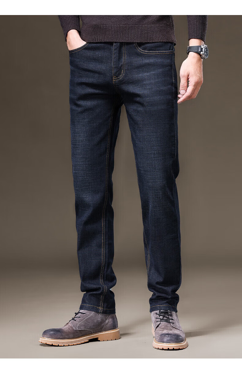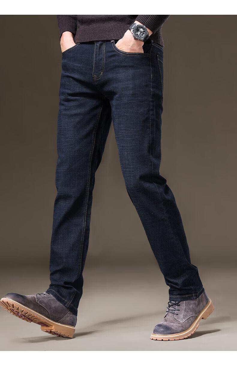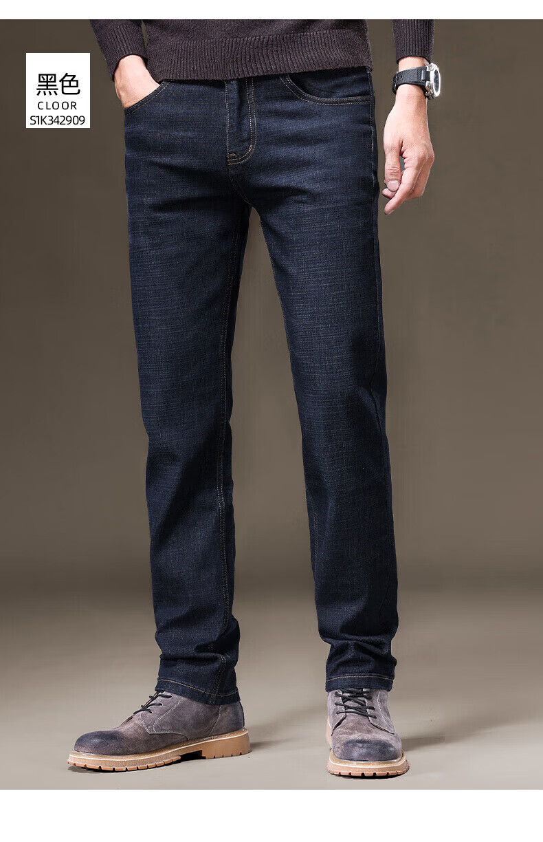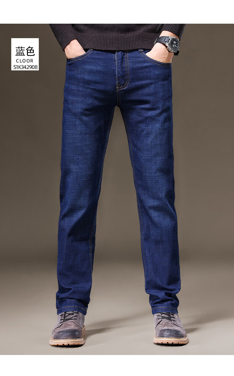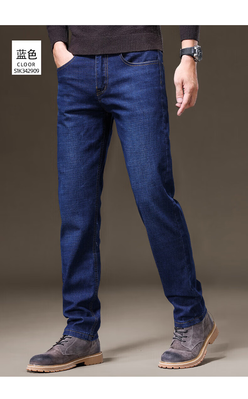 罗蒙(ROMON)牛仔裤男秋冬新款商务休闲宽松直筒男裤工装弹力长裤子男 S1K34208H蓝色 29 (2尺2)