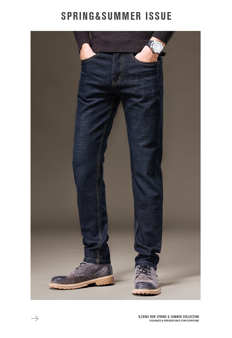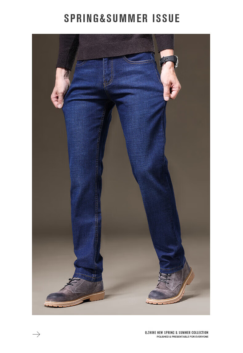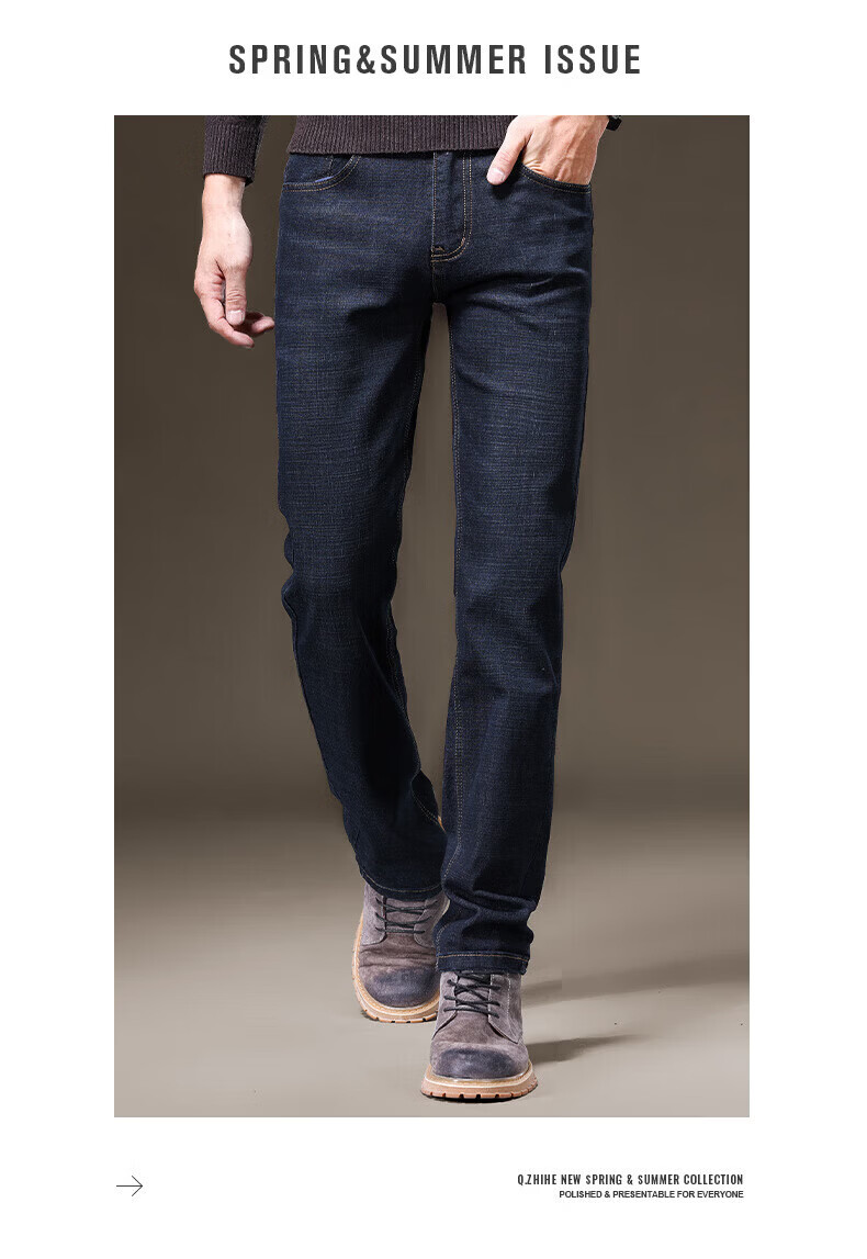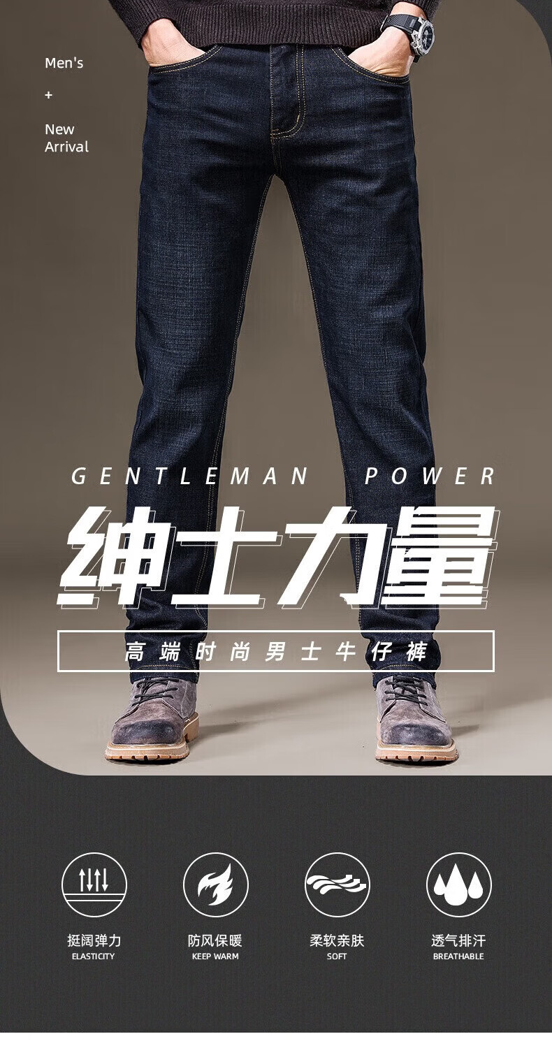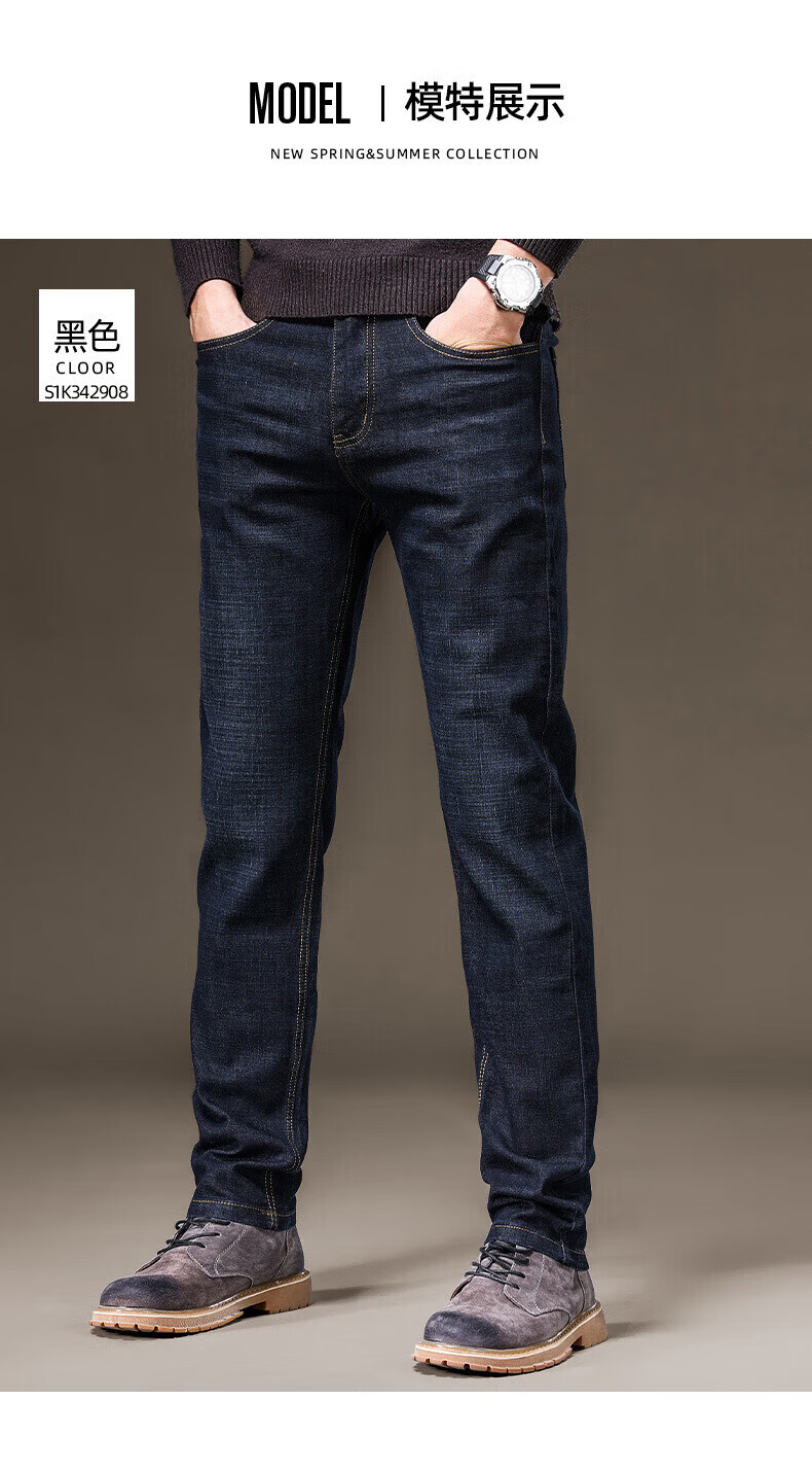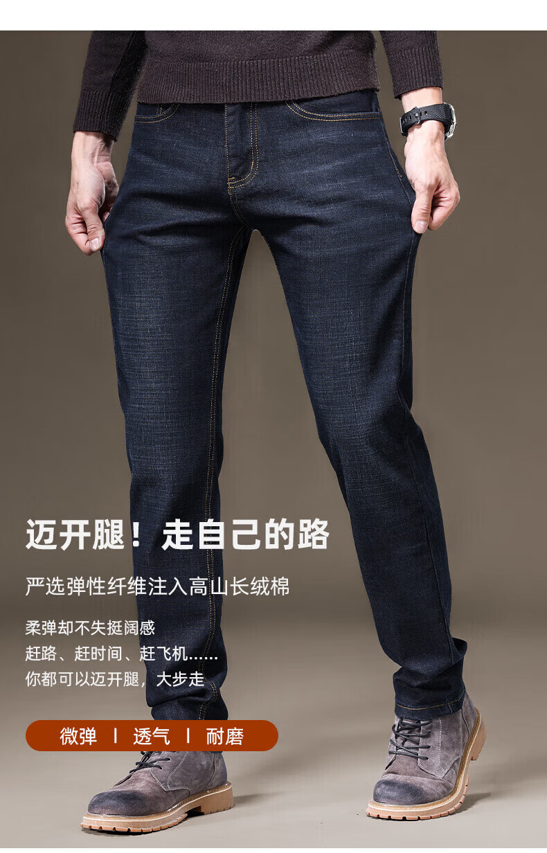 罗蒙(ROMON)牛仔裤男秋冬新款商务休闲宽松直筒男裤工装弹力长裤子男 S1K34208H蓝色 29 (2尺2)