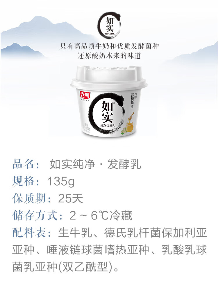 光明低温酸奶 如实纯净发酵乳(内赠洋槐蜂蜜)135g*9 0蔗糖零添加