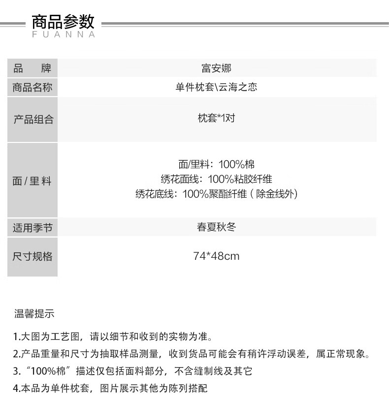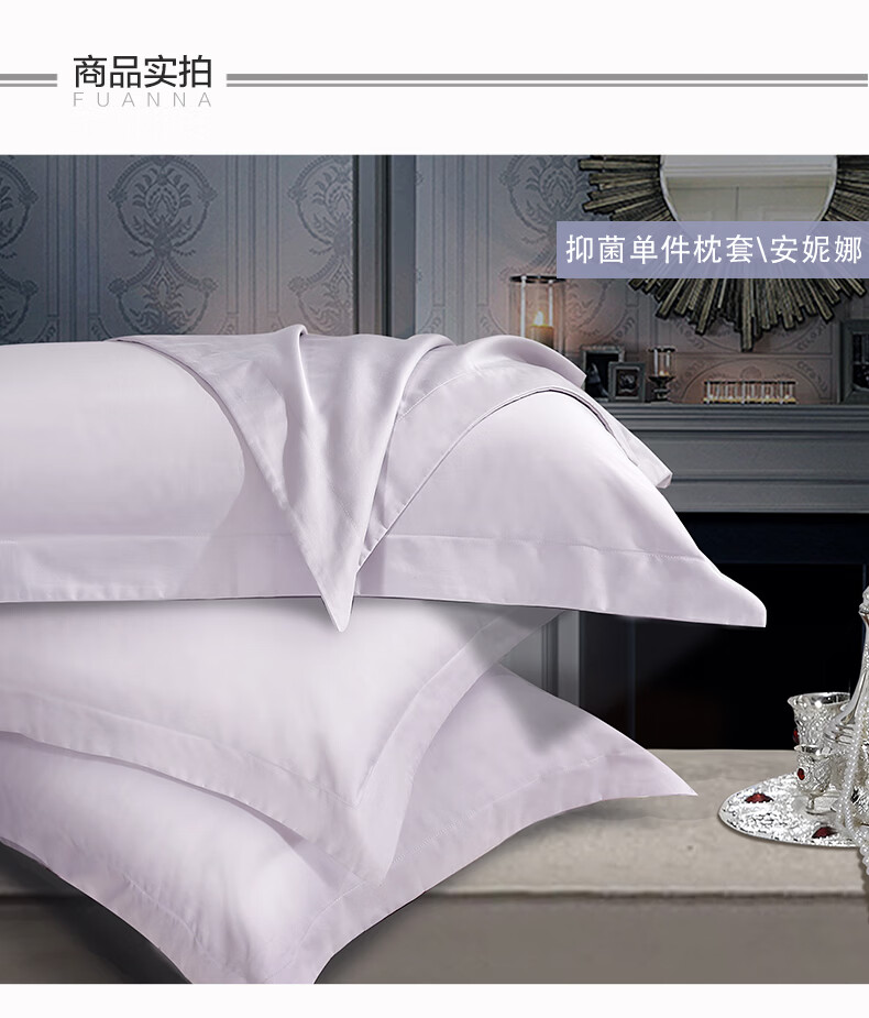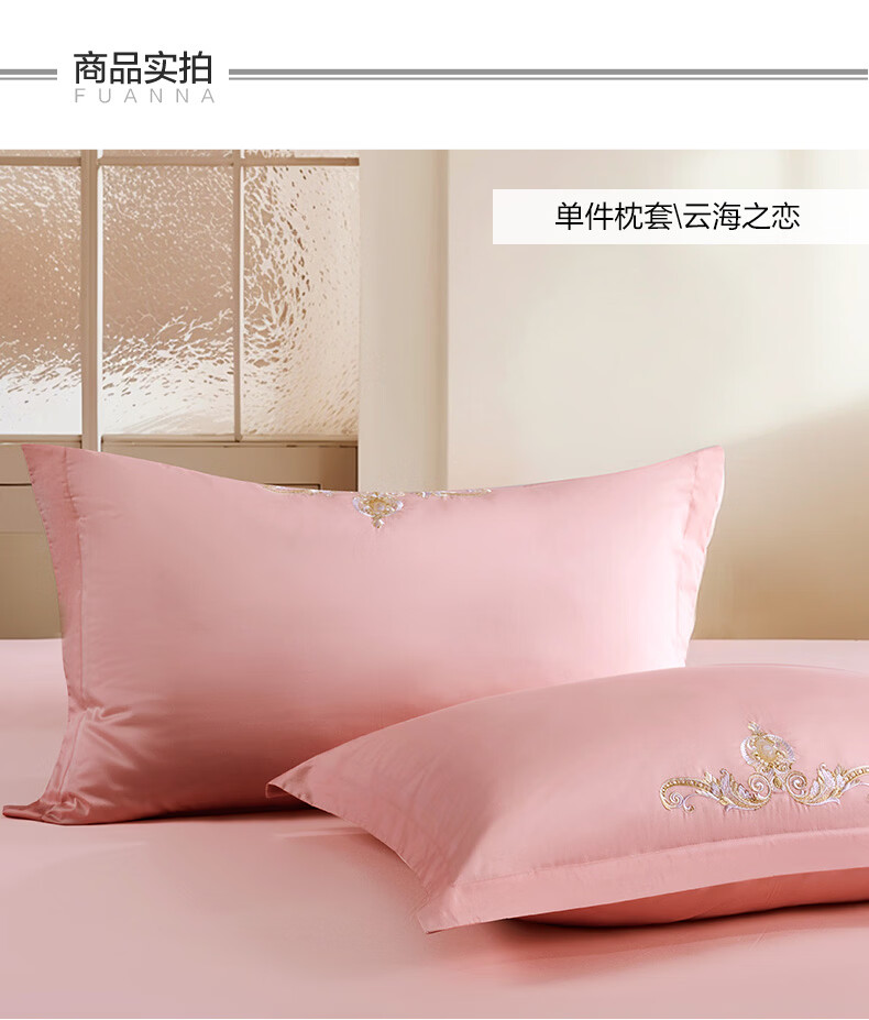 富安娜枕套 60支长绒棉100%纯棉单件枕套枕头套 70x45cm一只装 【60支长绒棉】安妮 70x45cm(一只装)