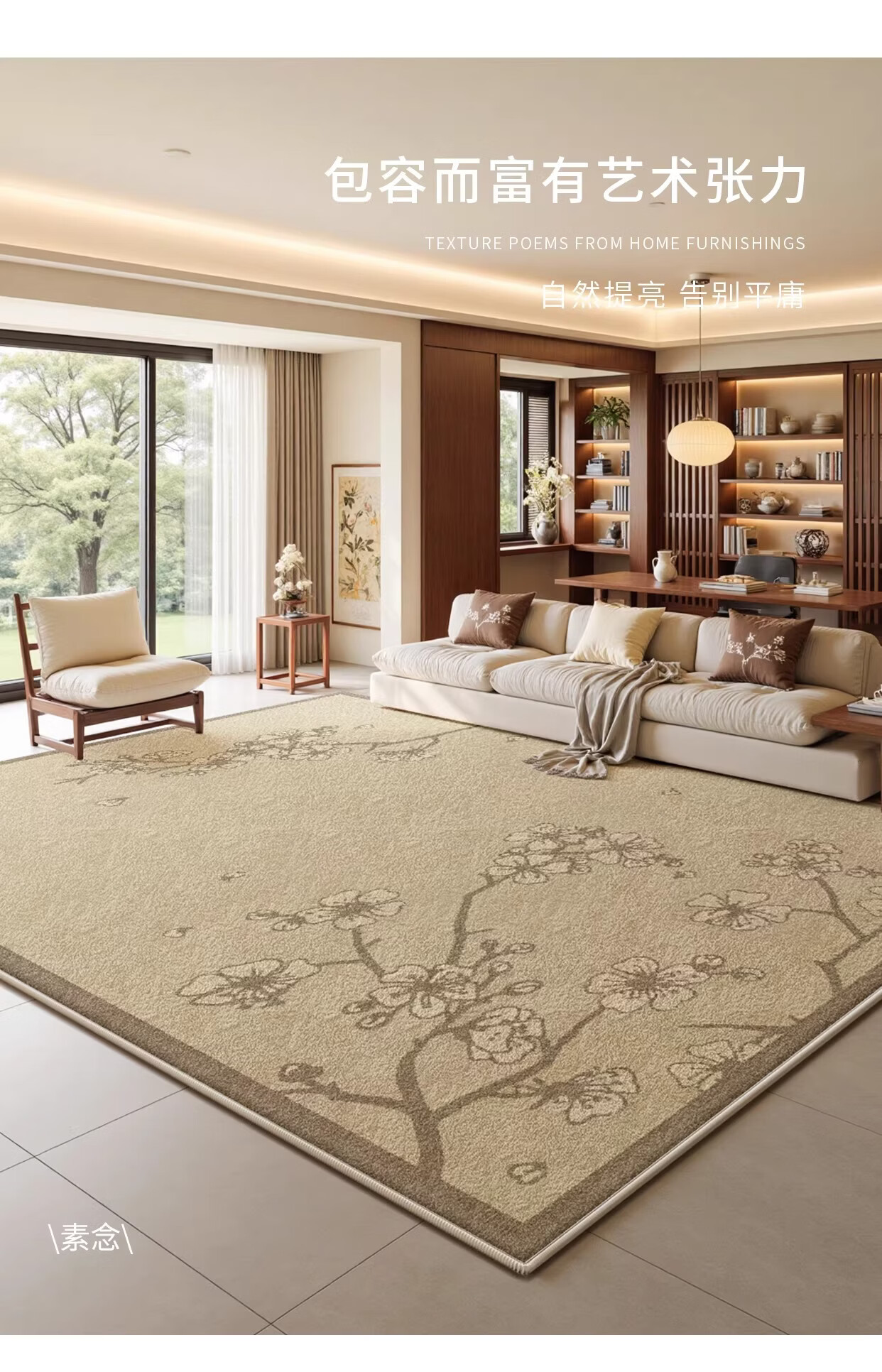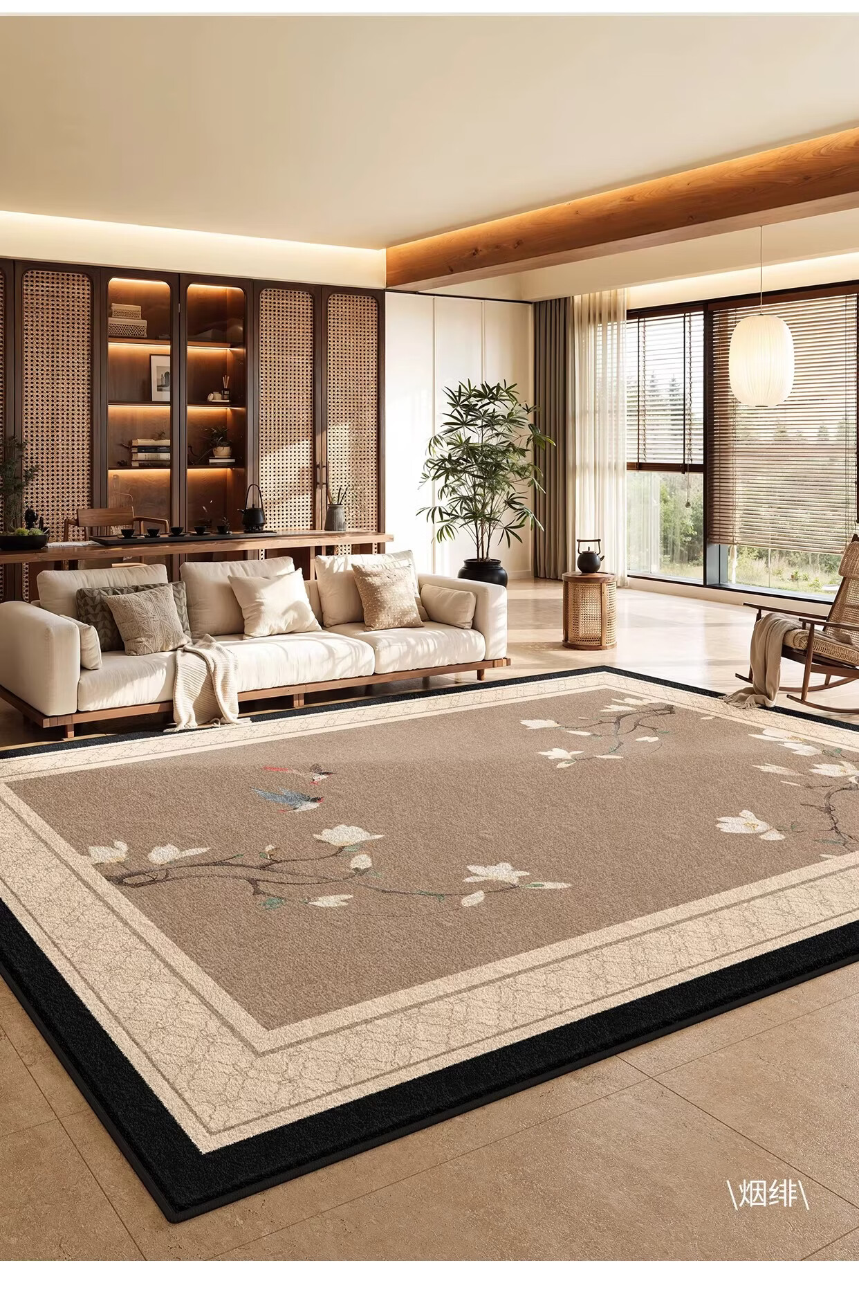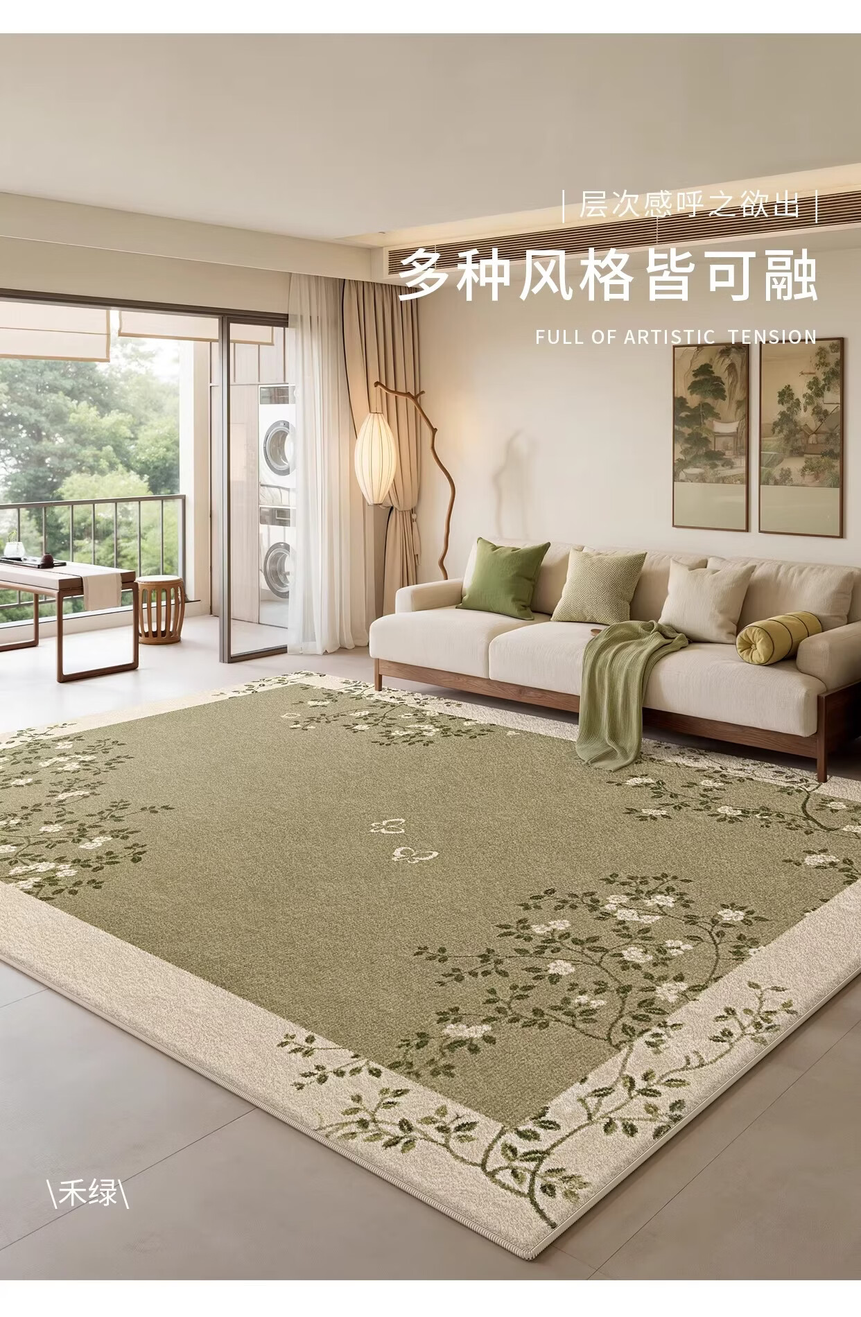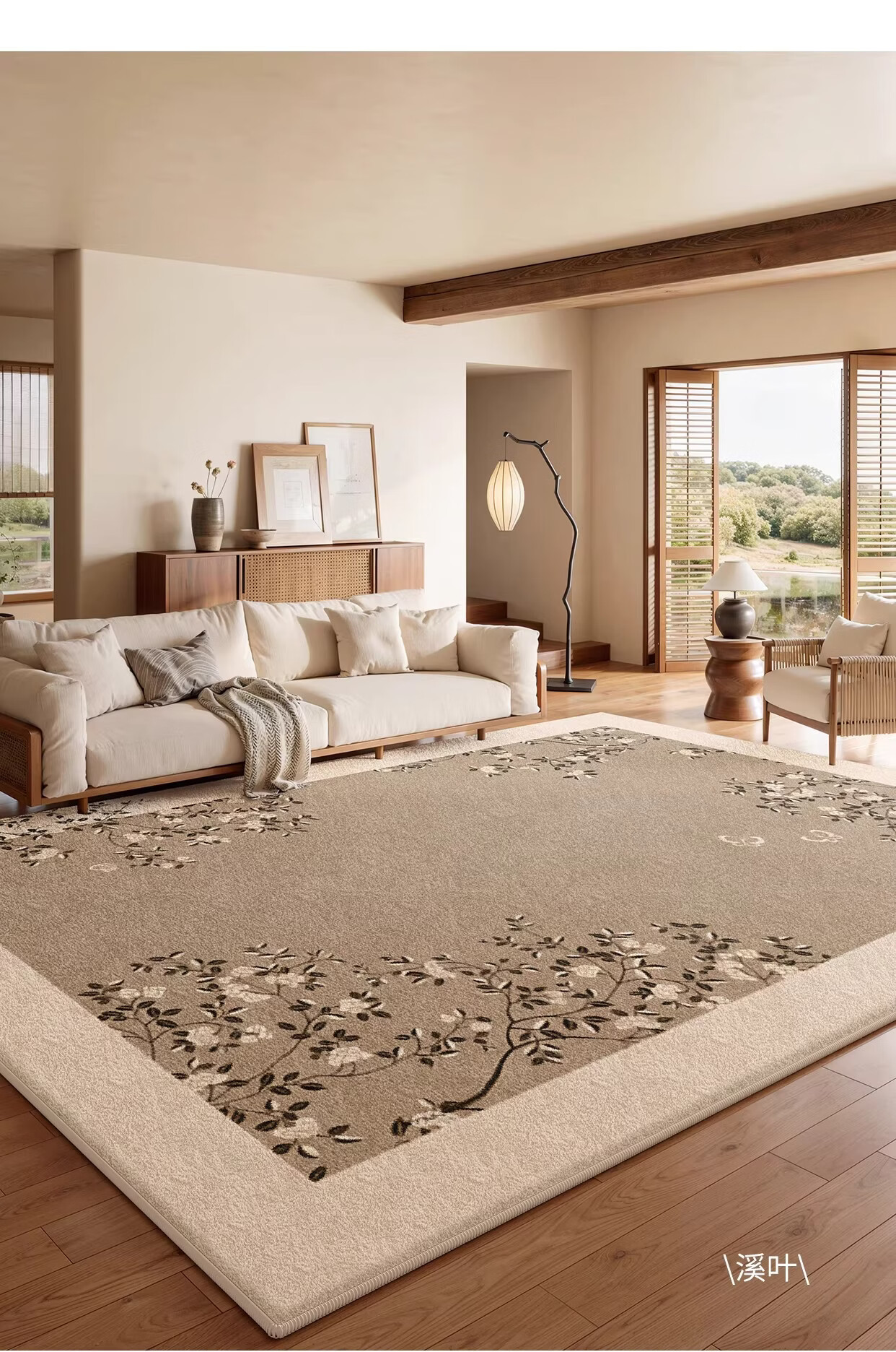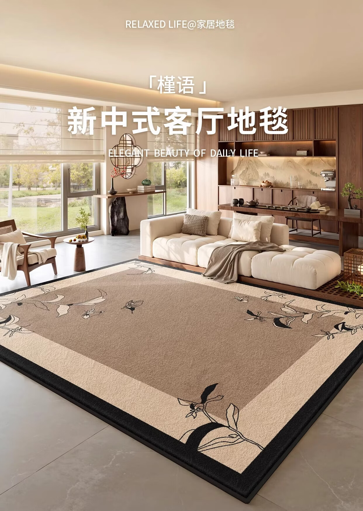 Y U-LIVE新中式地毯客厅2026新款中古风防水免洗可擦禅意茶室沙发茶几 S仿羊绒-溪叶 140×200cm【精致双线包边】