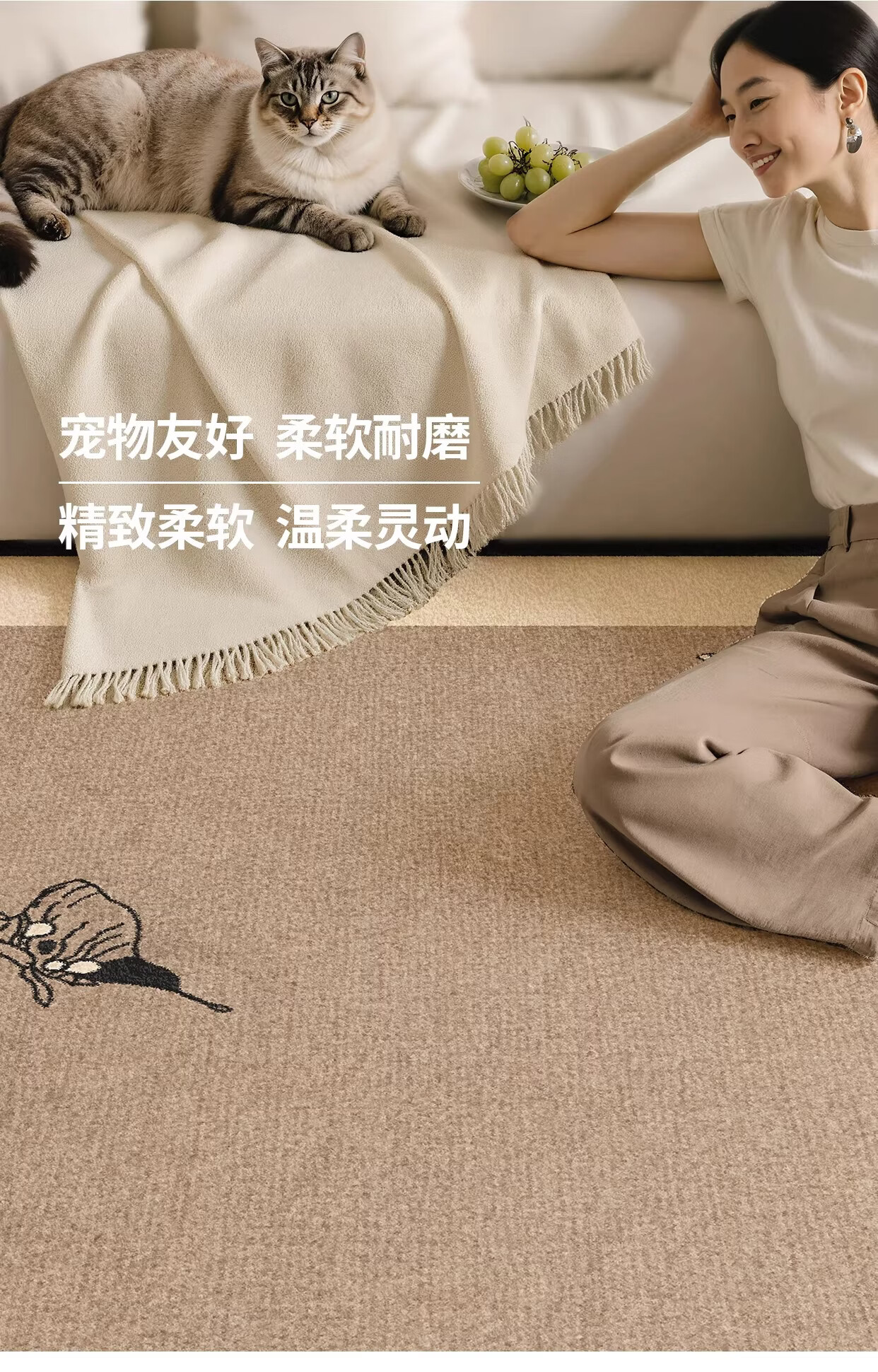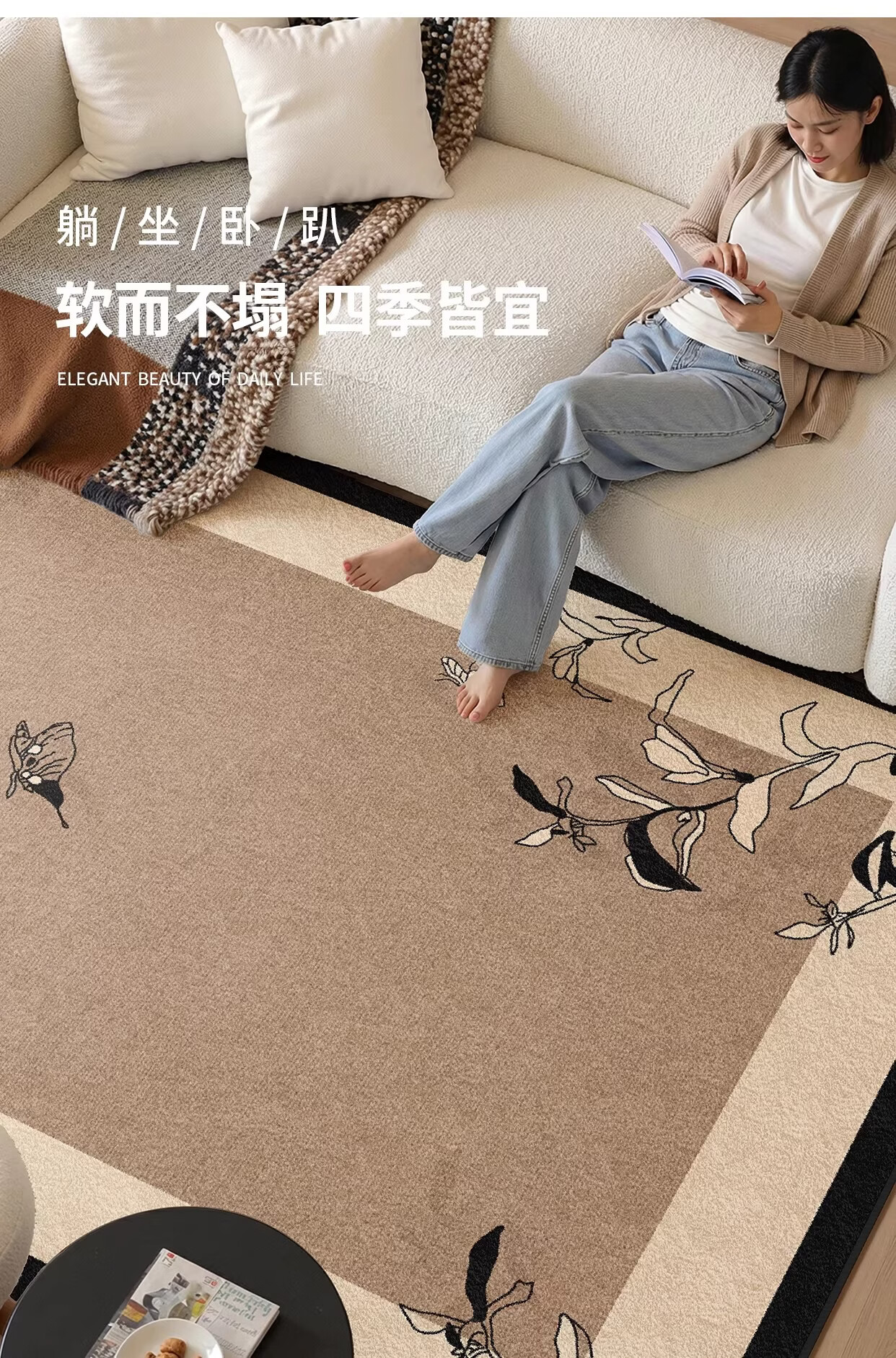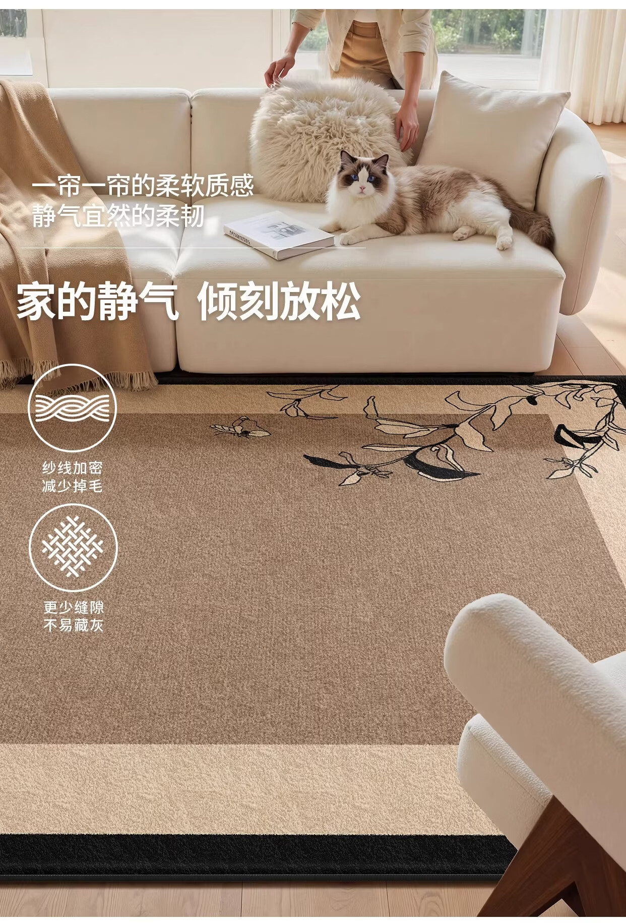 Y U-LIVE地毯客厅中古风2026新款沙发卧室床边垫免洗可擦高级家用轻简约 圈绒棉布-岩秋 定制请联系客服【享优惠】