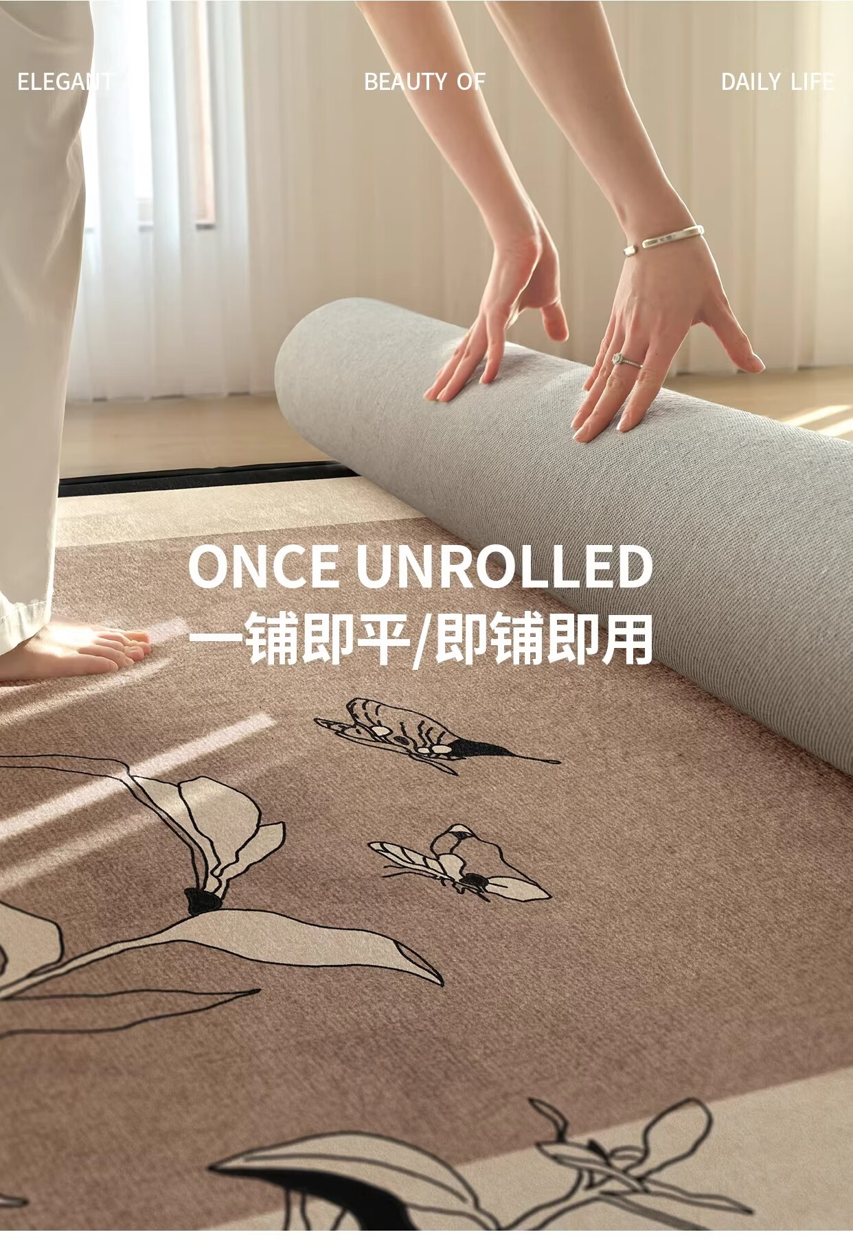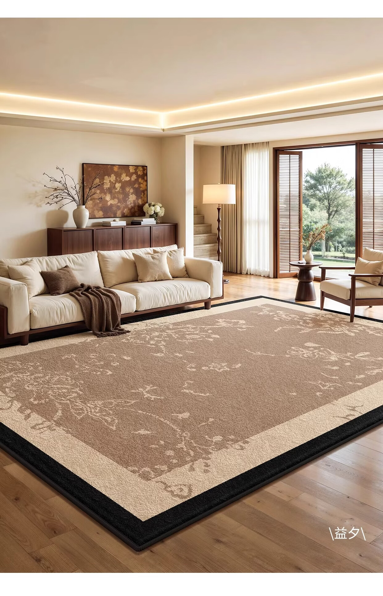 Y U-LIVE可拆洗地毯客厅法式复古中古风2026新款免洗可擦可机洗双层可 可拆洗-仿羊绒-墨色玫瑰 定制请联系客服【享优惠】