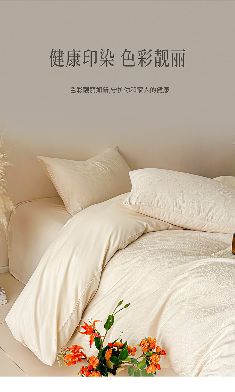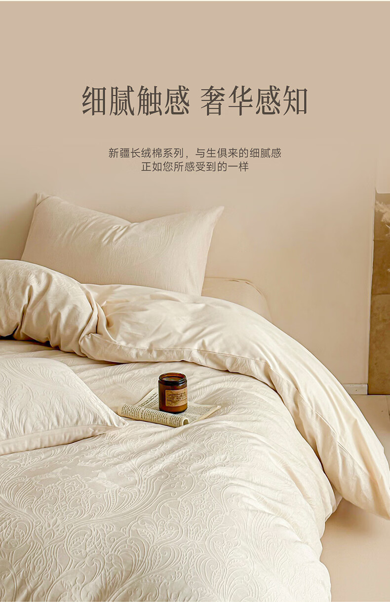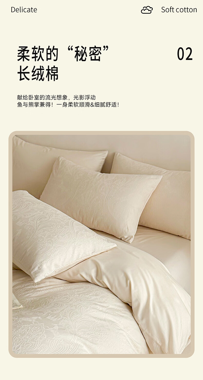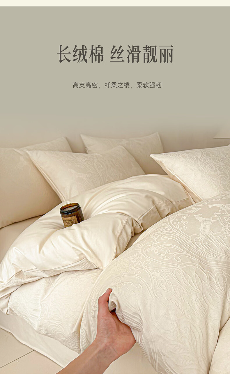 无印良品长绒棉纯棉四件套全棉床单被套家用轻奢高级感床笠款被罩床上用品 冠马踏云-奶白【高支高密 新疆长绒棉】 1.8m 床单款 四件套-被套200x230cm