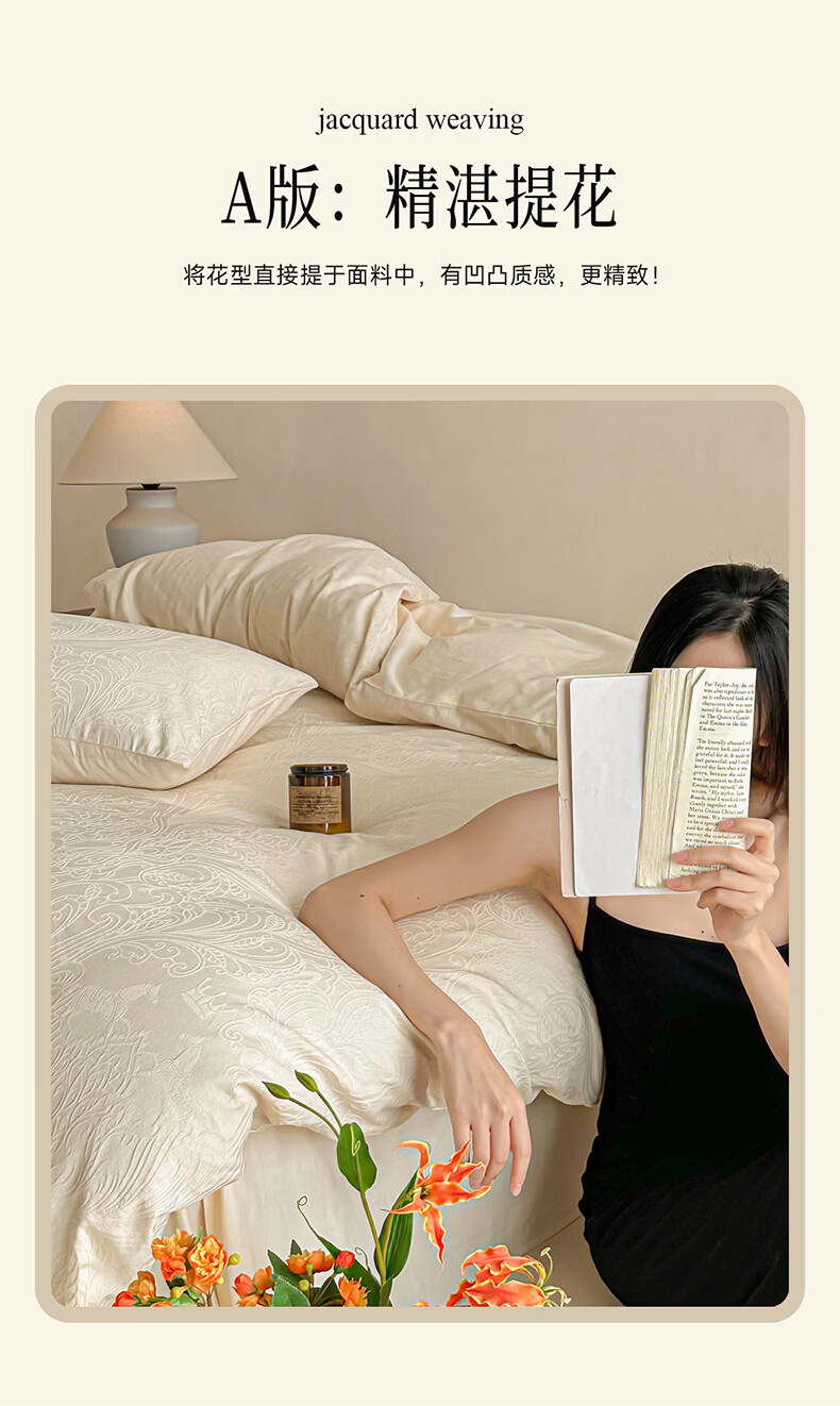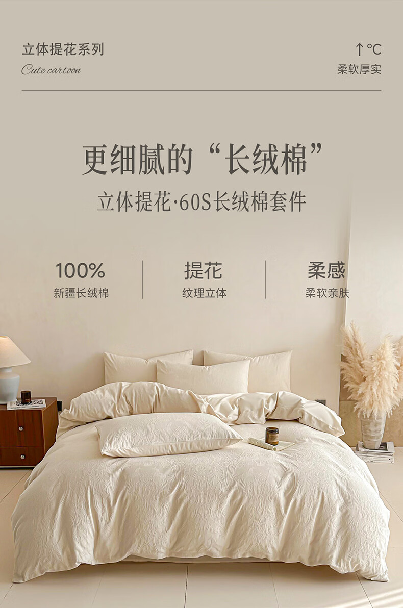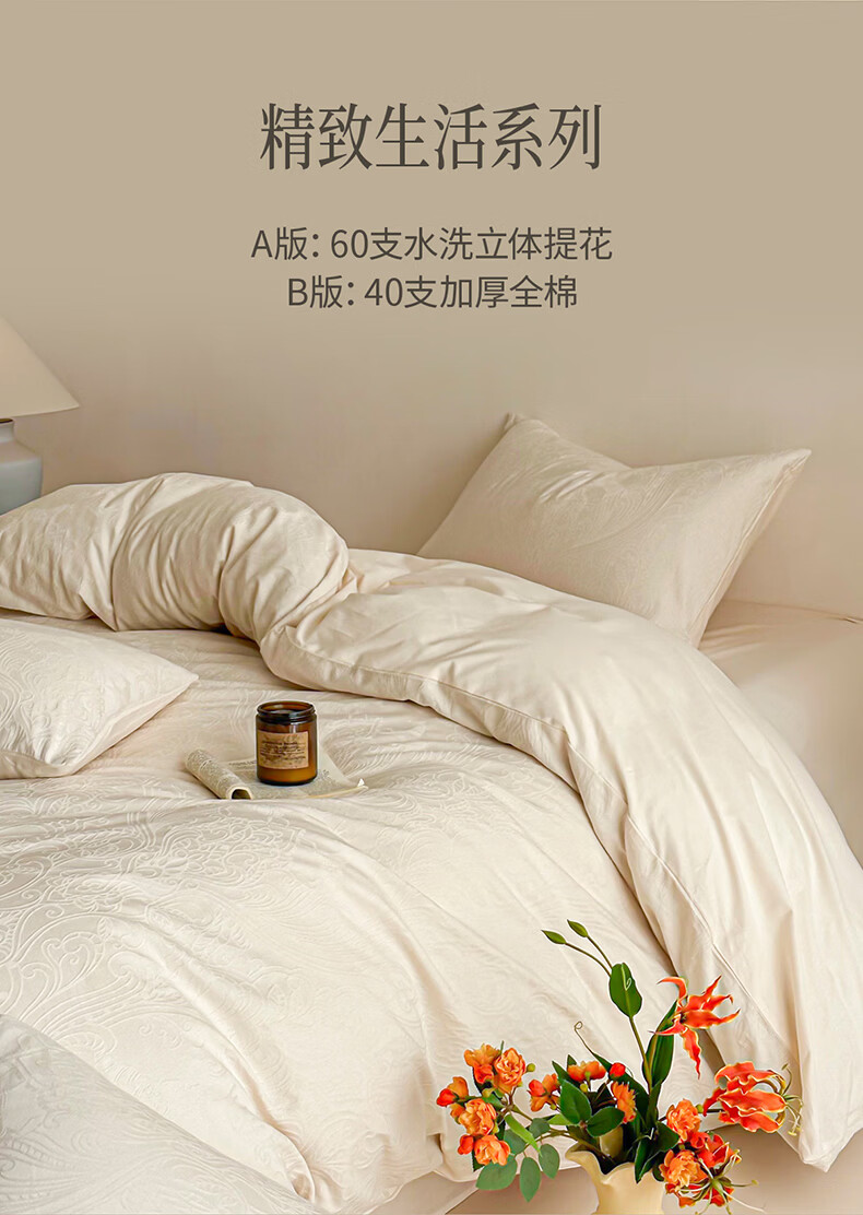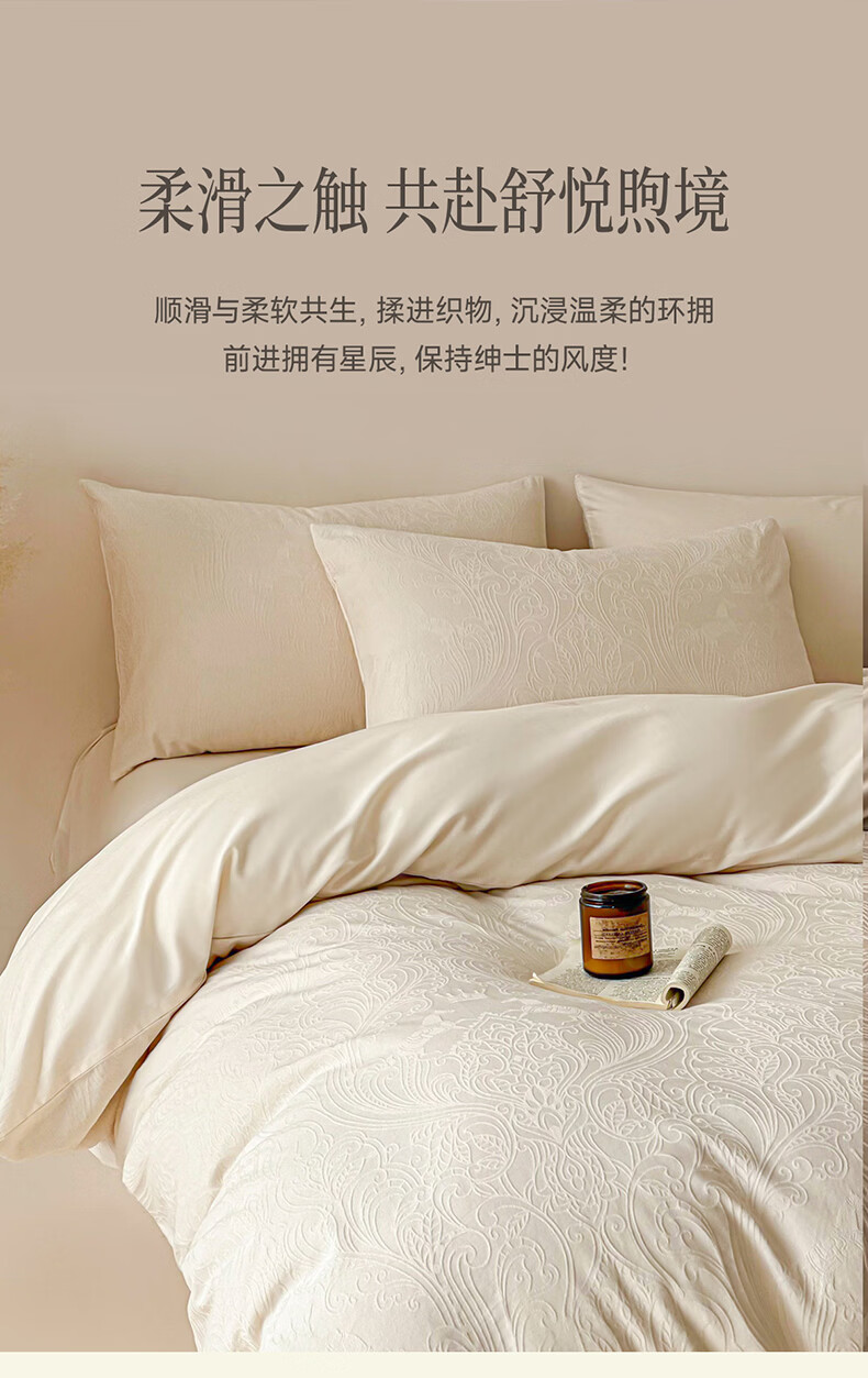 无印良品长绒棉纯棉四件套全棉床单被套家用轻奢高级感床笠款被罩床上用品 冠马踏云-奶白【高支高密 新疆长绒棉】 1.8m 床单款 四件套-被套200x230cm