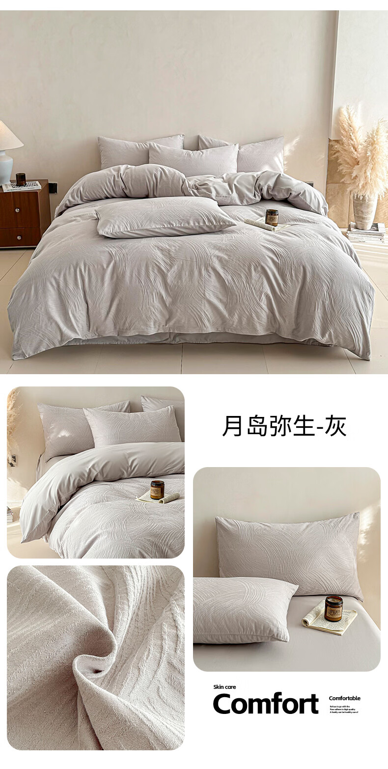 无印良品a类双层纱全棉床上四件套纯棉四季通用床单被套三件套床笠款床品4 晴丝一缕【A类全棉双层纱 亲肤裸睡】 1.8m 床单款 四件套-被套200*230cm