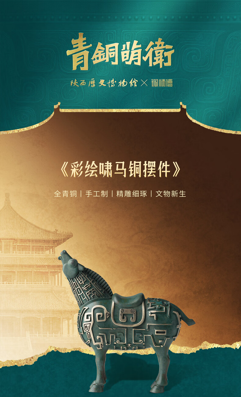 铜师傅 陕西历史博物馆系列《彩绘啸马铜摆件》青铜摆件