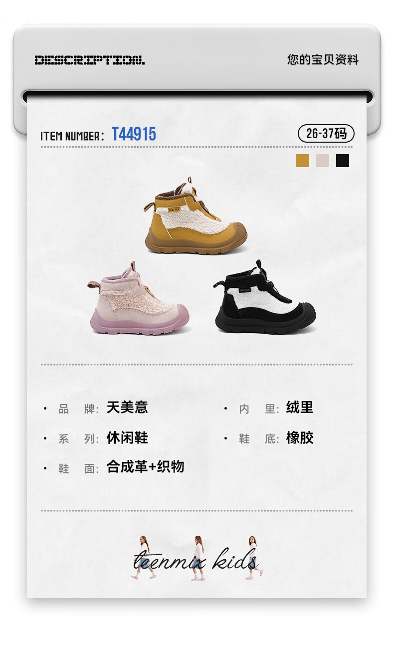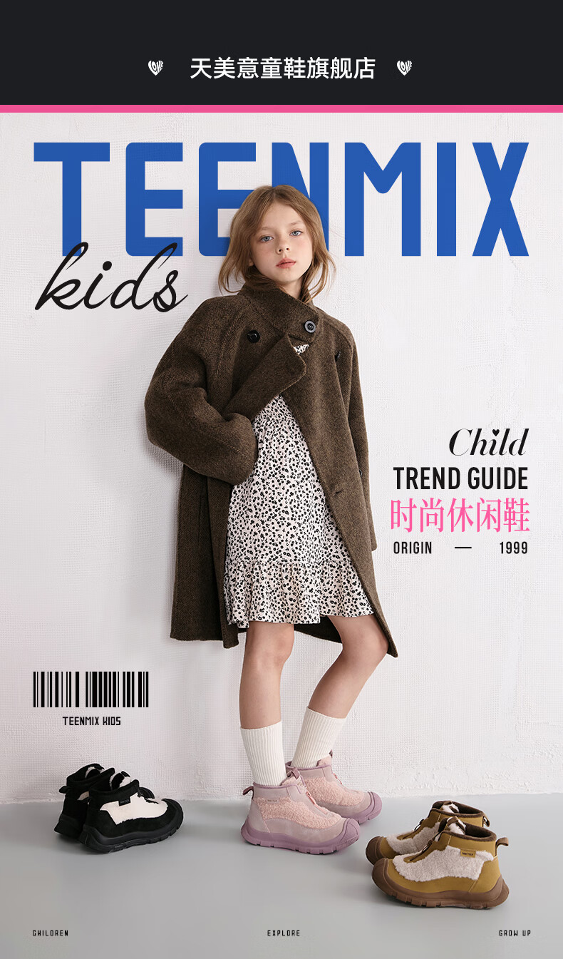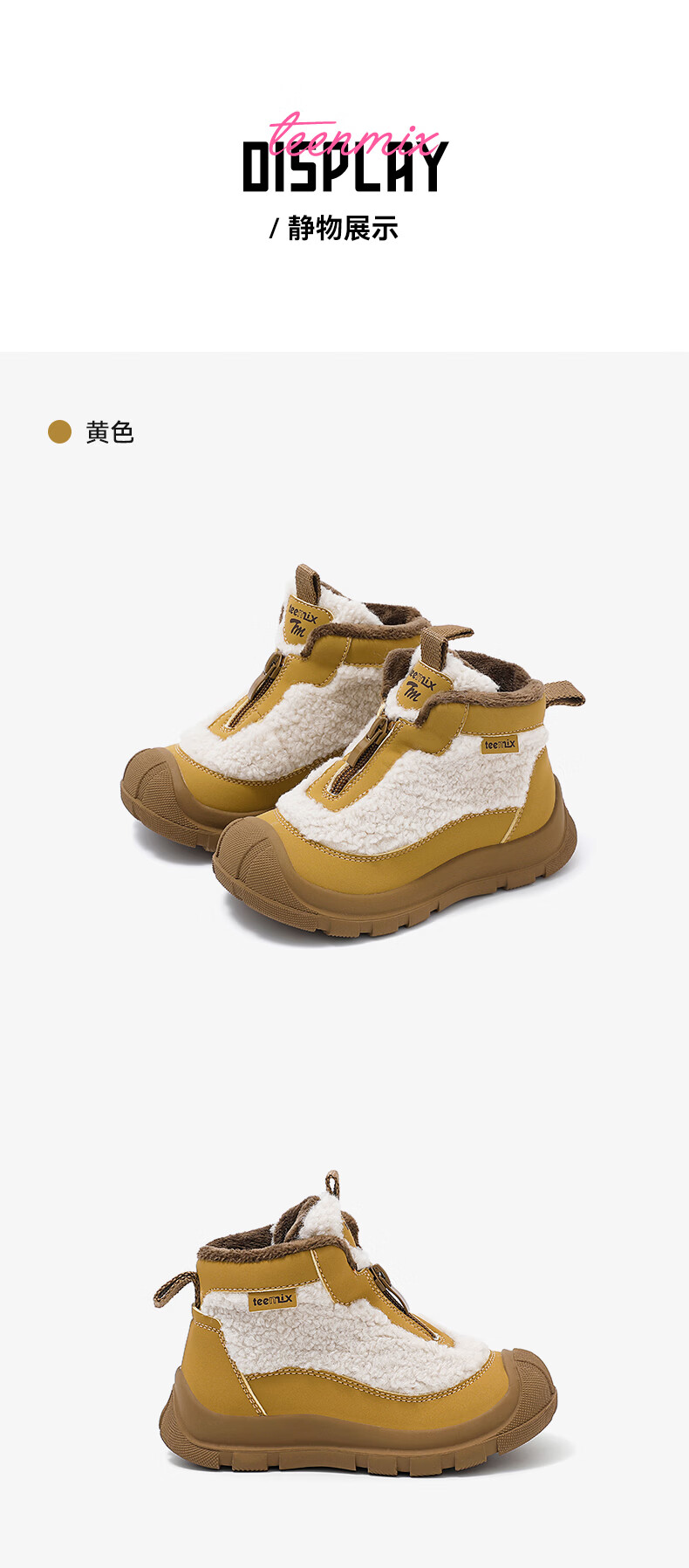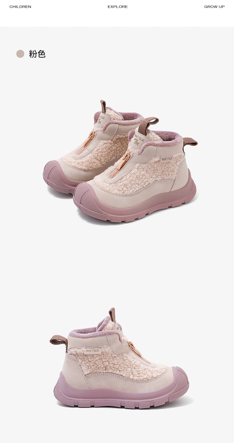 天美意(TEENMIX)天美意儿童运动鞋男童鞋子2025秋冬新款女童加绒保暖休闲鞋 粉色 33