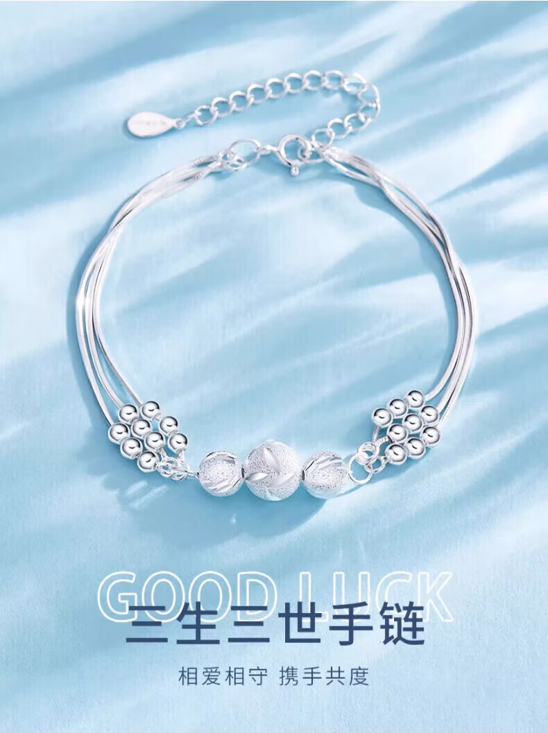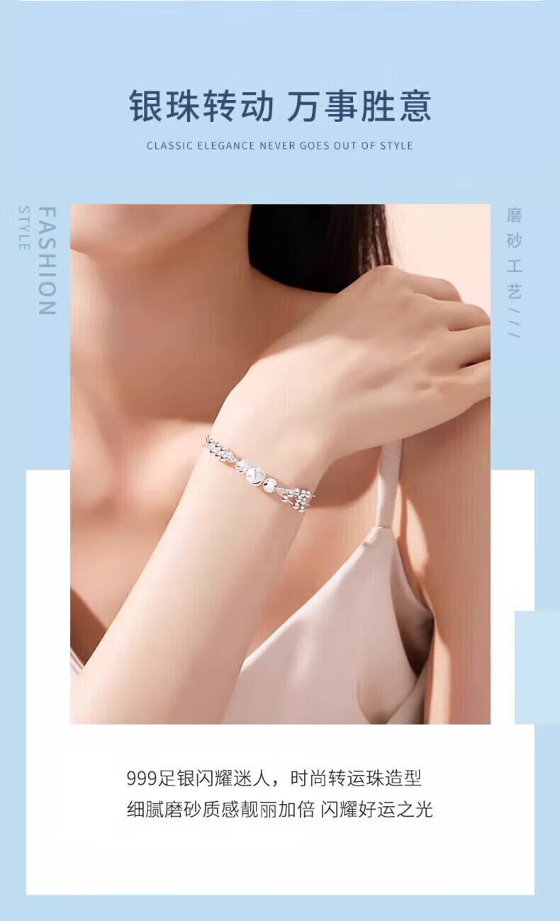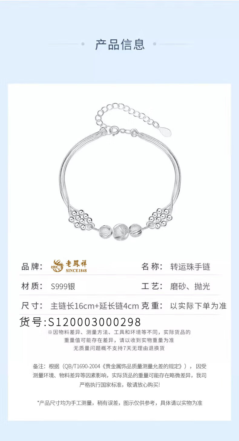 老凤祥三生三世手链足银女款轻奢转运珠手饰情人节生情人节礼物送女朋友 今/次日达*限时清仓*999银三生三世转运珠手链
