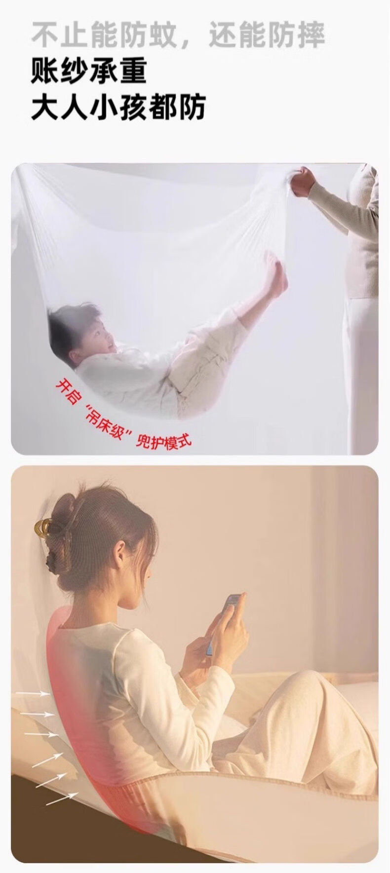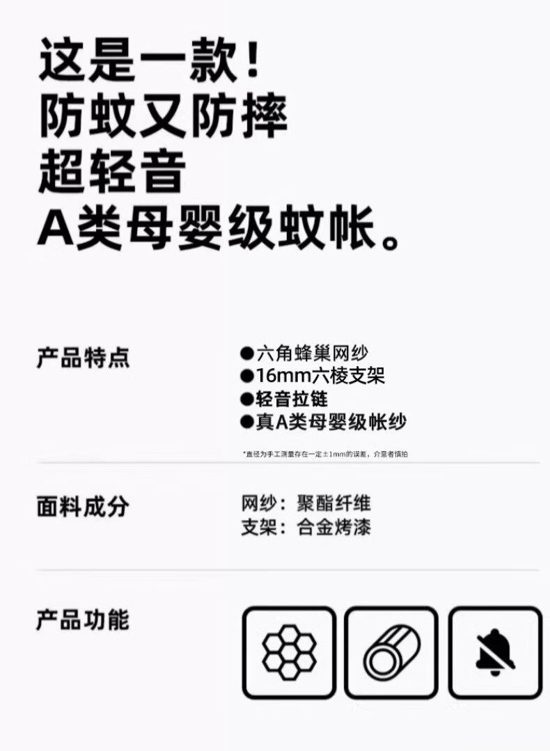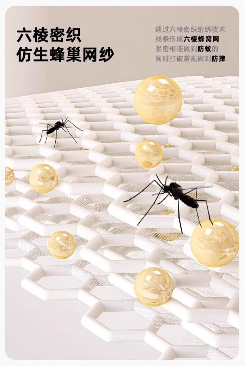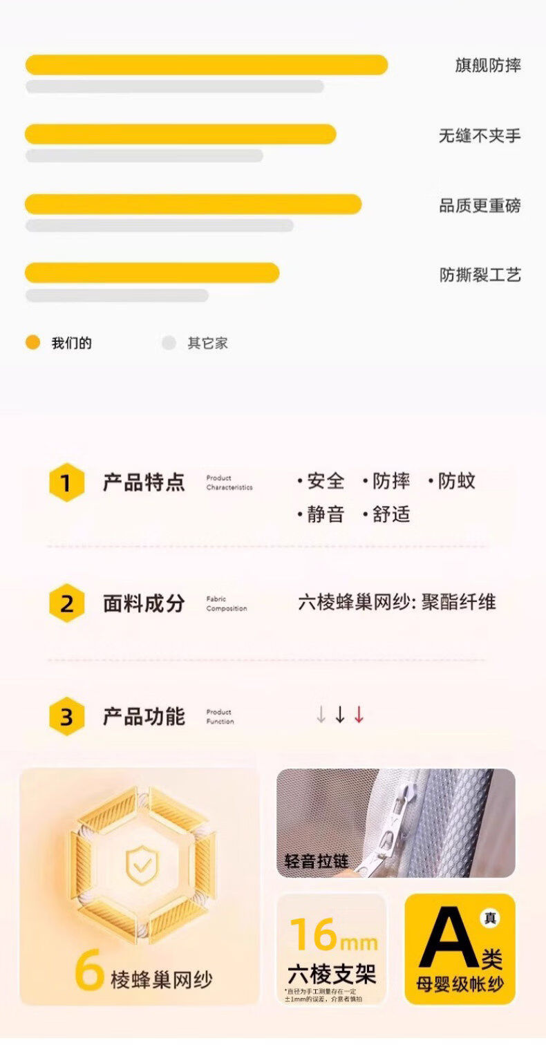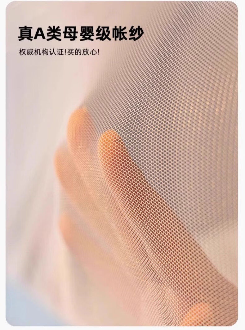 猫人(MiiOW)防摔婴儿蚊帐1.8x2米家用一体式免安装全包围蒙古包儿童单帐纱帘 米黄【护栏式脚架 防摔再升级】 适用1.8m床-宽180*长200*高170cm