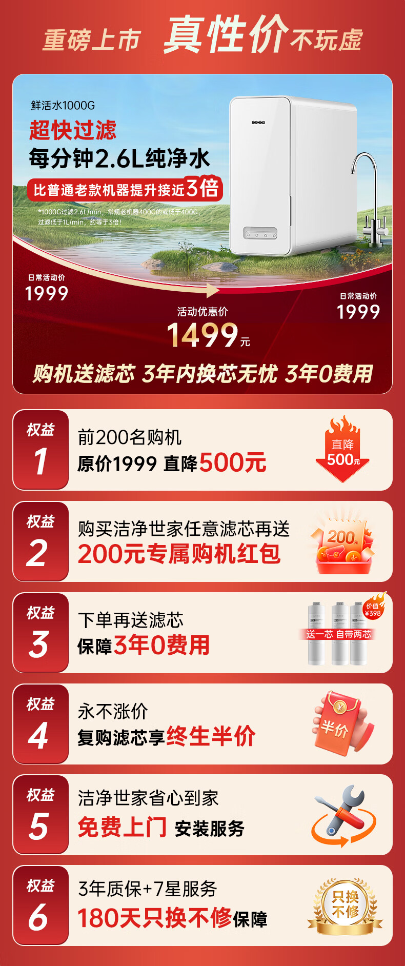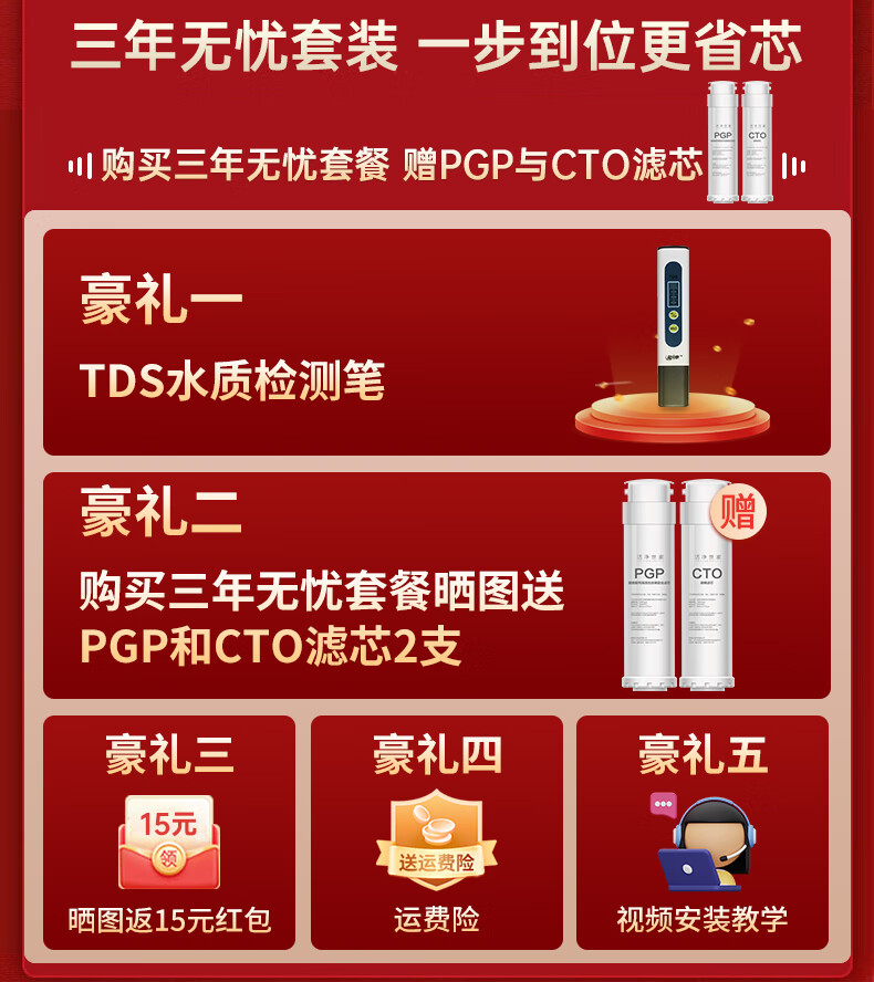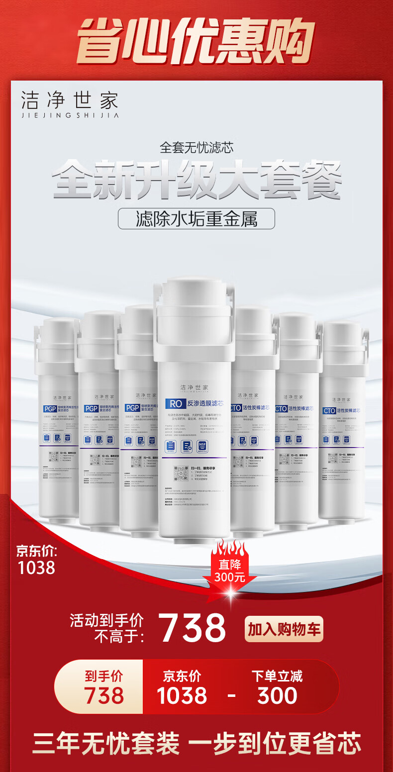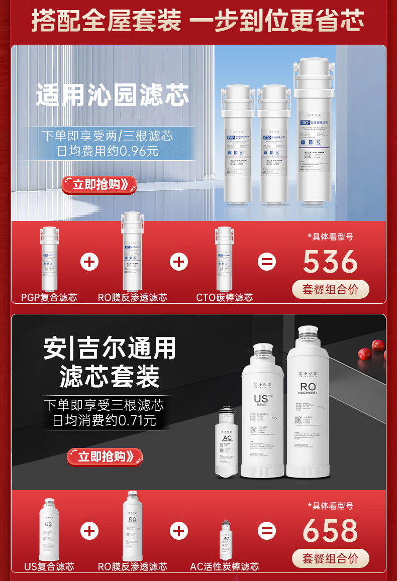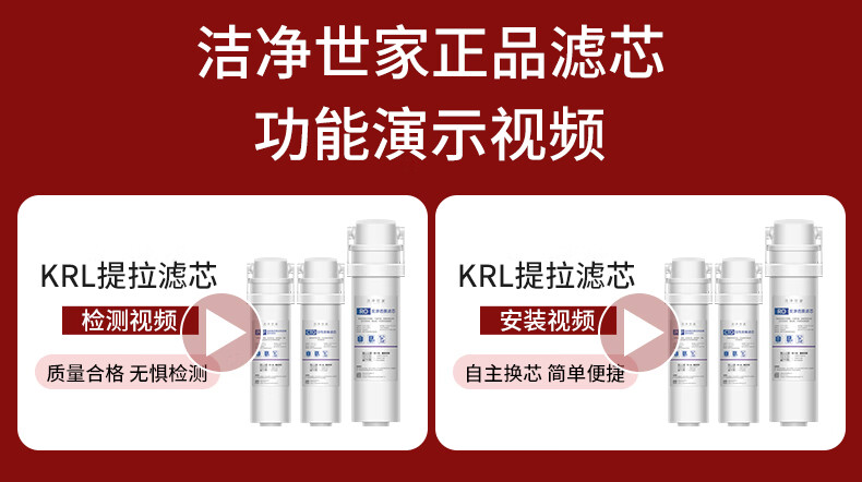 洁净世家适用沁园净水器滤芯KRL提拉系列小新小水钻小净灵小白鲸RO反渗透膜净水机 三年无忧套【KRL3916/5006/6906