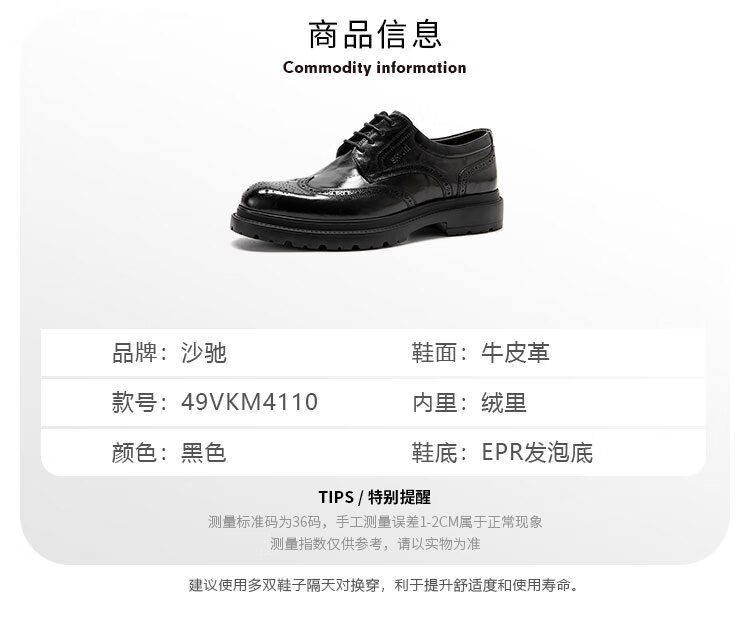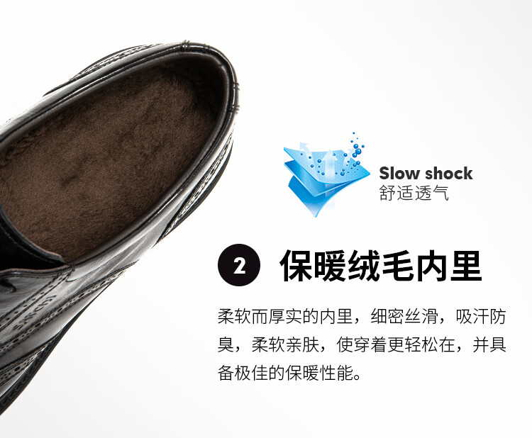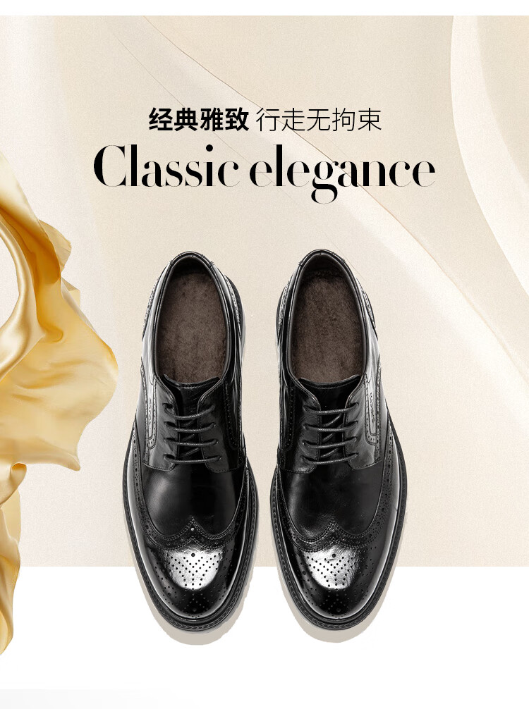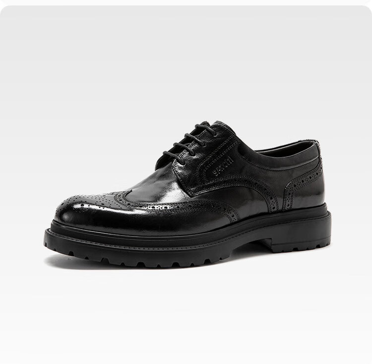 沙驰(SATCHI)男鞋【胎牛水泡泡】加绒保暖雕花布洛克商务正装皮鞋轻底舒适棉鞋 黑色(49VKM4110) 37