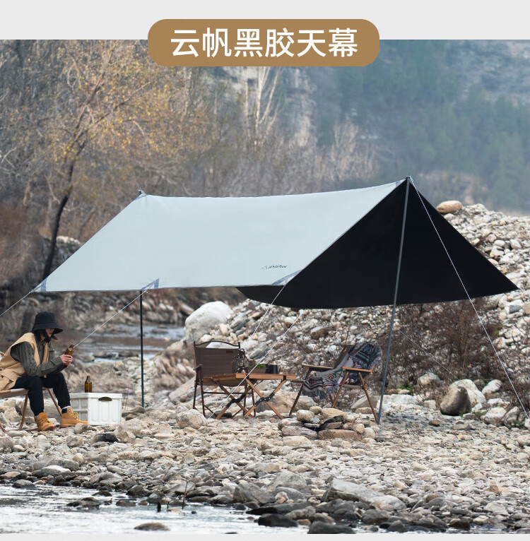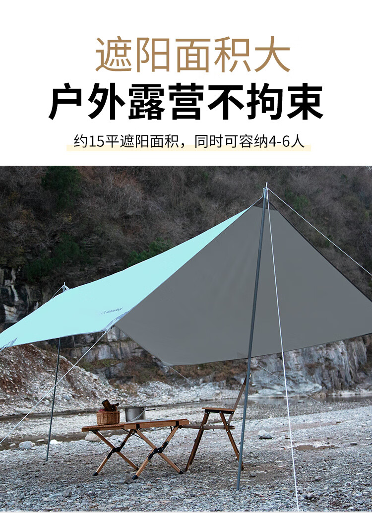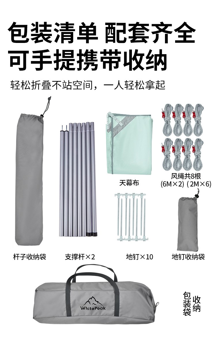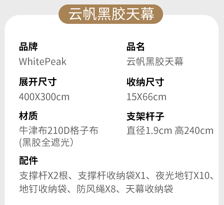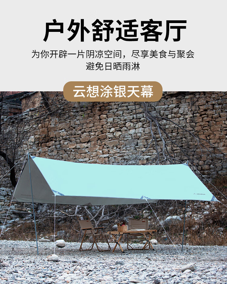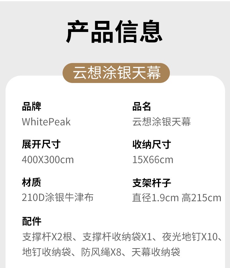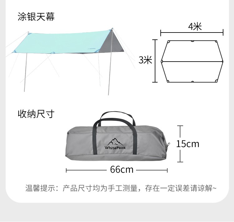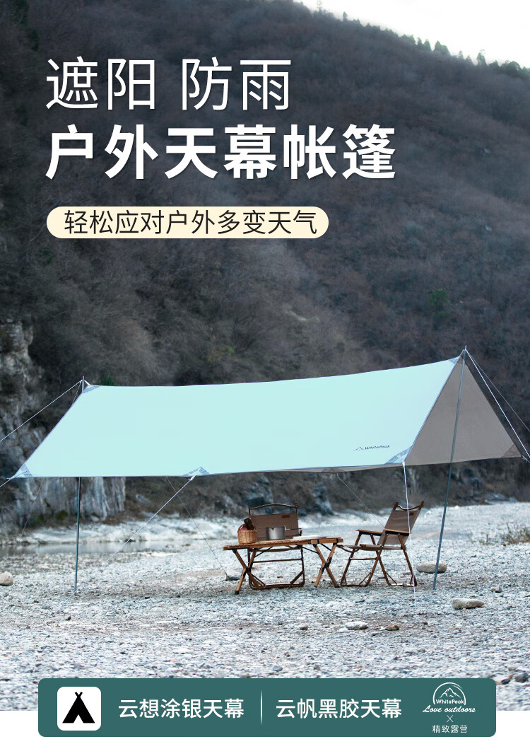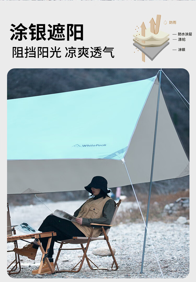 WhitePeak 户外天幕黑胶涂银防晒户外帐篷遮阳棚露营棚纳凉棚大空间防泼水 涂银款| 约400*300*215cm