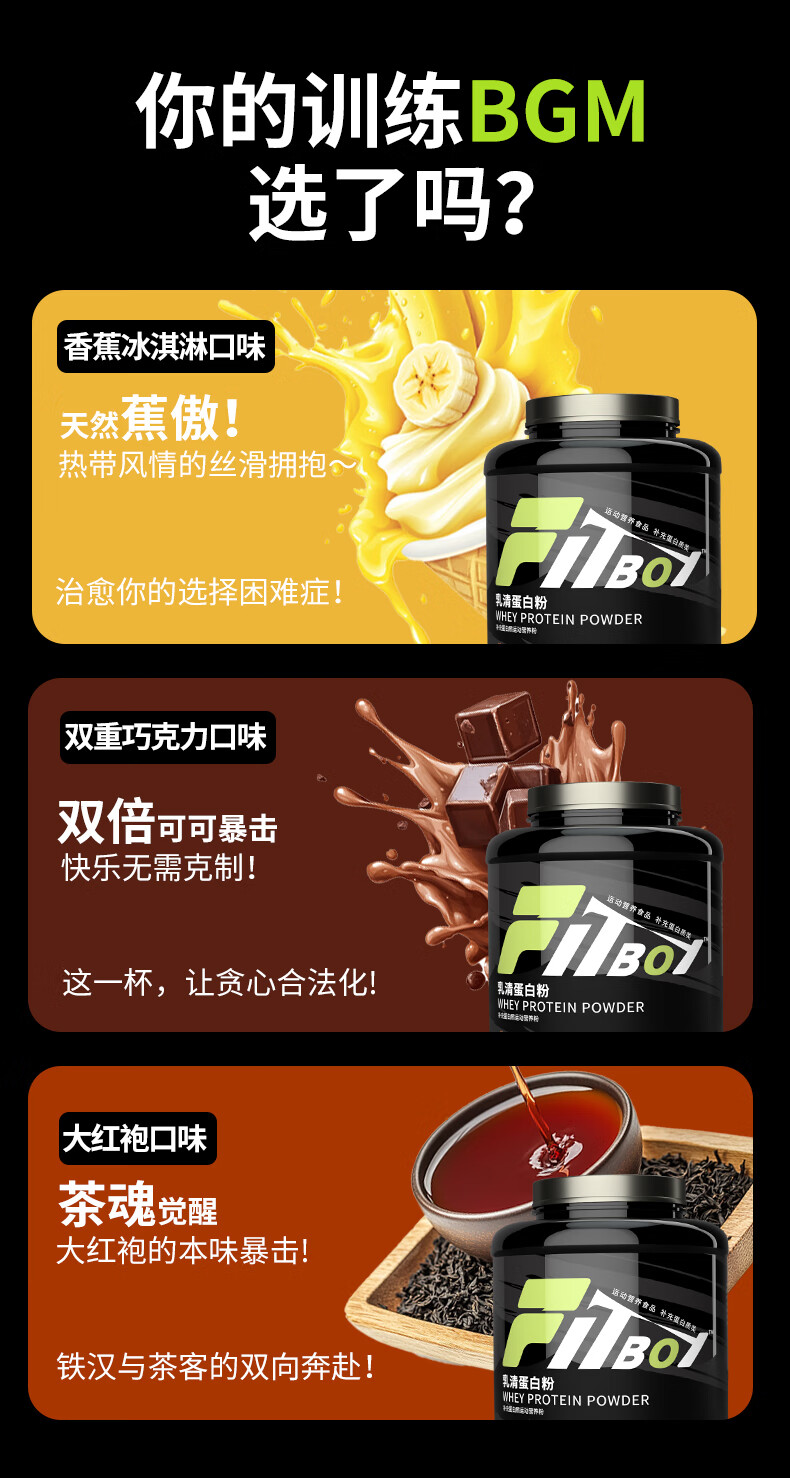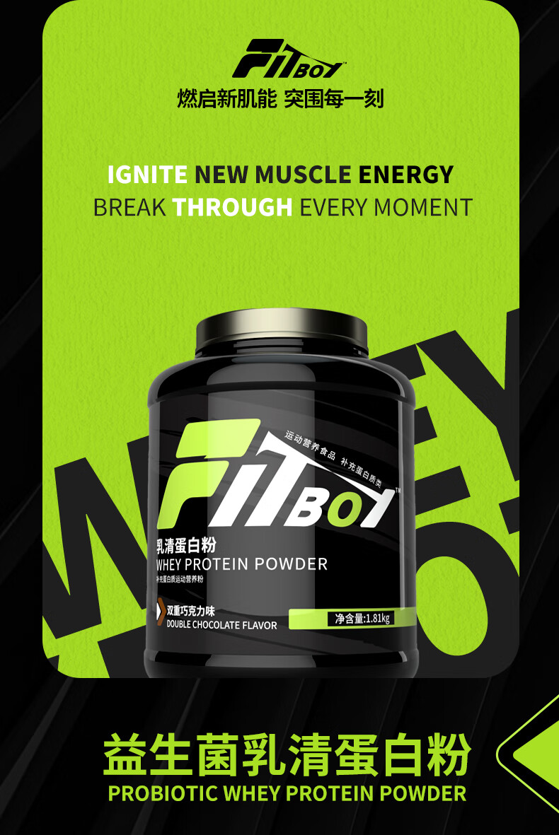 FITBOY/小赛同学乳清蛋白粉运动营养健身增肌增重分离乳清益生菌 香蕉冰淇淋 4磅*1桶 乳清蛋白
