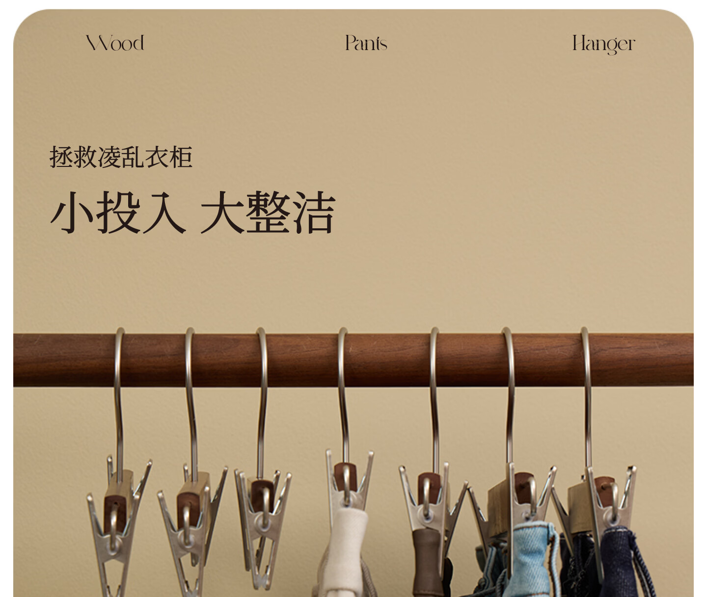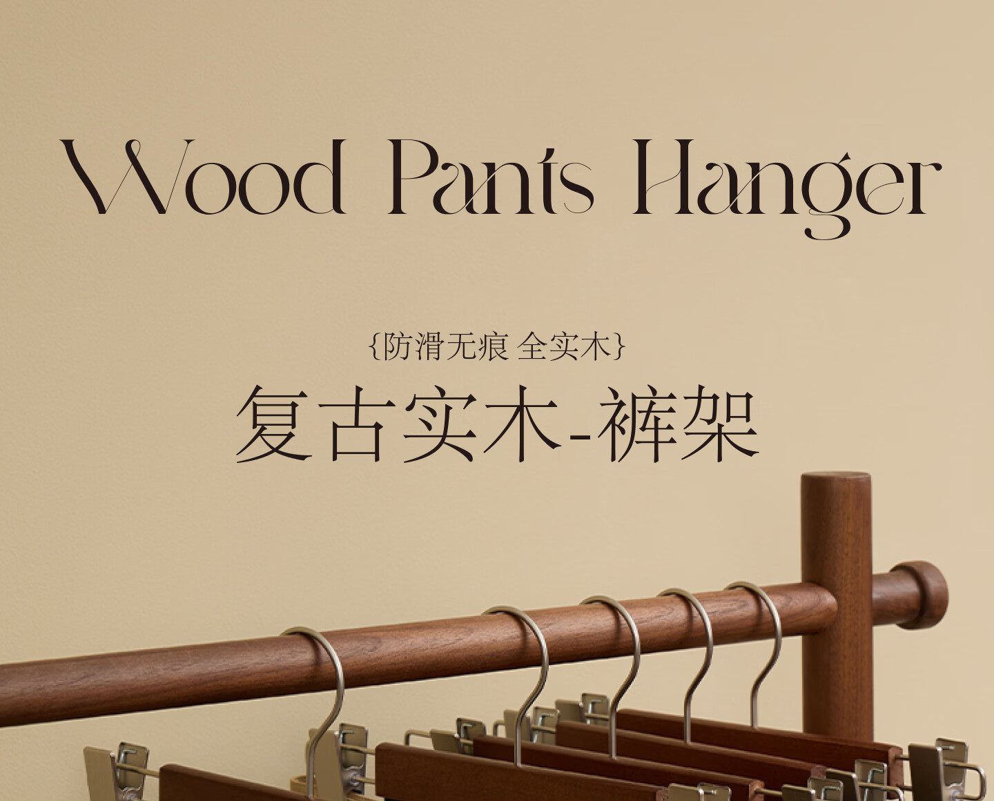 梵瀚实木裤架挂裤子专用家用无痕挂裤子裙子衣架带夹子防滑晾晒裤挂 裤架 一字款 1个