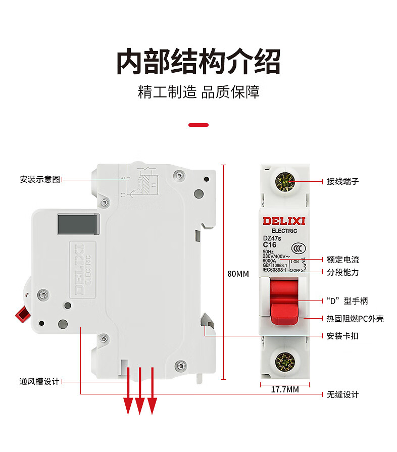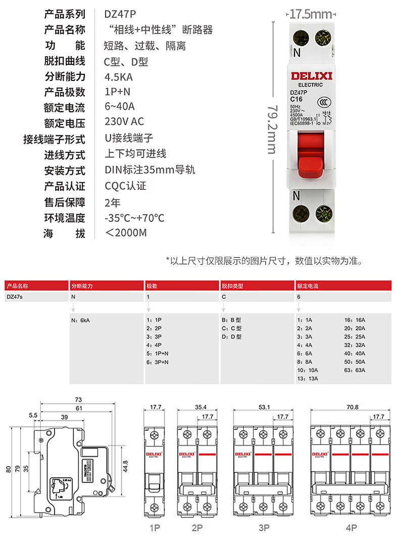 德力西电气空开微型断路器空气开关家用DZ47s 1P 16A