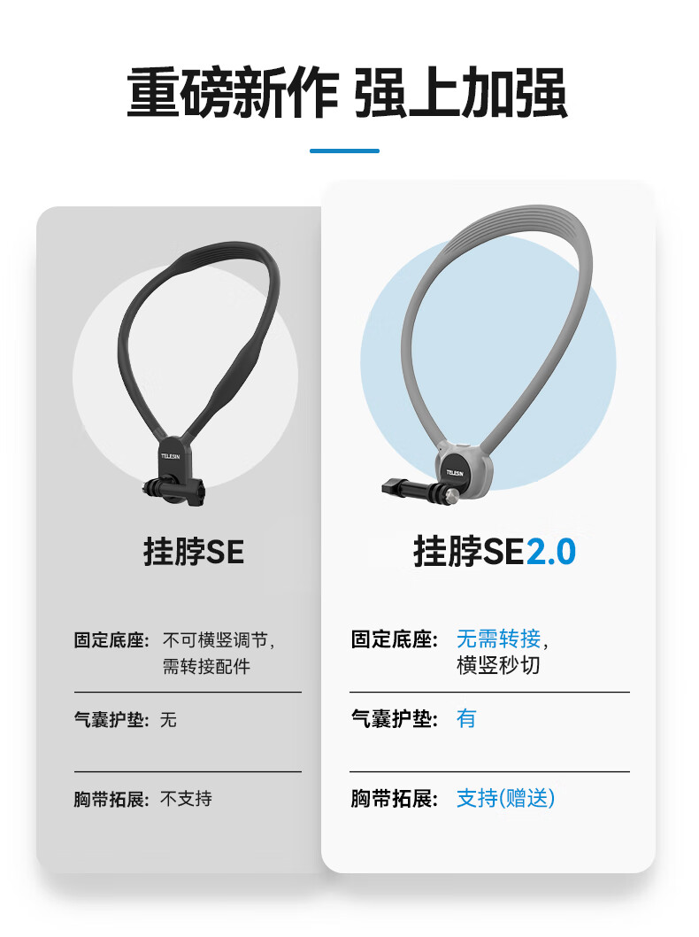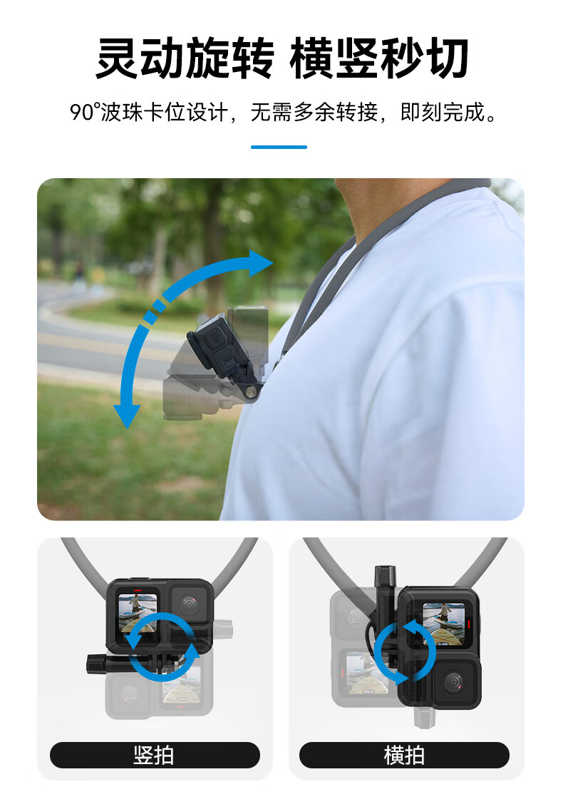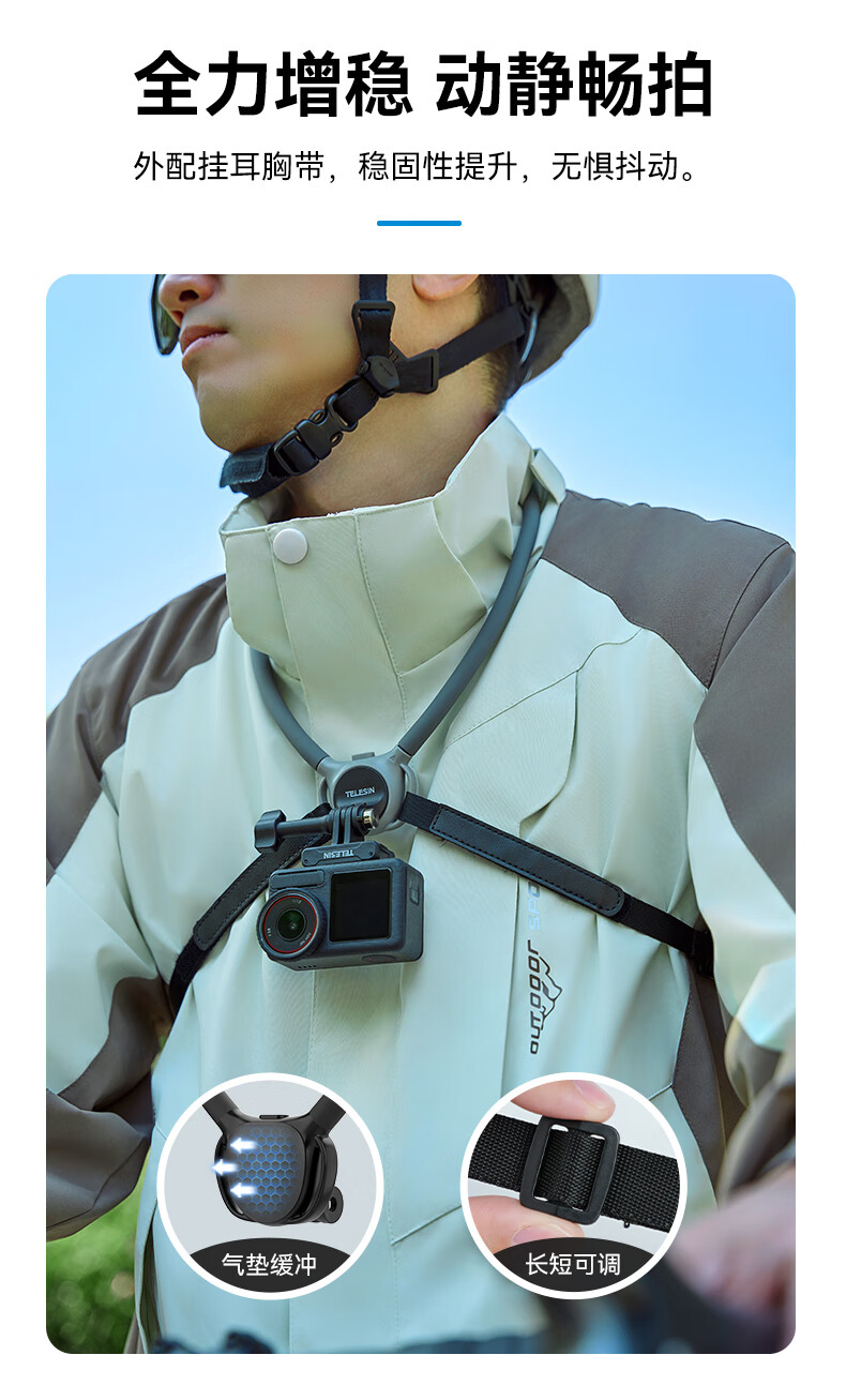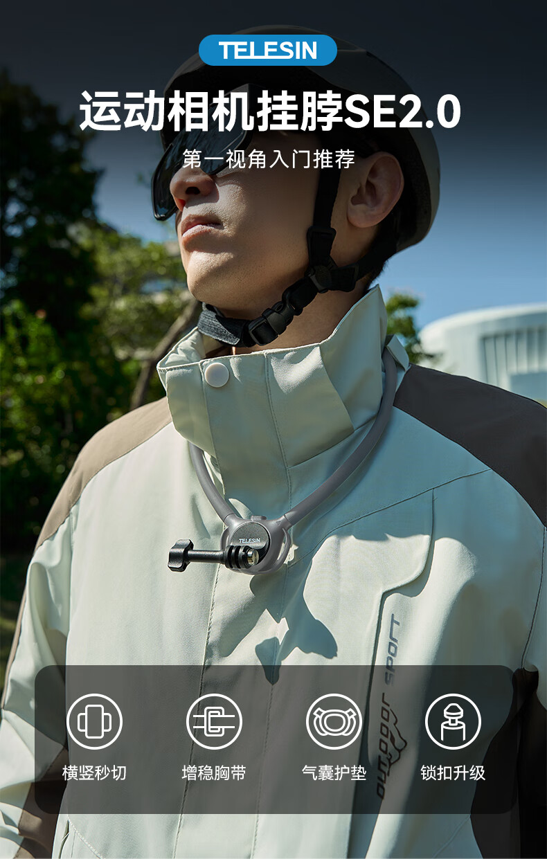 TELESIN(泰迅)适配大疆action6/5pro/4挂脖nano acepro2第一视角拍摄gopro胸前固定支架挂脖支架SE2.0