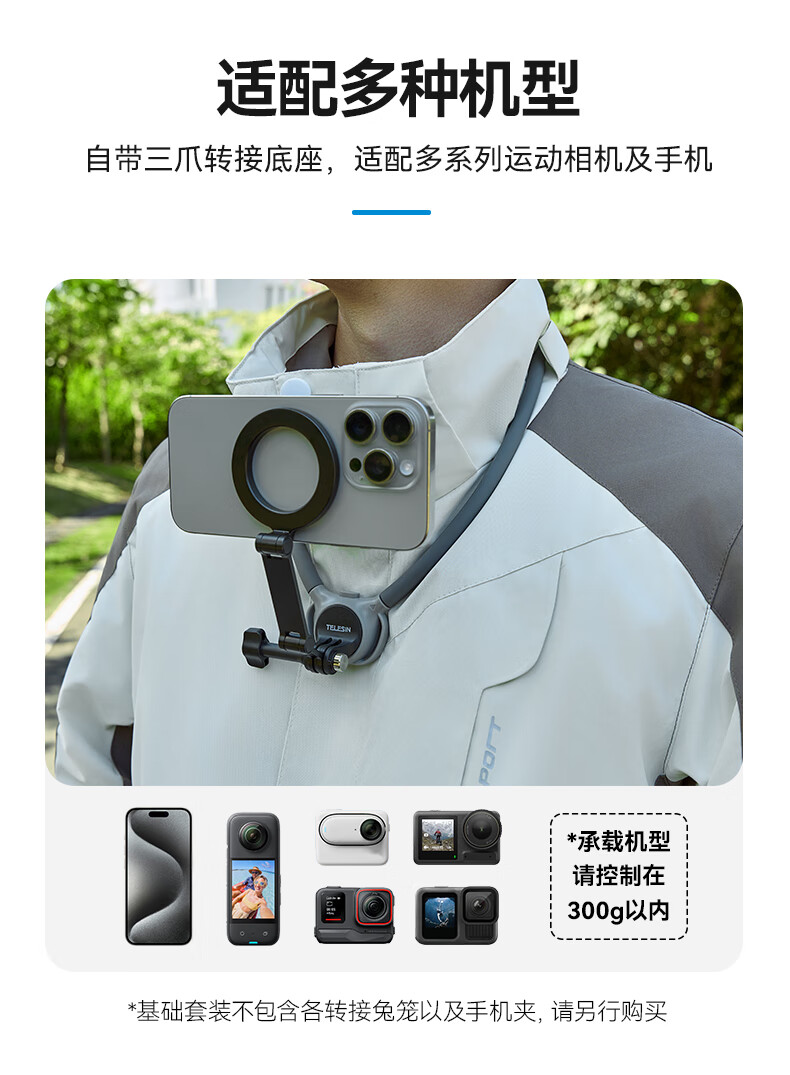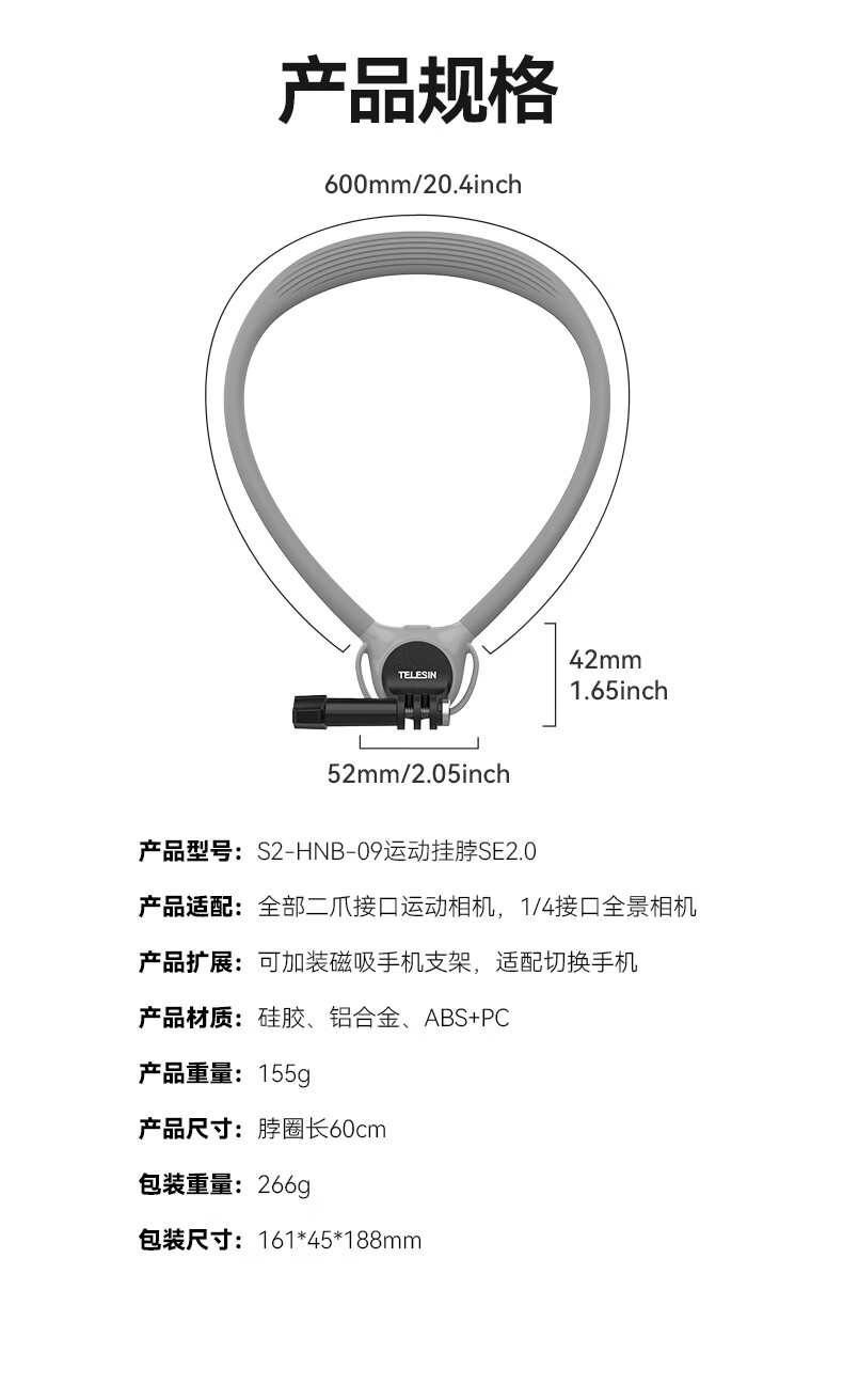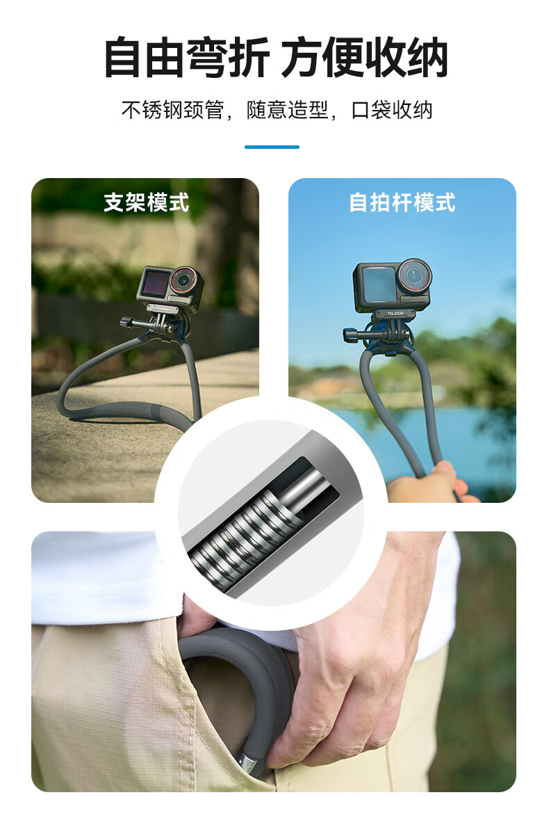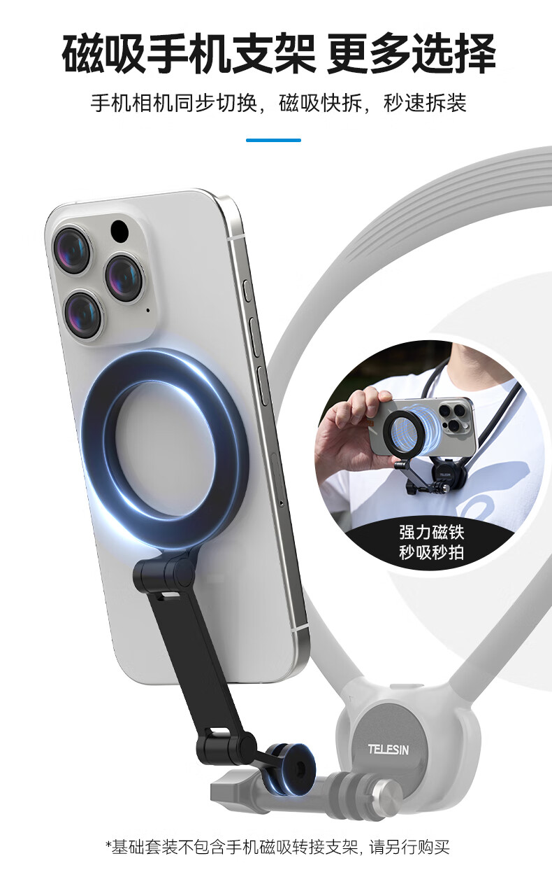 TELESIN(泰迅)适配大疆action6/5pro/4挂脖nano acepro2第一视角拍摄gopro胸前固定支架挂脖支架SE2.0