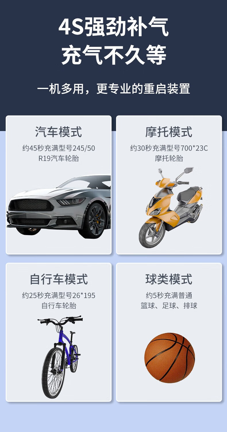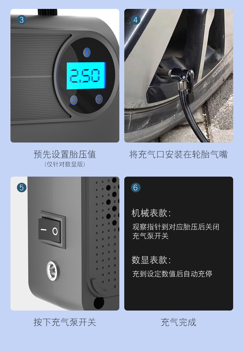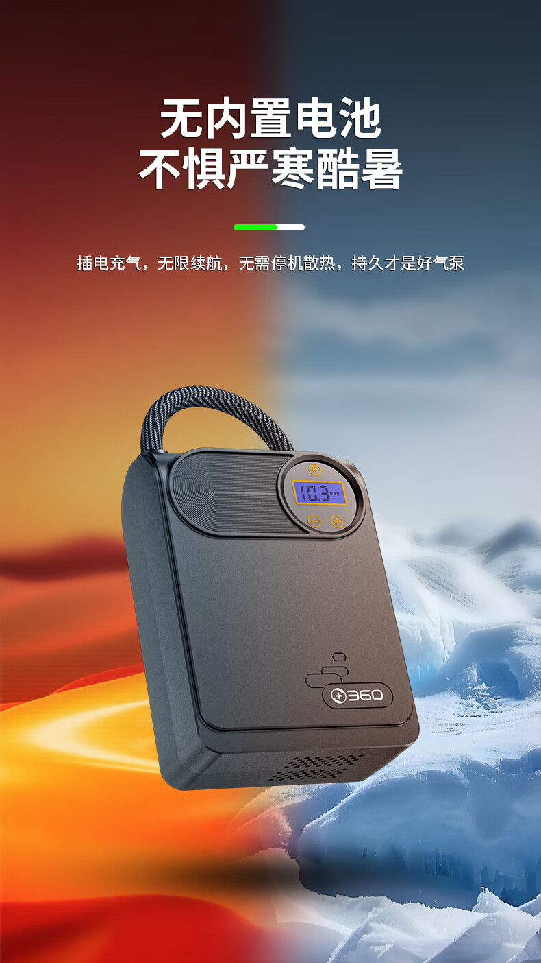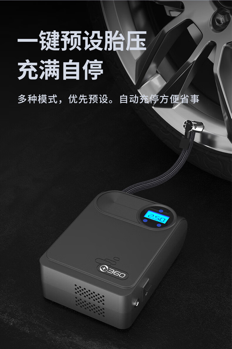 360车载汽车轮胎充气泵车载打气泵骑自行车摩托车电动充气宝 【有线顶配版】-超长续航-预设胎压
