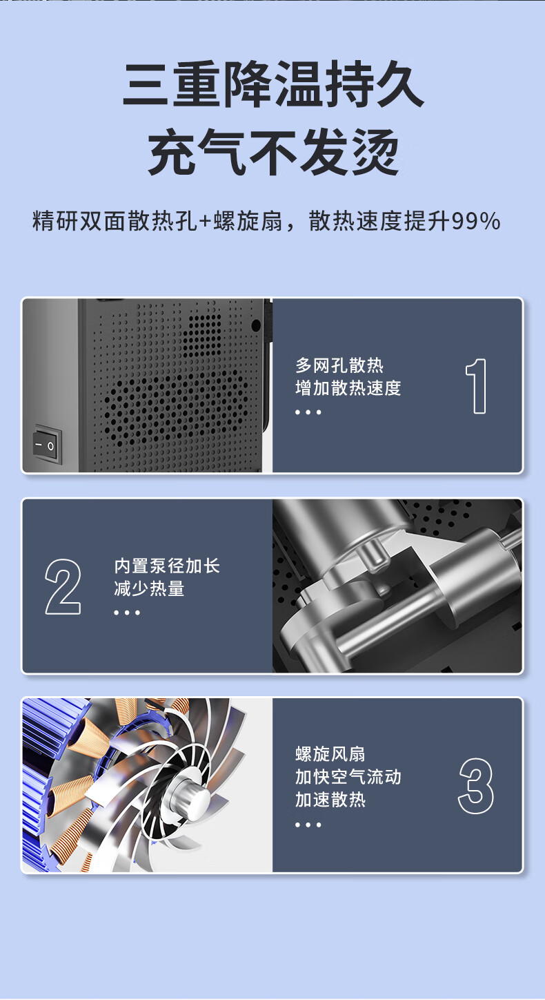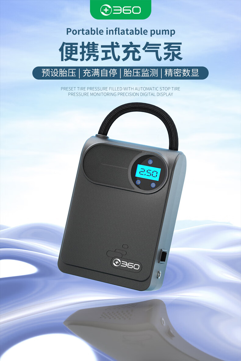 360车载胎压监测充气泵防过载静音设计行车安全必备工具 【小巧便携】升级版-充满自停+收纳袋