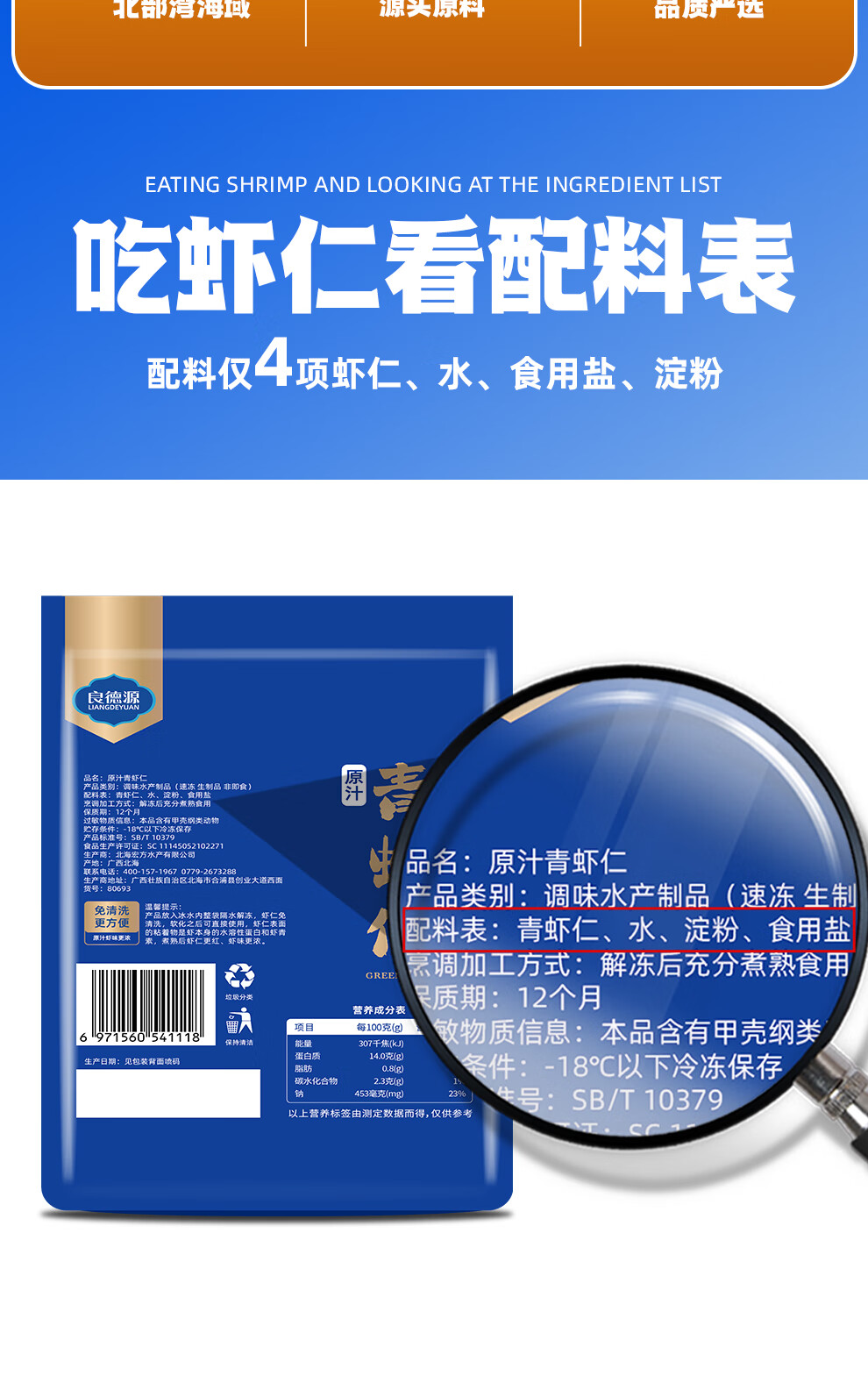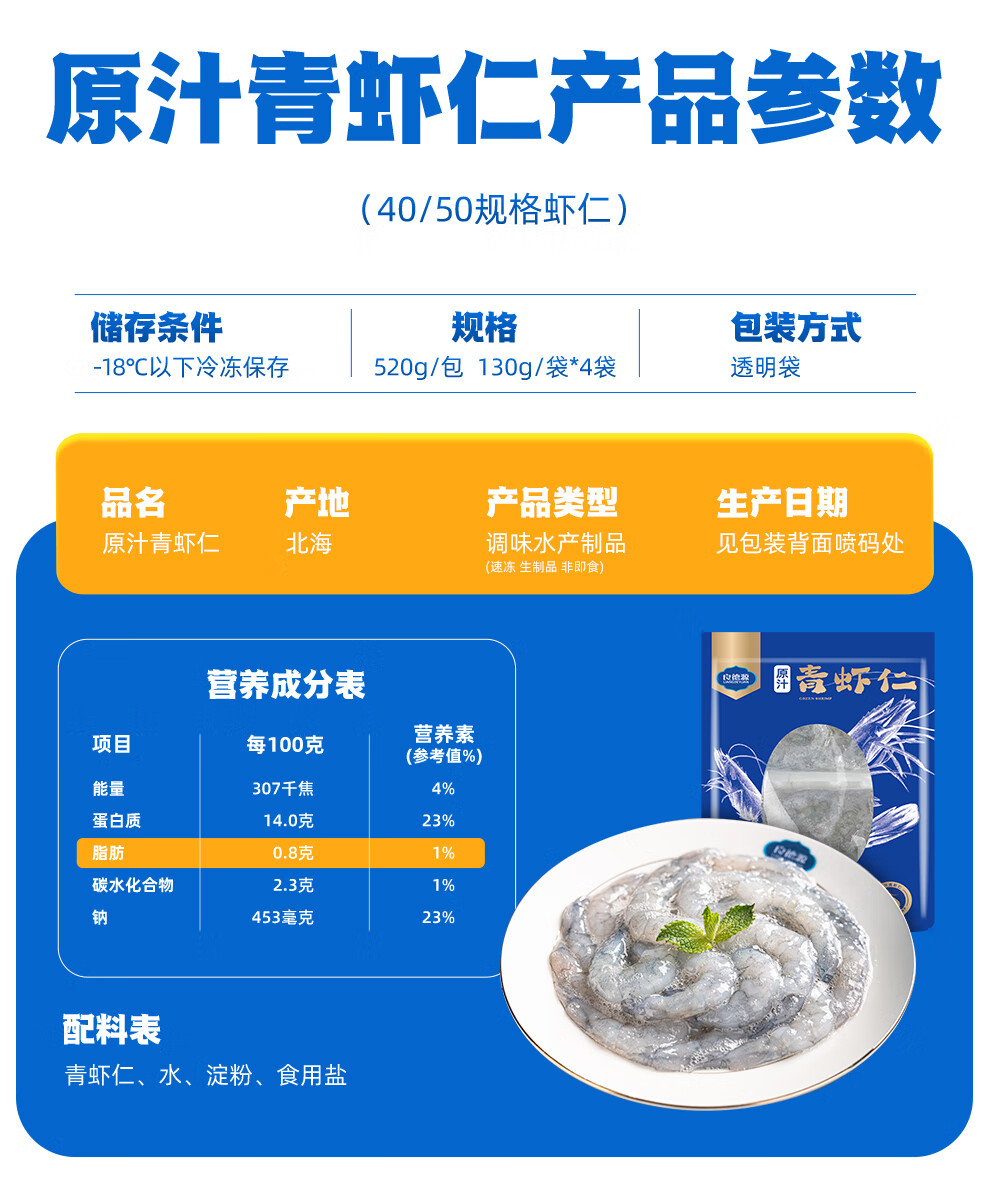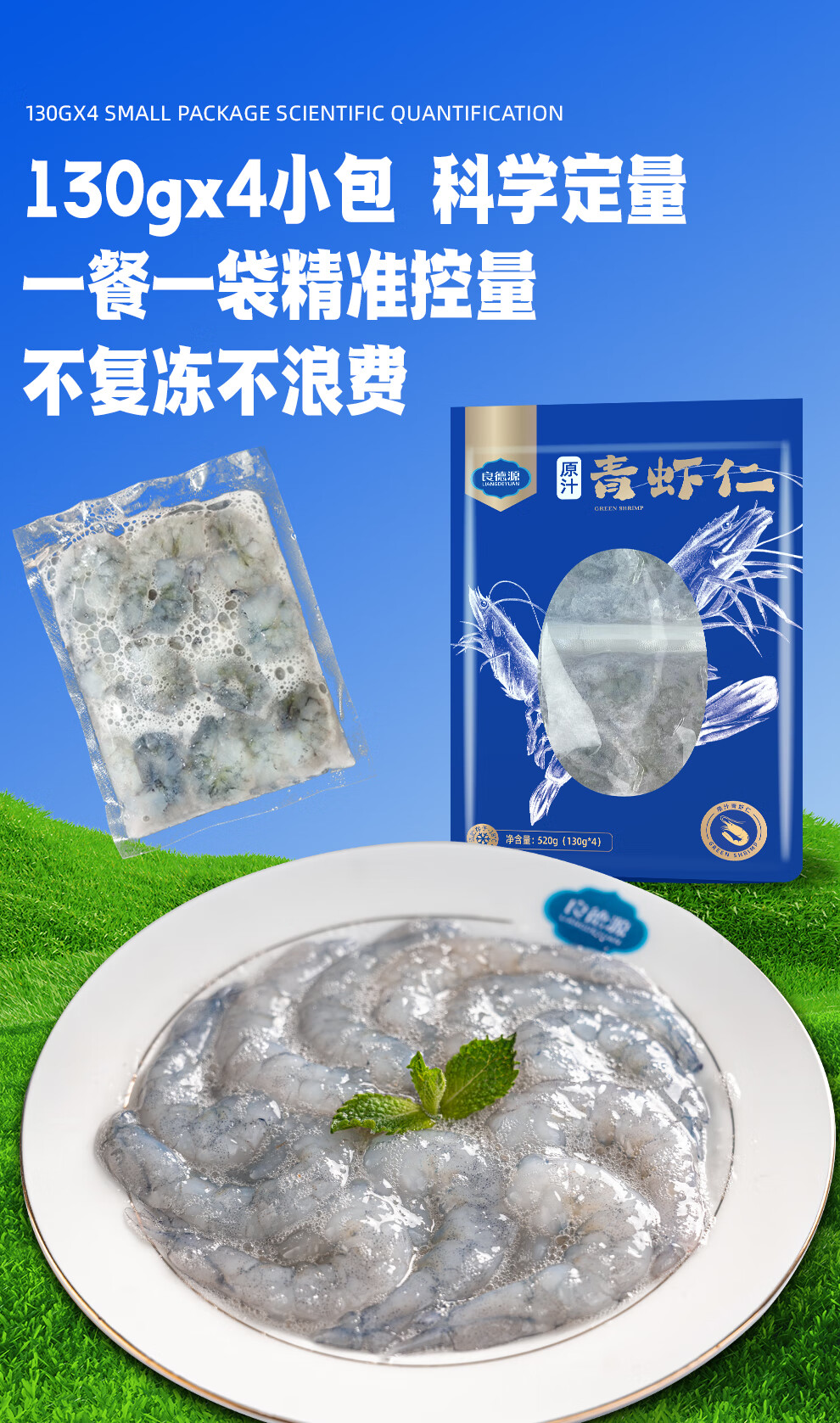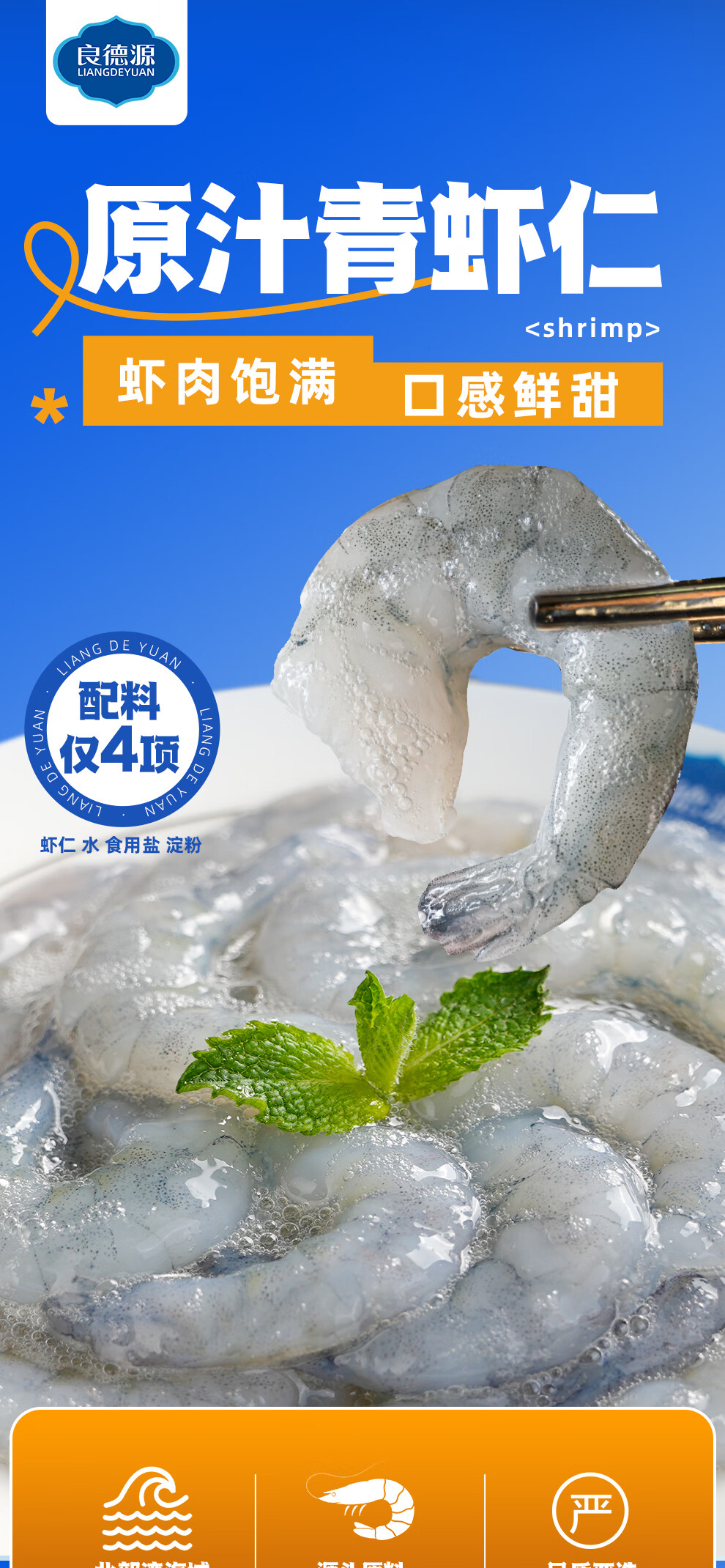 良德源活剥原汁青虾仁冷冻大号翡翠白虾仁夜宵低脂手工去虾线 原汁虾仁*2大包共 1040g(净重)