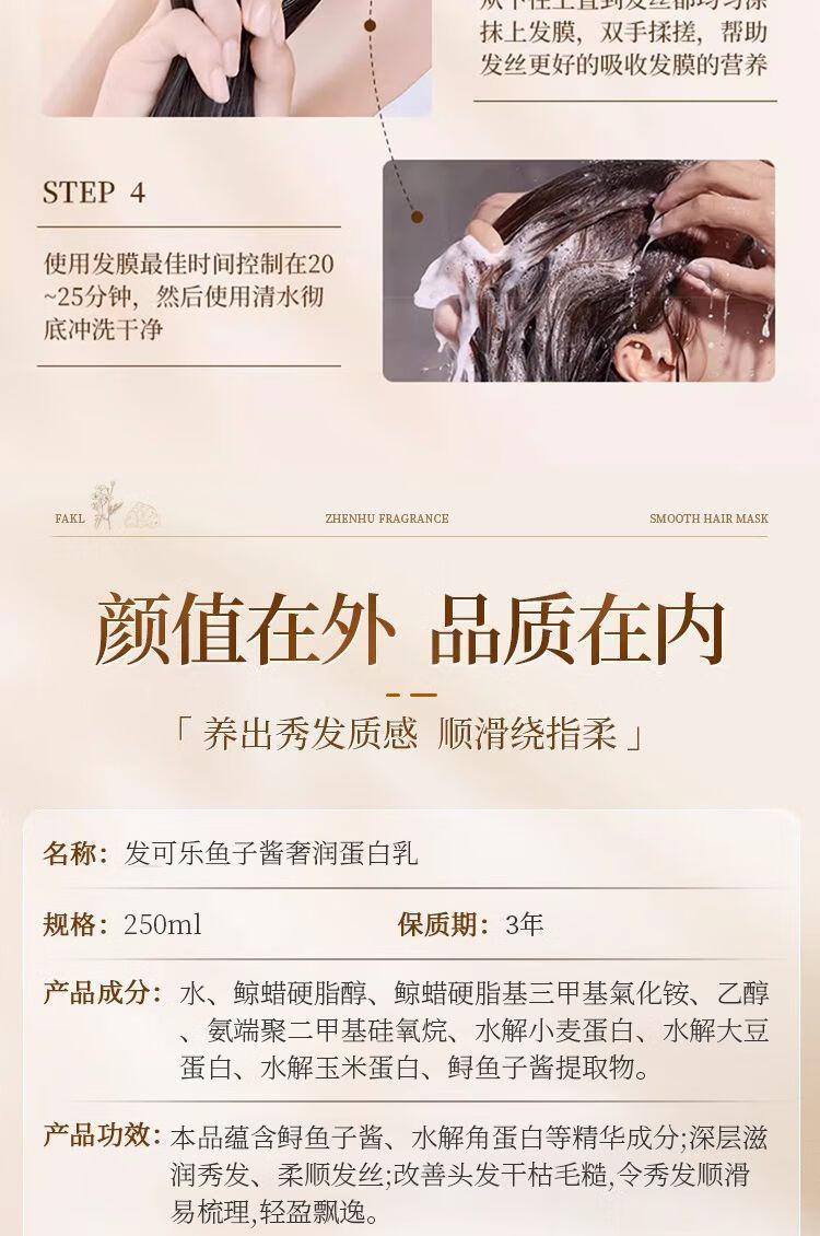 发可乐鱼子酱发膜免蒸修护干枯受损发补水柔顺发膜蛋白赋活霜角蛋白滋养 秀发柔顺-鱼子酱奢润蛋白乳*2袋