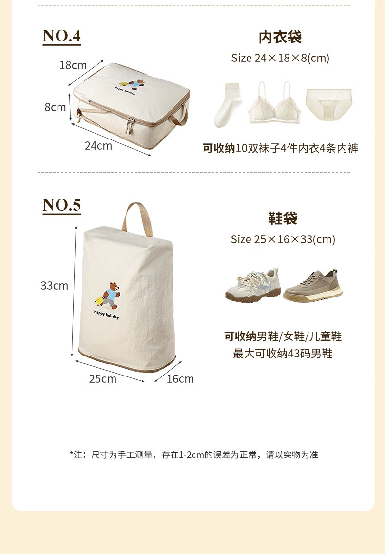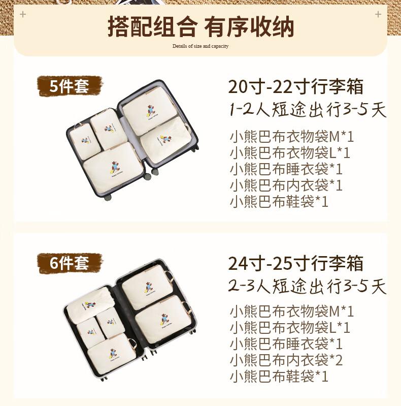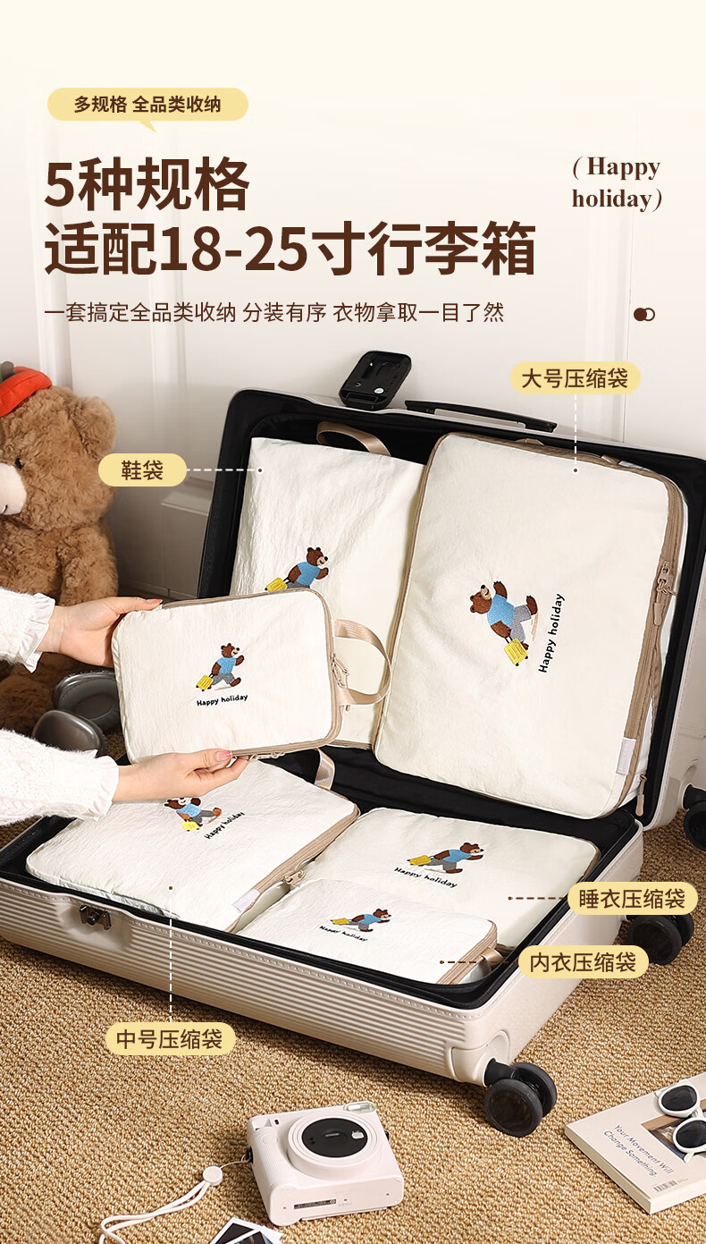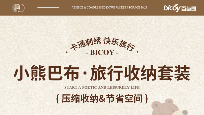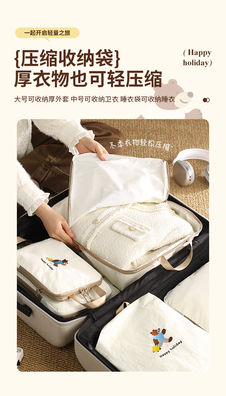 百草园旅行收纳袋旅行压缩衣物收纳袋出差收纳包行李箱收纳分装包套装
