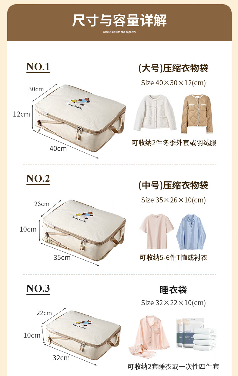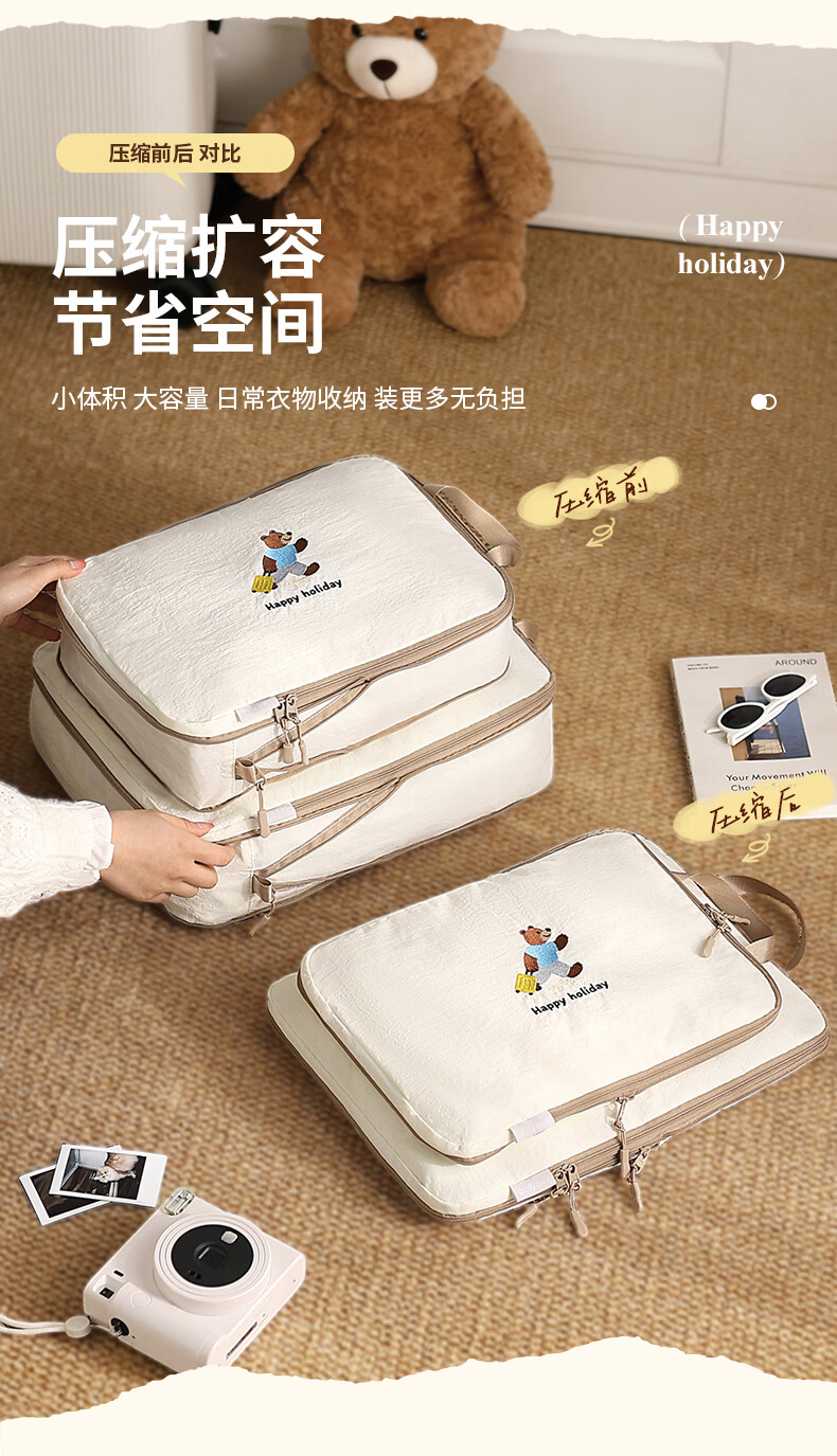 沐家旅行衣物收纳袋记忆布防水可压缩行李箱出差羽绒服内衣分装整理包