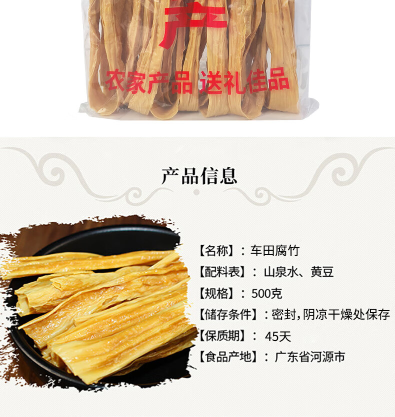 粤悯农 龙川车田腐竹干货 河源特产客家黄豆腐竹皮干炒菜凉拌火锅材料 车田腐竹500g