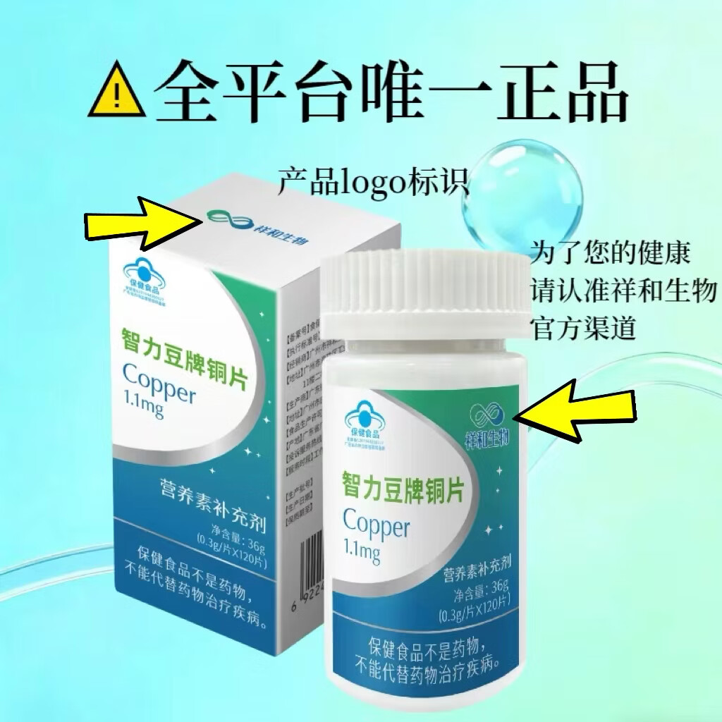 智力豆牌铜片葡萄糖酸铜科学补铜微量元素铜蓝帽子保健品营养补剂120片 120片*1瓶
