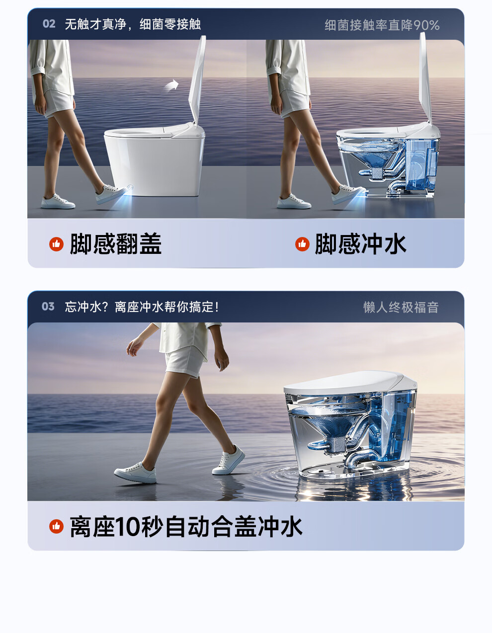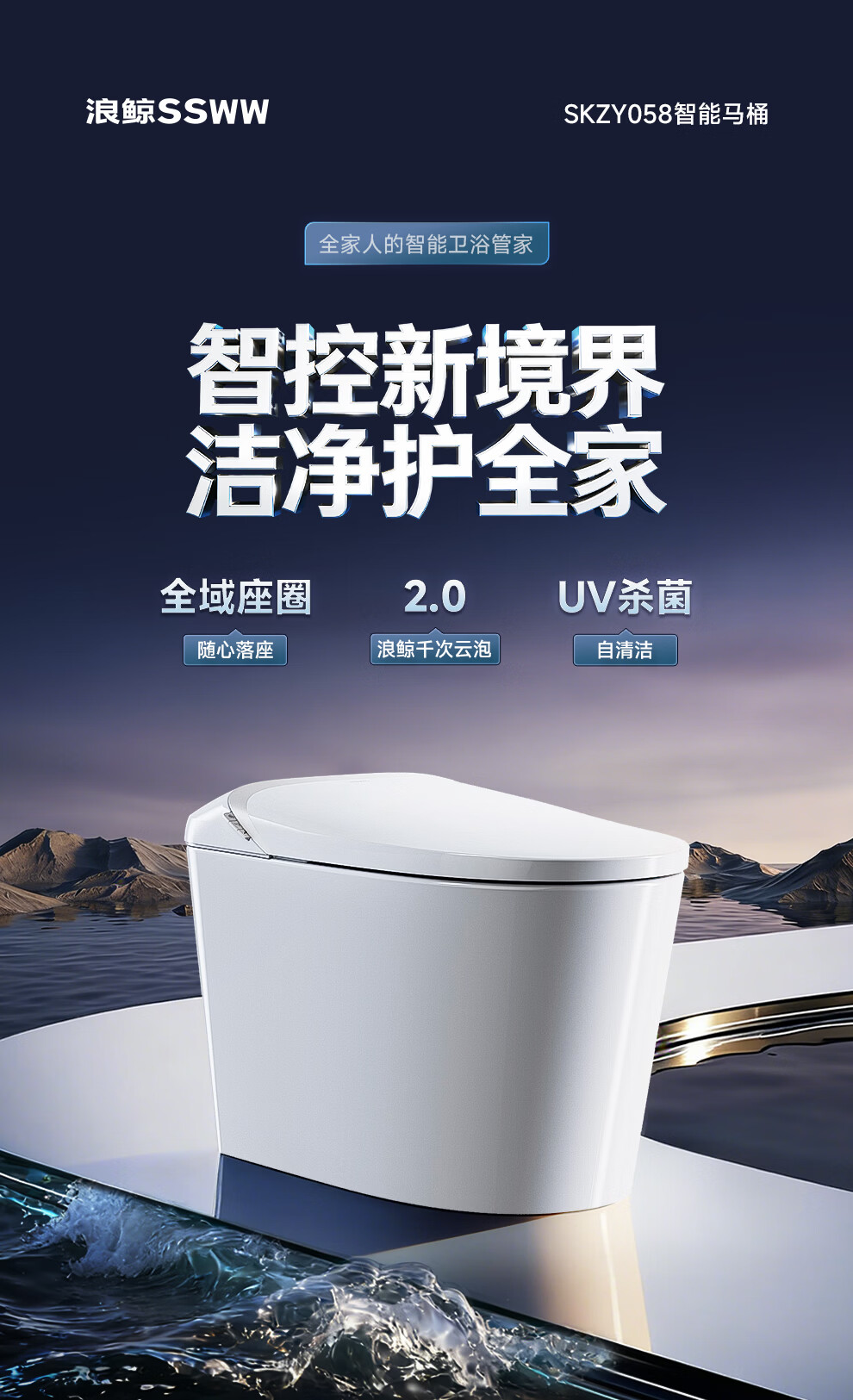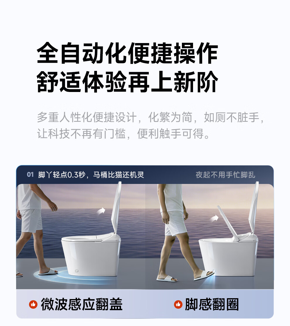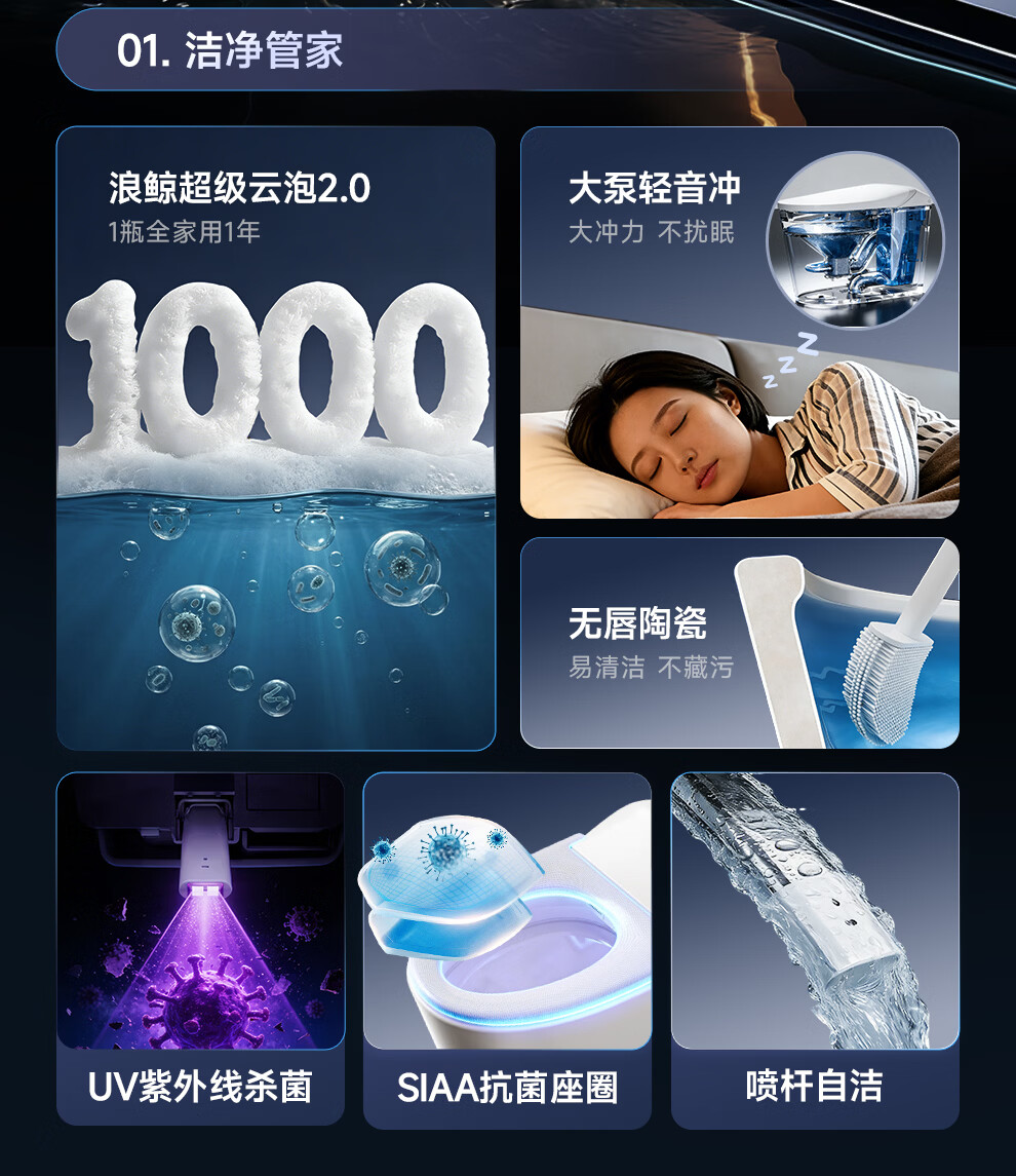 浪鲸(SSWW)卫浴全自动脚感智能马桶无棱内壁清洗烘干一体泡沫盾坐便器058 【058B全智能】升级感应翻盖+千次泡沫盾+UV杀菌 305/300mm