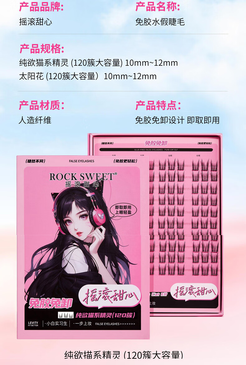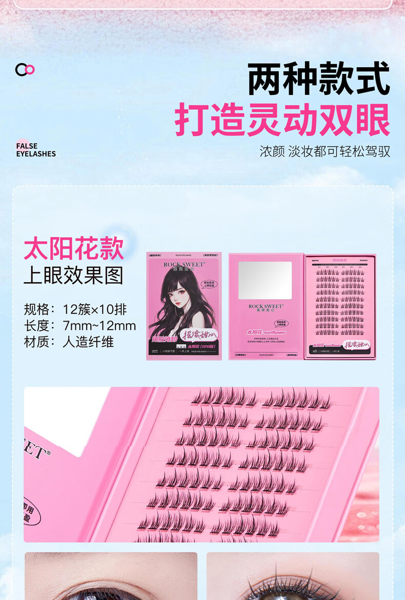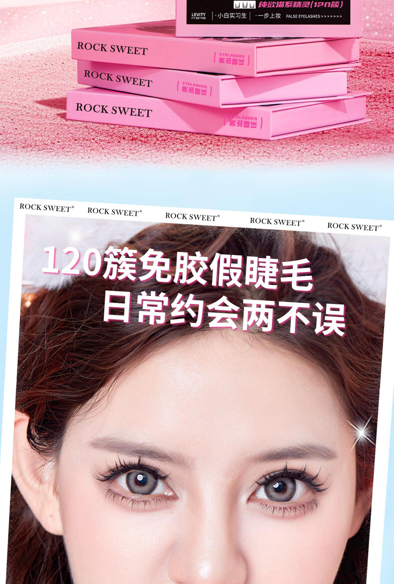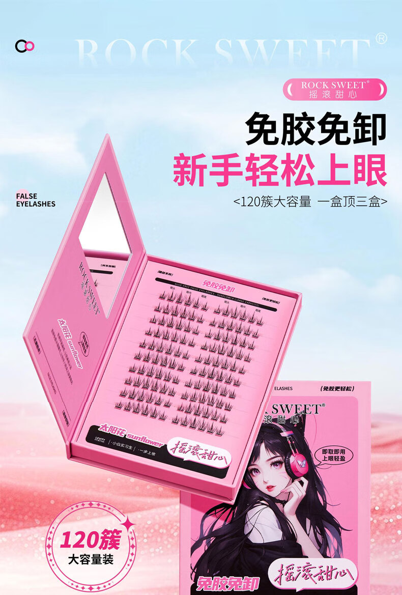 摇滚甜心 ROCK SWEET免胶水睫毛【情人节礼物】假睫毛立体自然卷C翘懒人新手送诺子 太阳花睫毛书【细梗】120簇