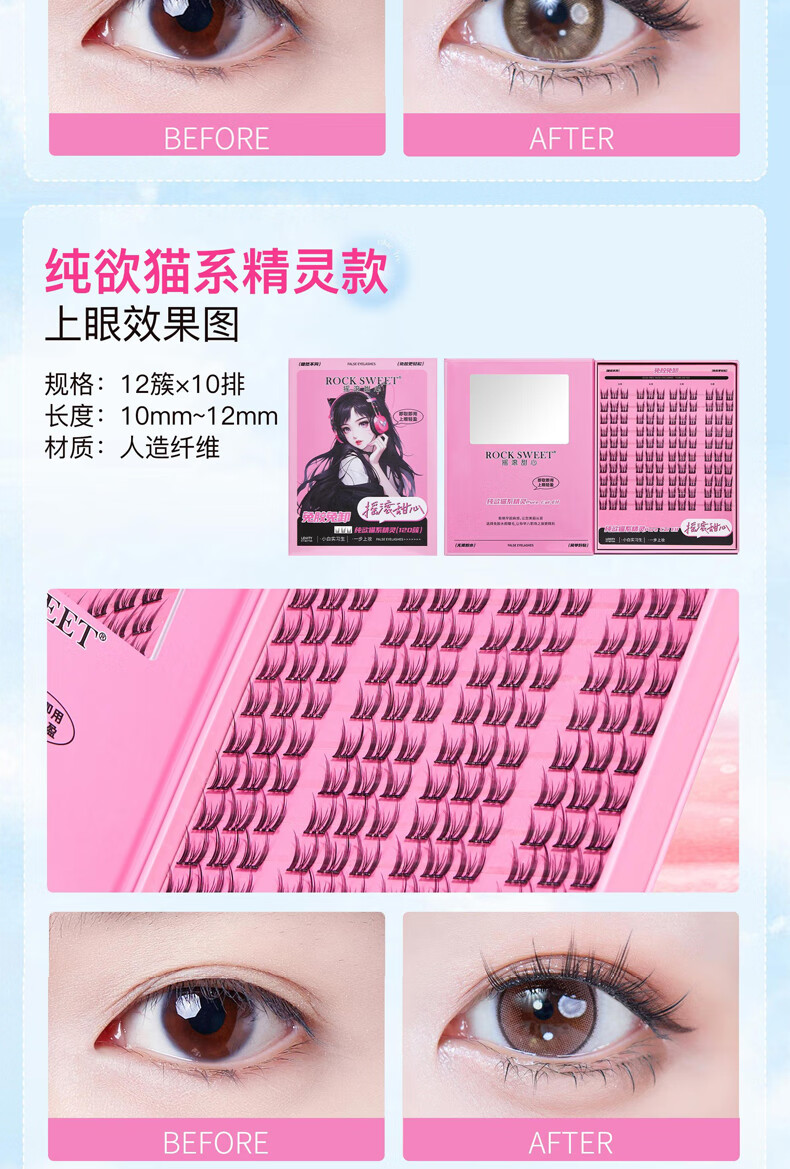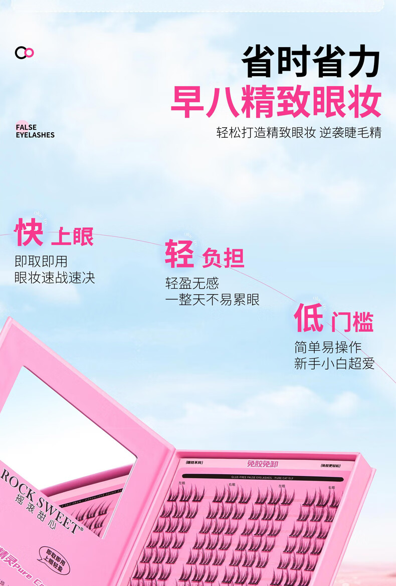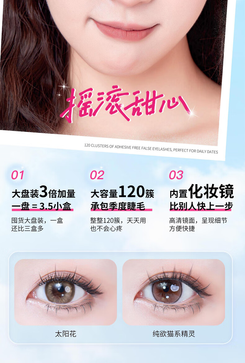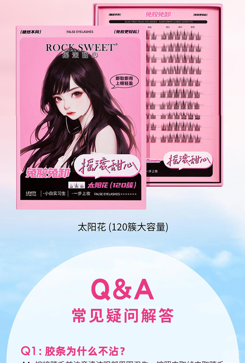 摇滚甜心 ROCK SWEET免胶水睫毛【情人节礼物】假睫毛立体自然卷C翘懒人新手送诺子 太阳花睫毛书【细梗】120簇