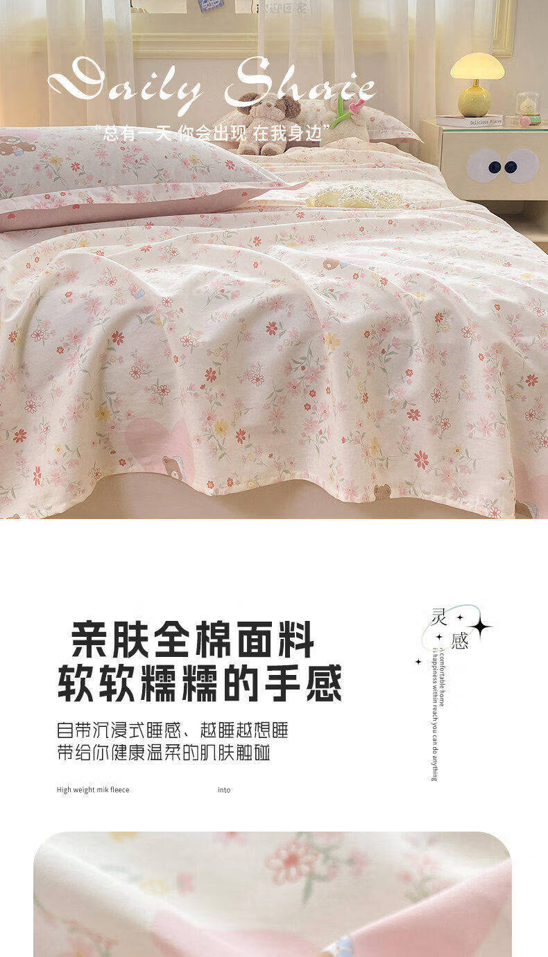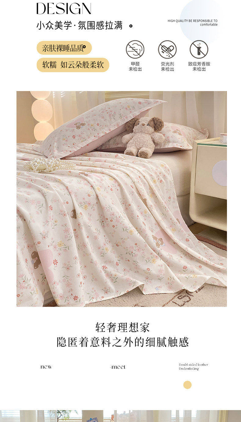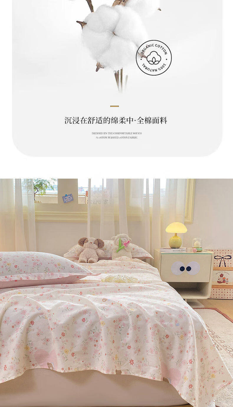 猫人(MiiOW)纯棉床单200x230cm全棉床罩被单件床上用品三件套宿舍四季通用 仙草【全棉面料亲肤裸睡】 【适合1.5m床】床单:200*230cm